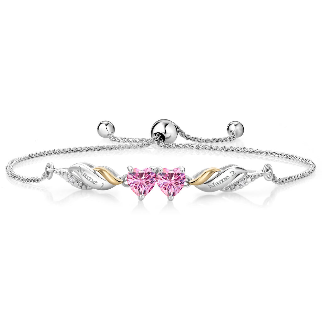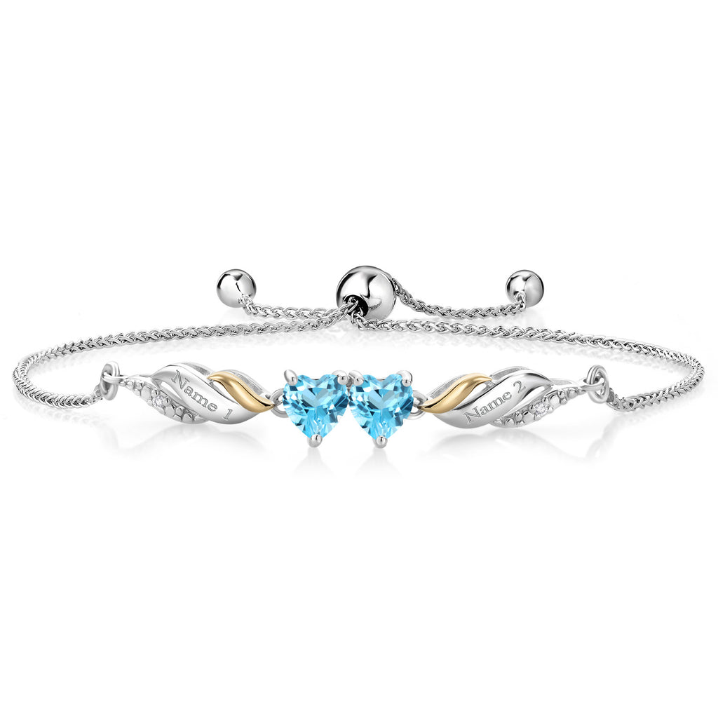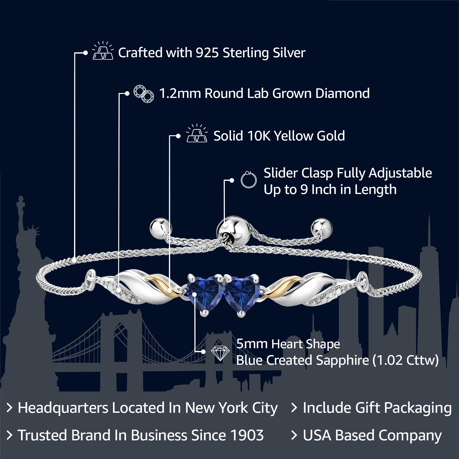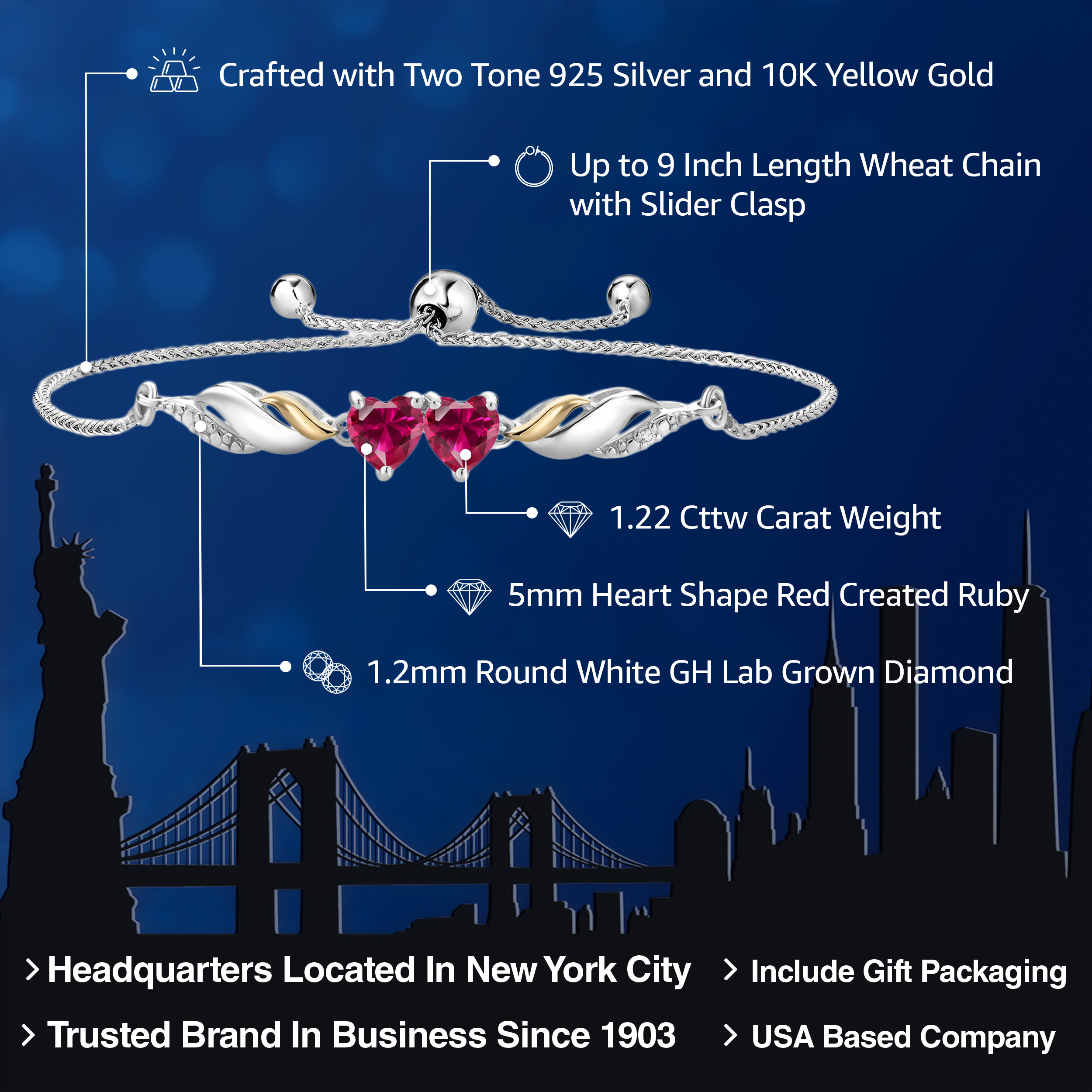 Two-Tone Twist with Double Heart Bracelet for Women | Gemstone Birthstone and Lab Grown Diamond | 925 Silver and 10K Yellow Gold | Heart Shape 5MM | Adjustable Bolo Bracelet For Women | Easy-On Easy-Off