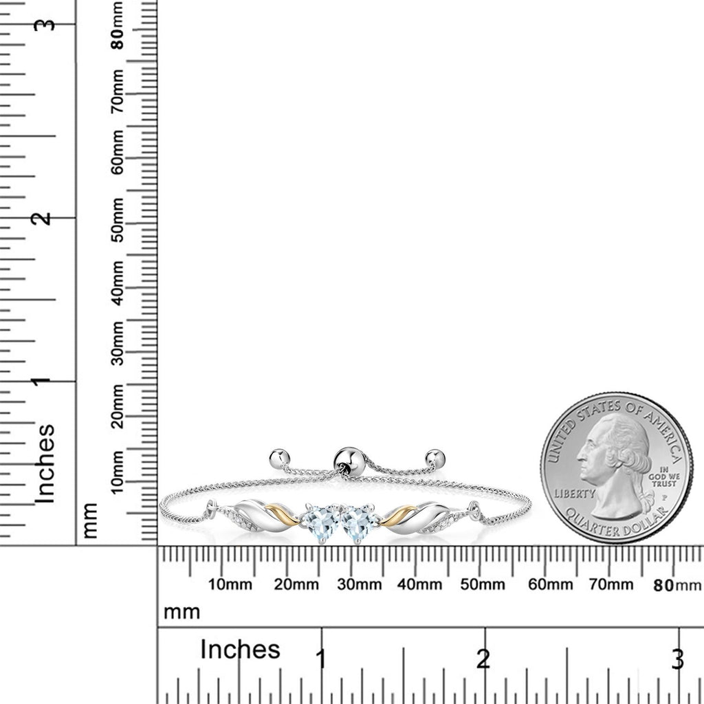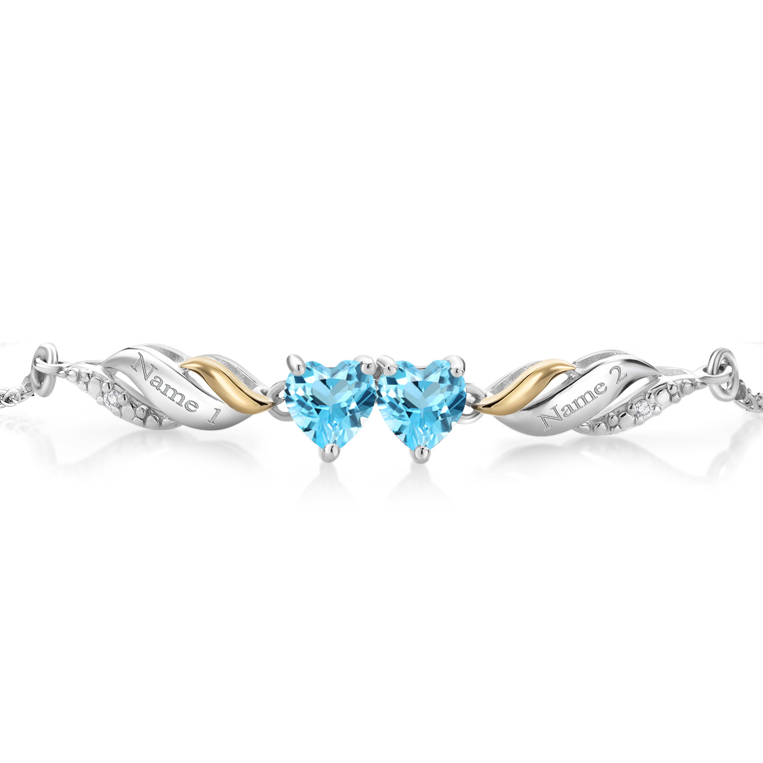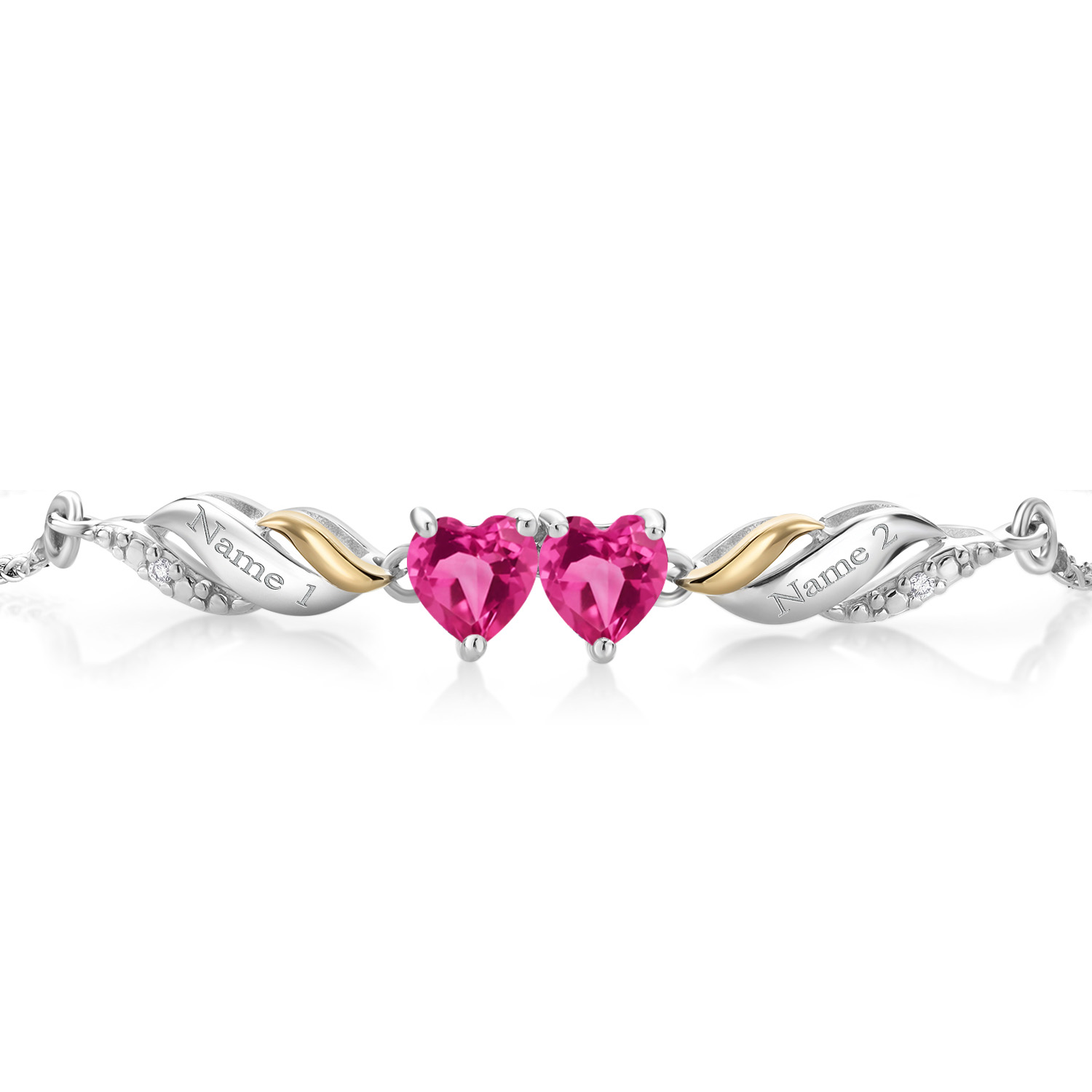 Two-Tone Twist with Double Heart Bracelet for Women | Gemstone Birthstone and Lab Grown Diamond | 925 Silver and 10K Yellow Gold | Heart Shape 5MM | Adjustable Bolo Bracelet For Women | Easy-On Easy-Off
