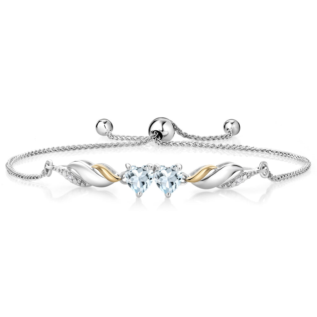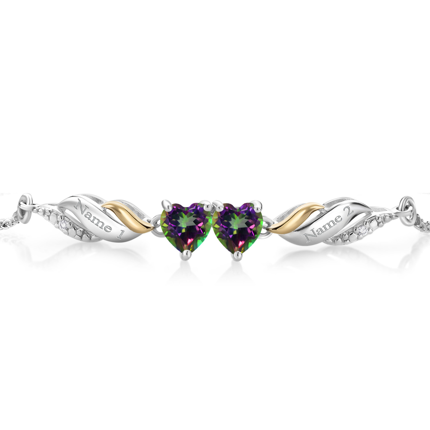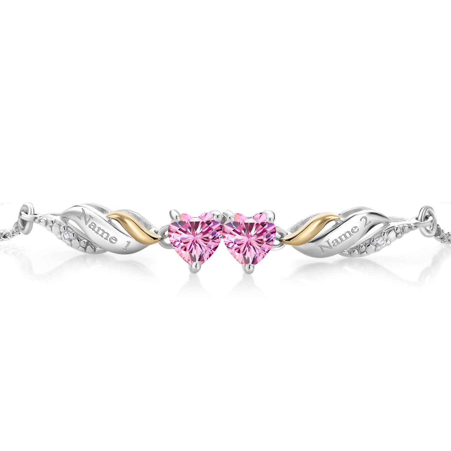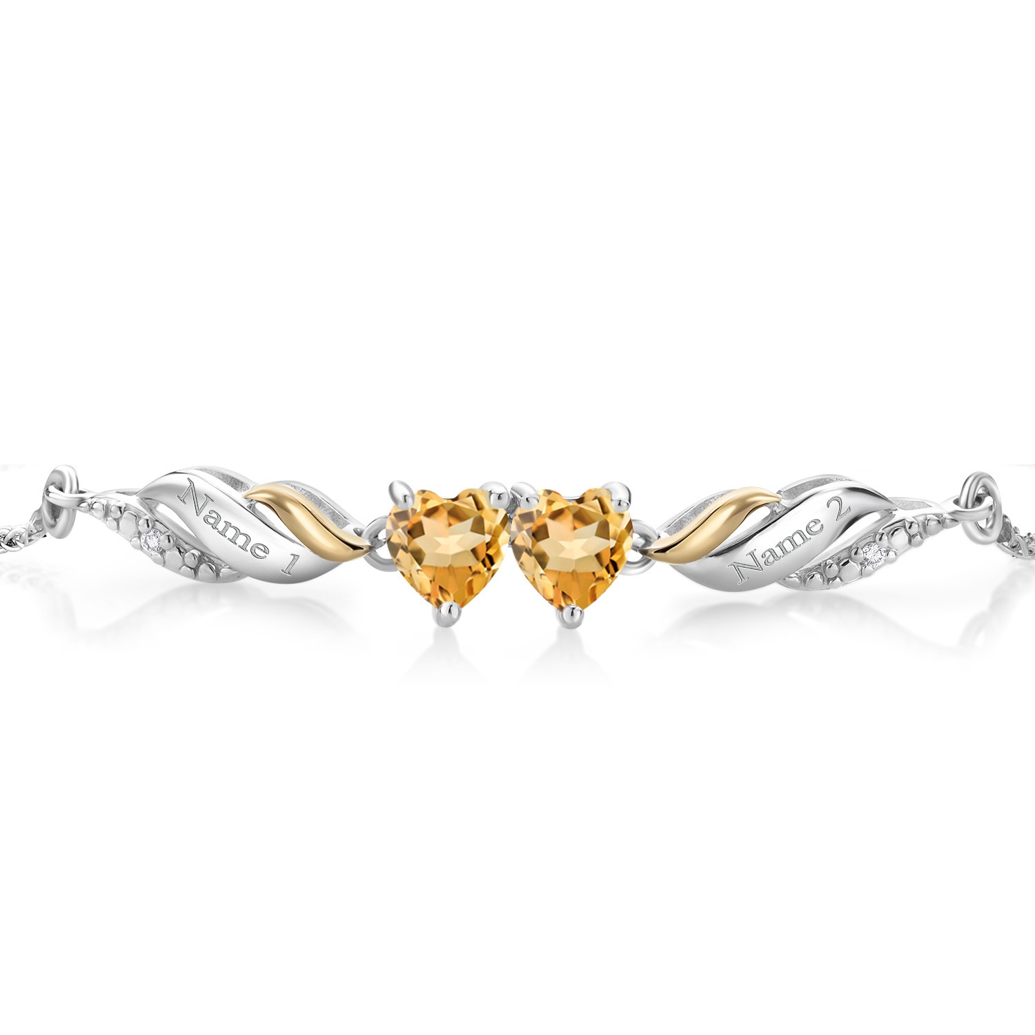 Two-Tone Twist with Double Heart Bracelet for Women | Gemstone Birthstone and Lab Grown Diamond | 925 Silver and 10K Yellow Gold | Heart Shape 5MM | Adjustable Bolo Bracelet For Women | Easy-On Easy-Off