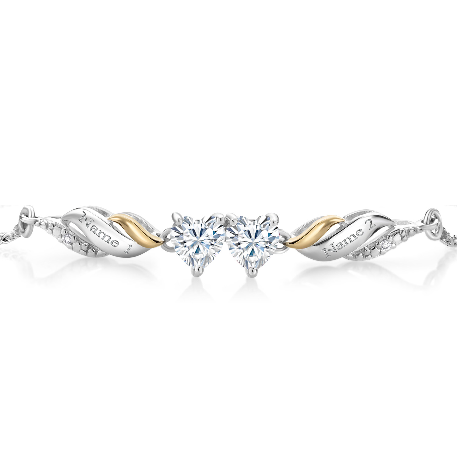 LAB GROWN DIAMOND ACCENTS: Sparkling with undeniable charm, the bracelet features round 1.2MM lab grown diamond accents that heighten its sophisticated appeal. These ethically cultivated diamonds mirror the brilliance and clarity of natural stones, meticulously set to accentuate the central heart-shaped gemstone. The double heart design pays homage to love and connection, making it a radiant symbol of affection and care.