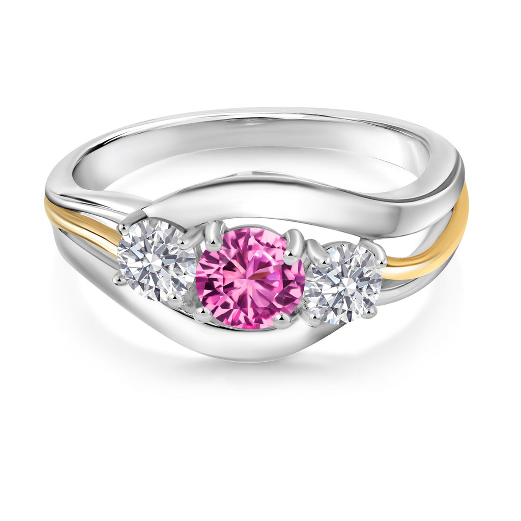 MEASUREMENTS: 5x5mm Round Heat-Treated Pink Created Sapphire, 4x4mm Round E - F Lab Grown Diamond. Total Carat Weight is 1.09 cttw