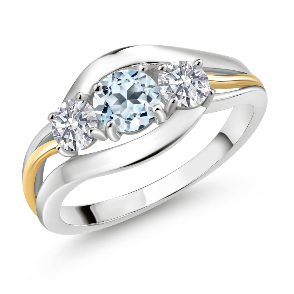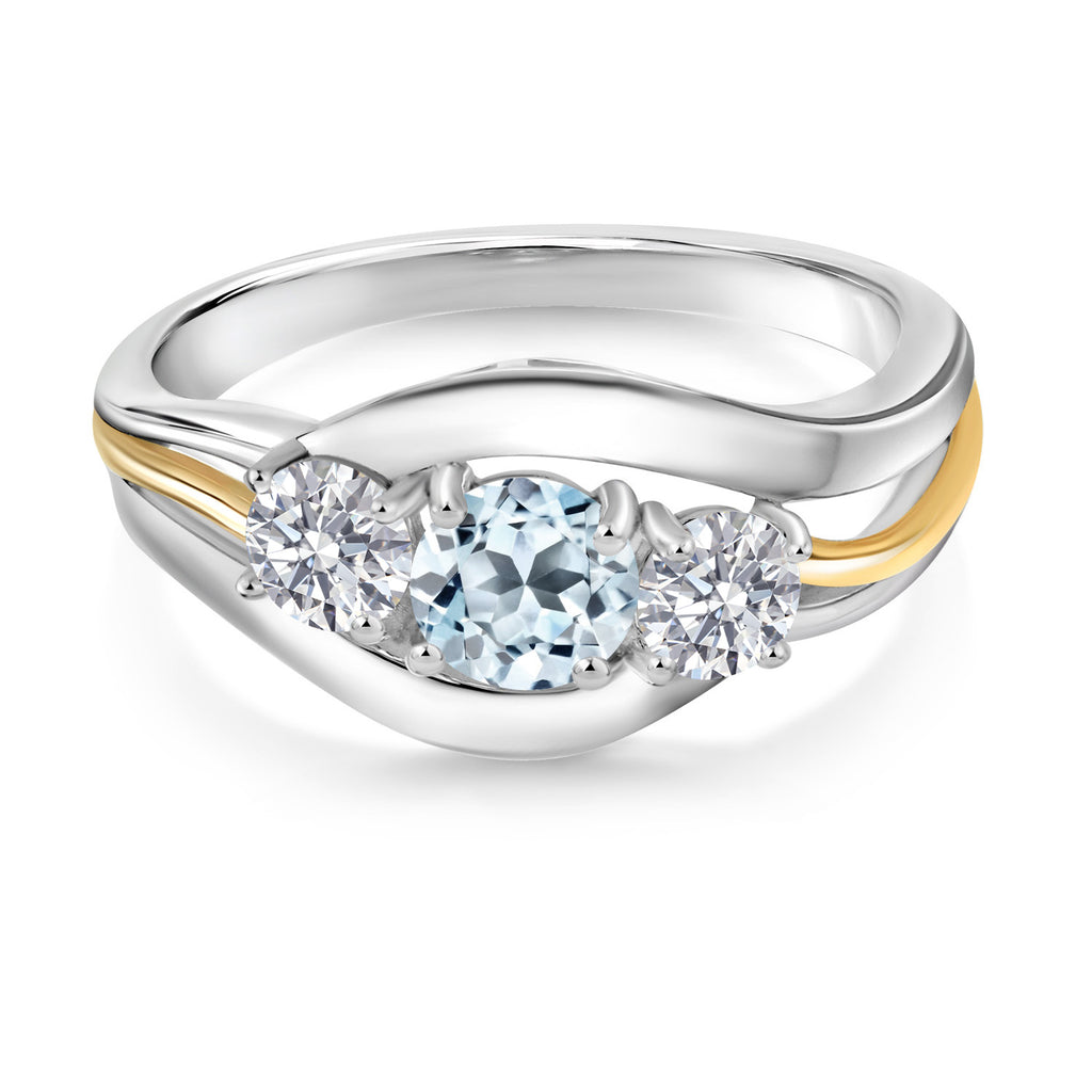 MEASUREMENTS: 5x5mm Round Irradiated Sky Blue Topaz, 4x4mm Round E - F Lab Grown Diamond. Total Carat Weight is 1.24 cttw