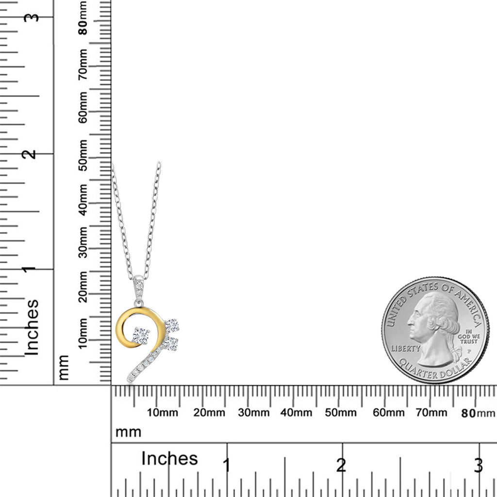 925 Sterling Silver and 10K Yellow Gold White Lab Grown Diamond Bass Clef Music Note Pendant Necklace For Women By Keren Hanan (0.31 Cttw, with 18 Inch Chain)