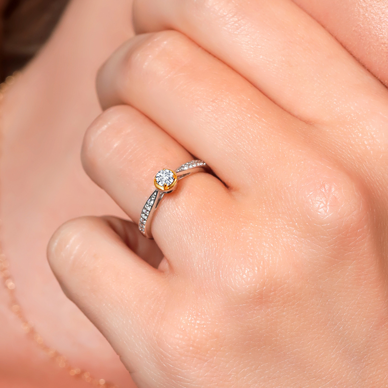 PREMIUM MATERIALS: Crafted with 925 sterling silver and 10K yellow gold, this ring offers both durability and a luxurious aesthetic. The combination of these high-quality materials enhances the overall beauty of the ring, making it a symbol of enduring love and commitment.