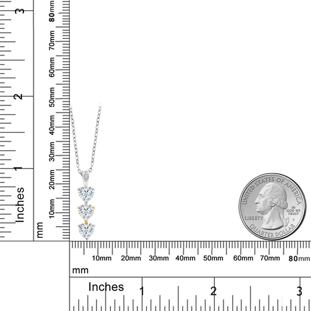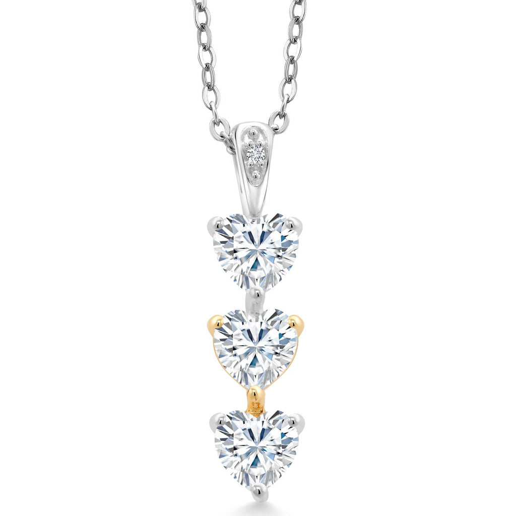 925 Sterling Silver and 10K Yellow Gold White Moissanite and Lab Grown Diamond 3 Stone Heart Shape Pendant Necklace By Keren Hanan (1.27 Cttw, with 18 Inch Chain)
