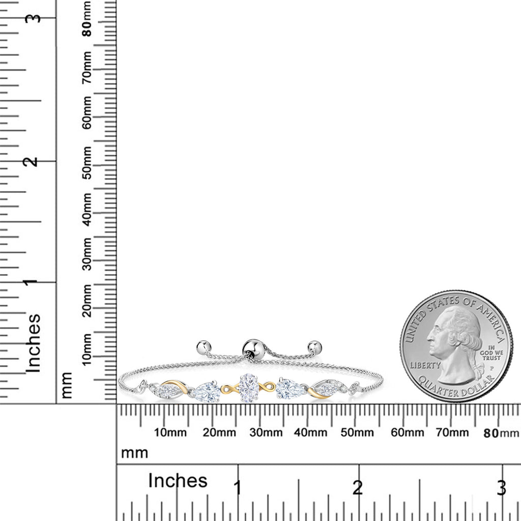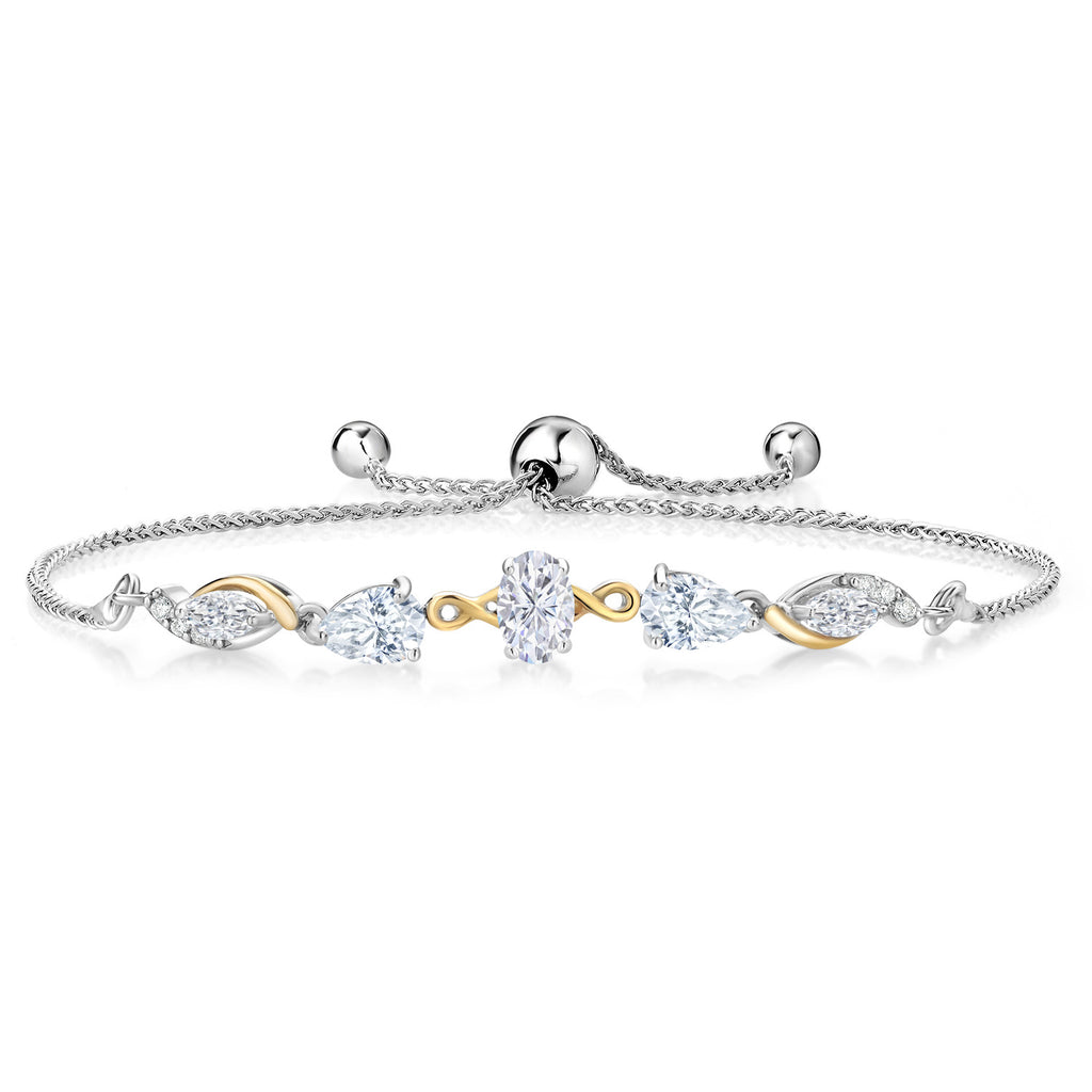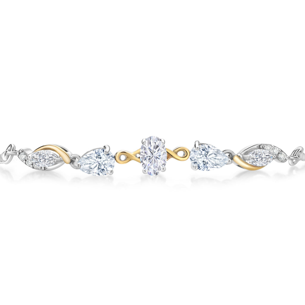 925 Sterling Silver and 10K Yellow Gold White Moissanite and White Lab Diamond Tennis Bracelet By Keren Hanan For Women (1.54 Cttw, Fully Adjustable Up to 9 Inch)