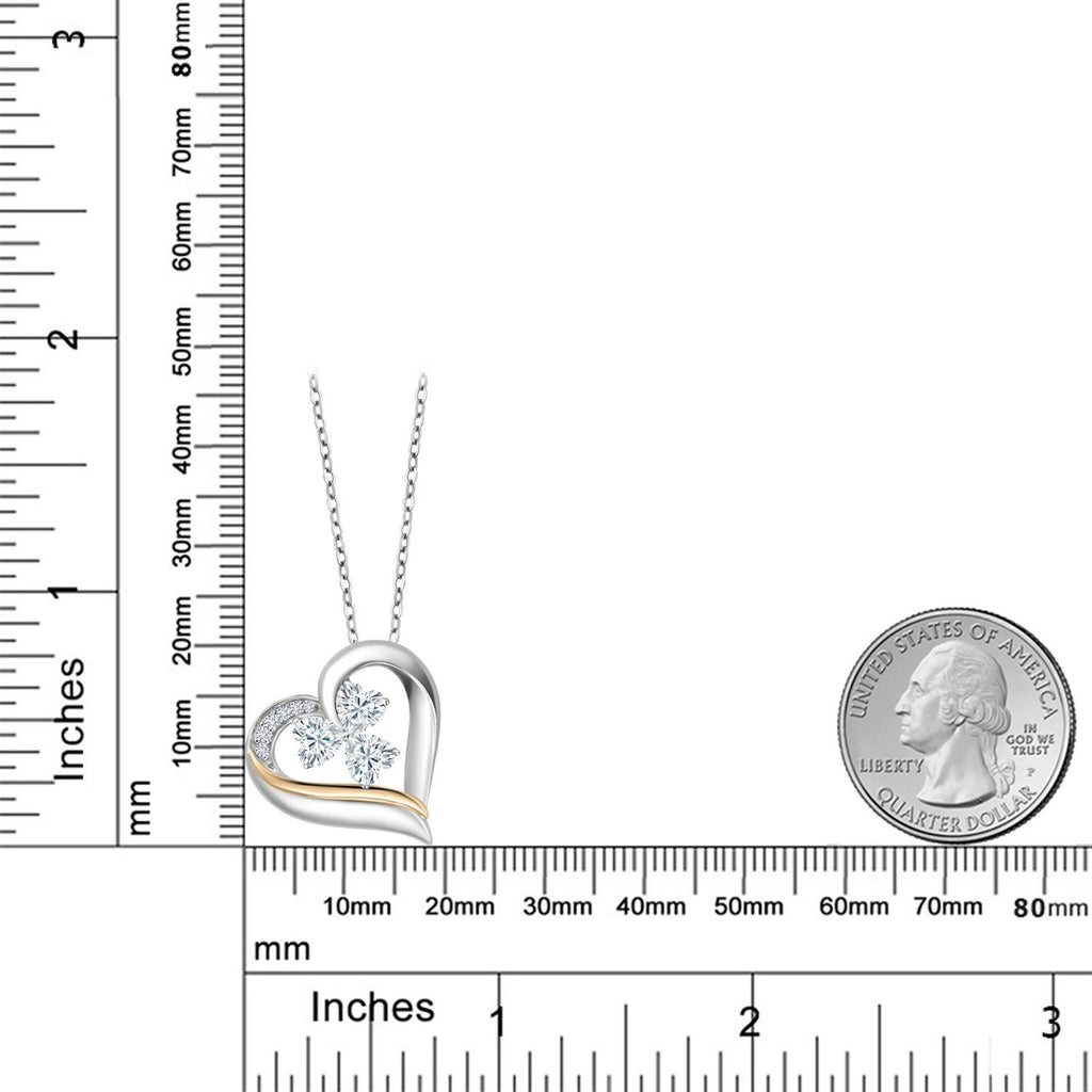 925 Sterling Silver and 10k Yellow Gold White Moissanite and White Lab Grown Diamond 3-Stone Pendant Necklace For Women (1.30 Cttw, Heart Shape 5MM, 18 Inch Chain)