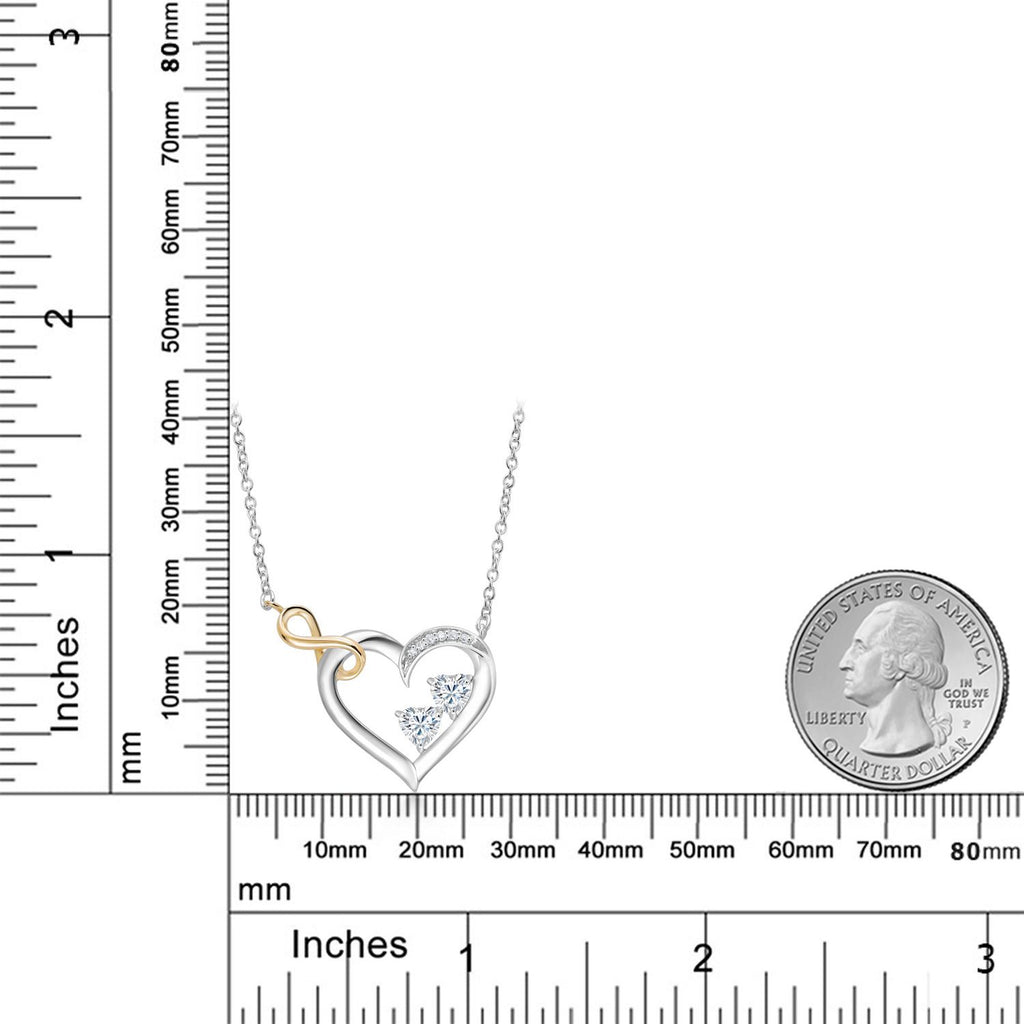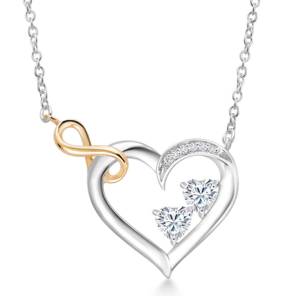 925 Sterling Silver and 10K Yellow Gold White Moissanite and White Lab Grown Diamond Infinity Heart Pendant Necklace For Women (0.49 Cttw, Heart Shape 4MM, with 18 Inch Chain)
