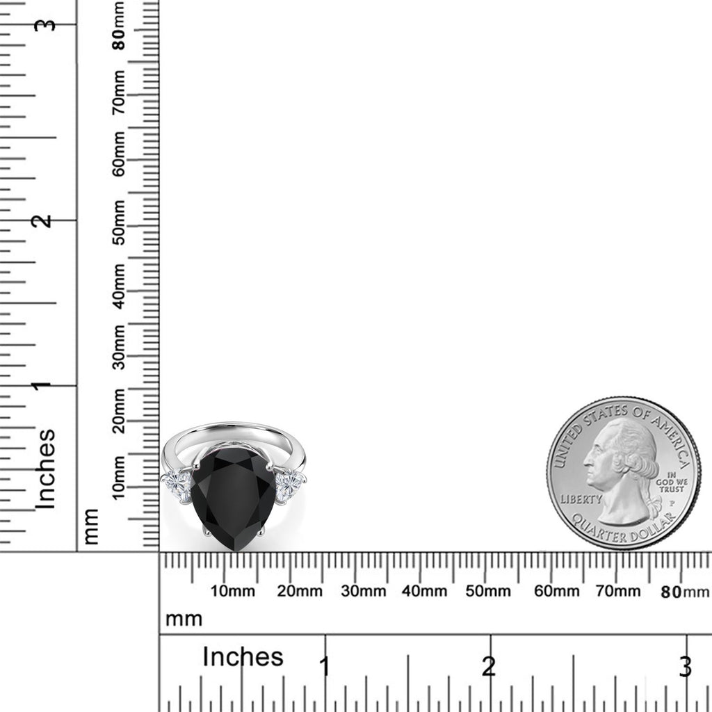 STRIKING STATEMENT DESIGN: This 925 sterling silver engagement ring features a breathtaking 8.11 Cttw combination of a bold 16X12MM pear-shaped Black Onyx centerpiece and two sparkling 5MM trillion-cut Lab Grown Diamonds, creating a dramatic and elegant look.