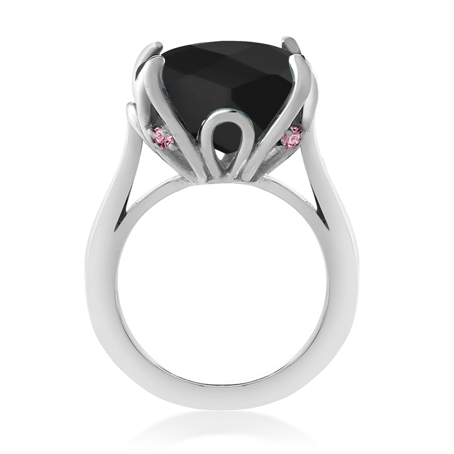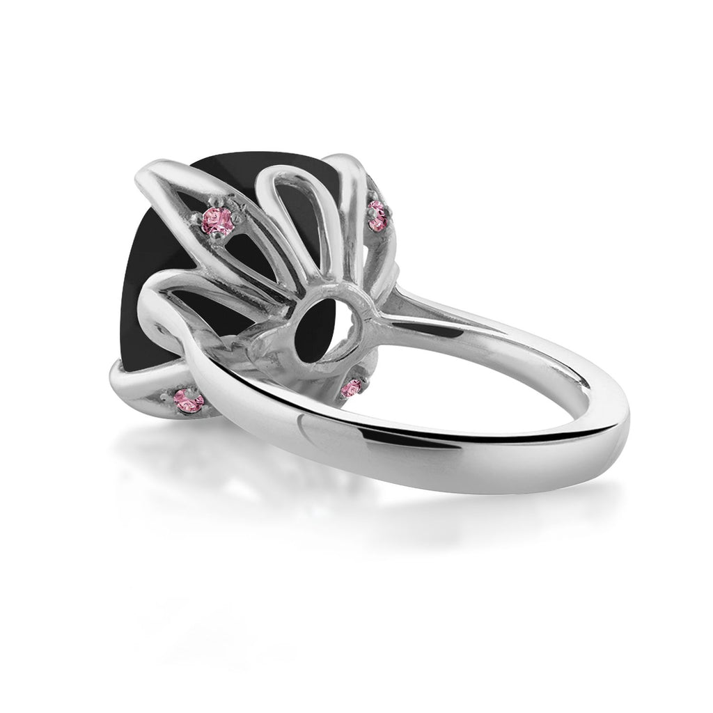925 Sterling Silver Black Onyx and Pink Lab Grown Diamond Engagement Ring For Women (8.25 Cttw, 14MM Cushion Checkerboard, Available in Size 5,6,7,8,9)