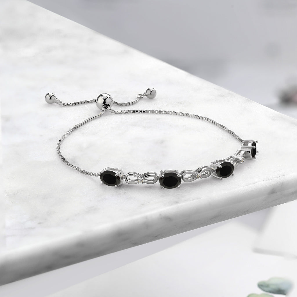 925 Sterling Silver Black Onyx and White Lab Grown Diamond Tennis Bracelet For Women (2.82 Cttw, Oval 7X5MM, Gemstone Birthstone, Fully Adjustable Up to 9 Inch)