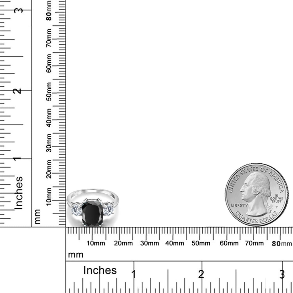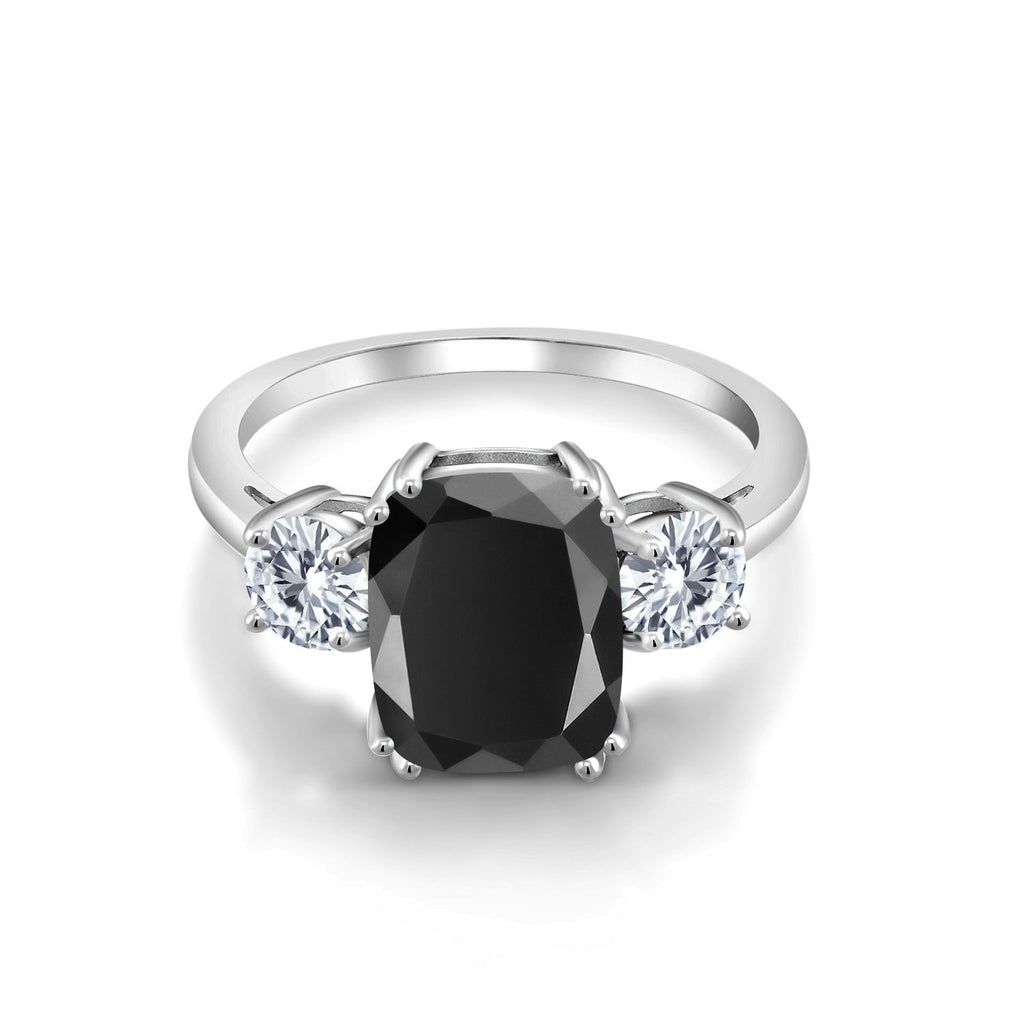 3.39 Cttw Black Onyx and White Moissanite 3-Stone Ring For Women | 925 Sterling Silver | Cushion Cut 10X8MM and Round 4.5MM | Wedding Engagement Anniversary Promise Ring