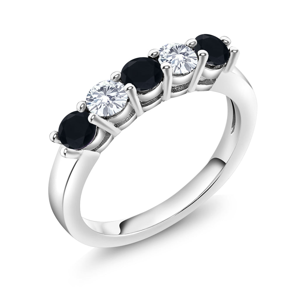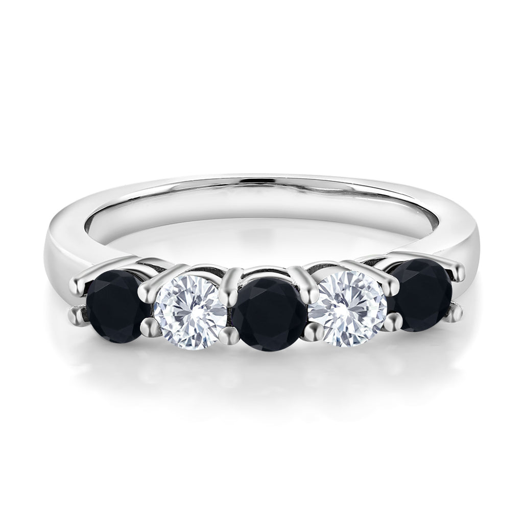 ELEGANT 5-STONE DESIGN: Elevate your style with the elegant 5-stone design of this anniversary band ring. The combination of black onyx and white moissanite stones creates a sophisticated and timeless look that symbolizes the enduring nature of your love.