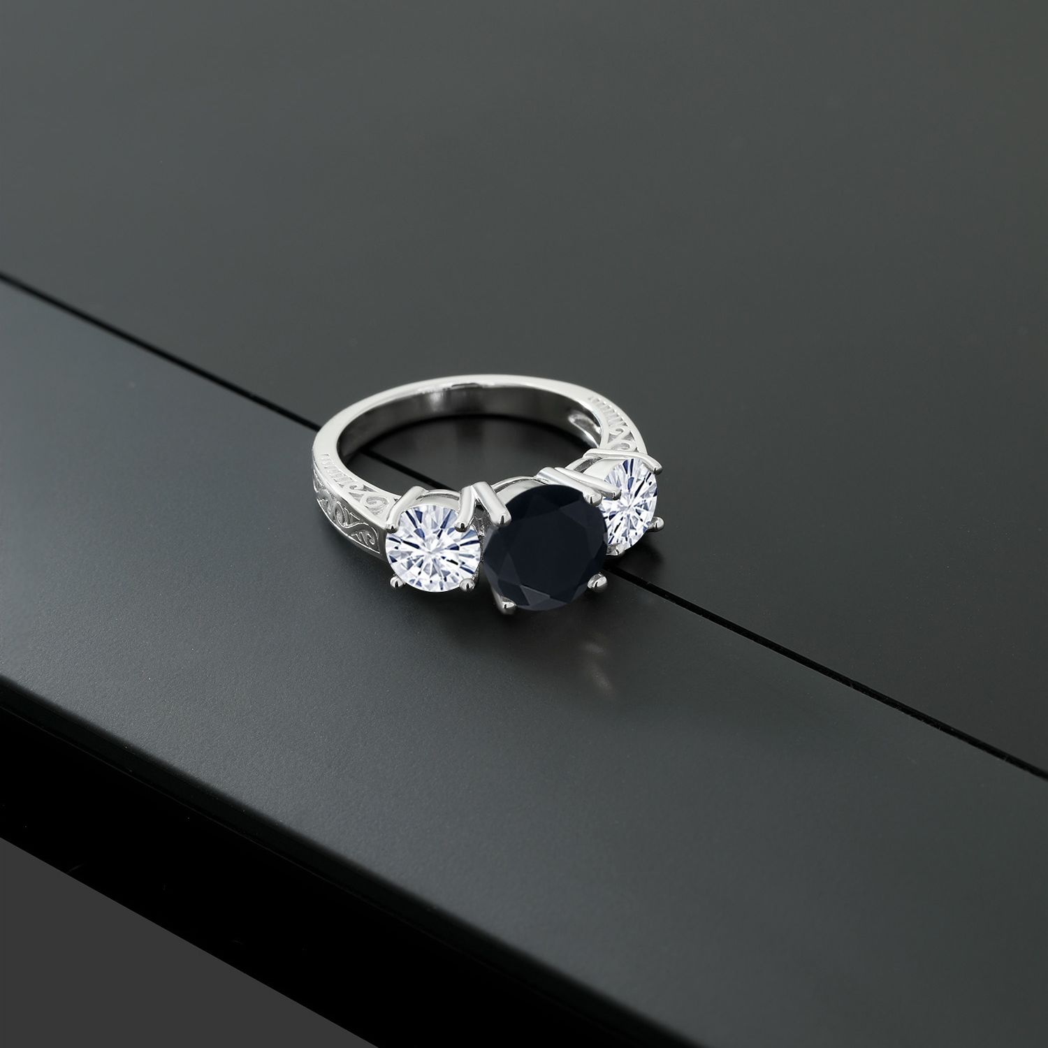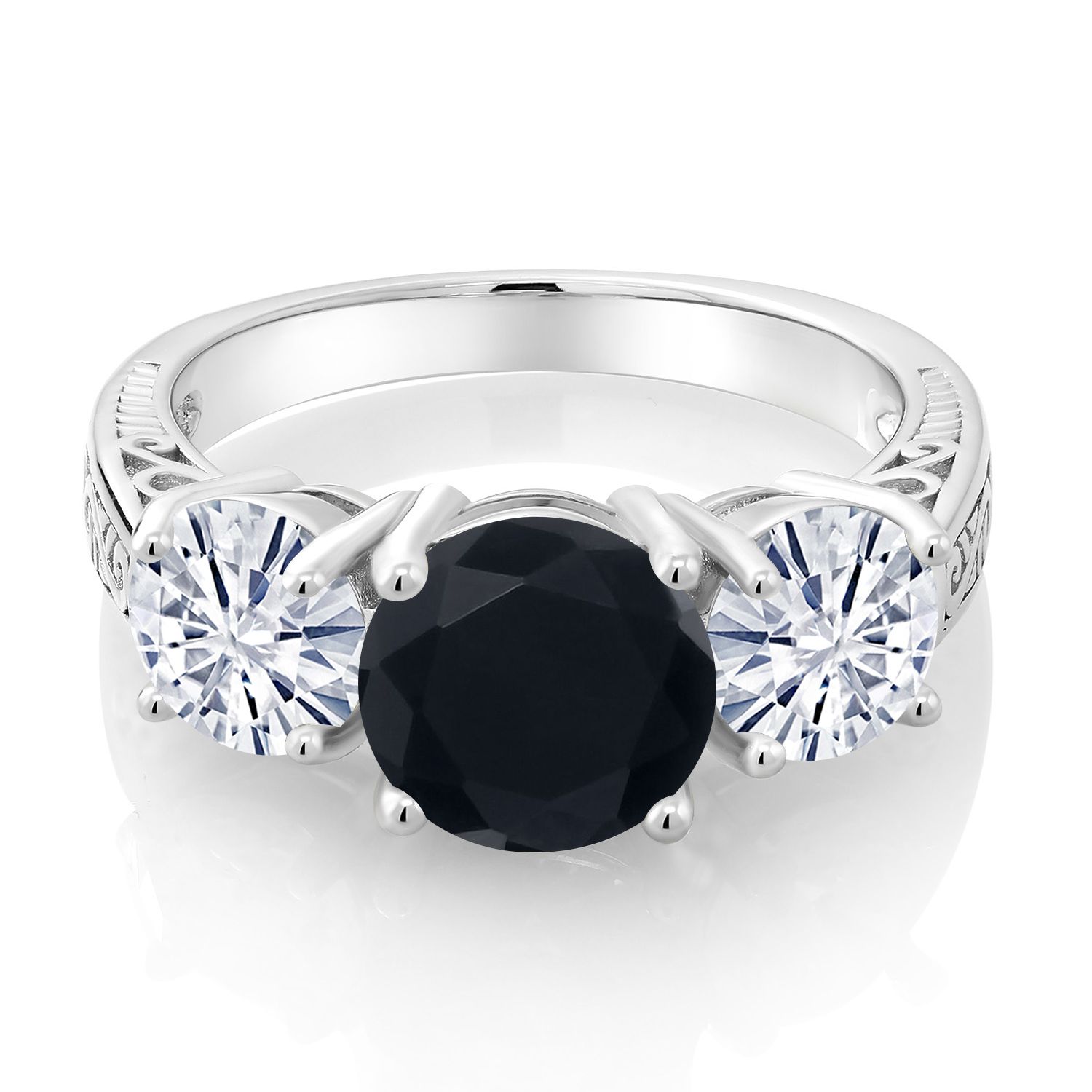 MEASUREMENTS: 8x8mm Round Black Onyx, 6x6mm Round Near Colorless (GH) Moissanite. Total Carat Weight is 3.25 cttw