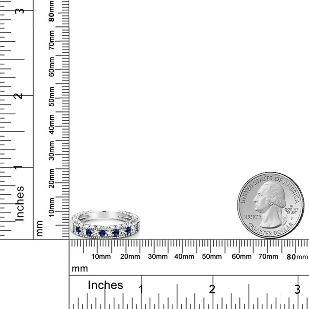 EXQUISITE DESIGN: This wedding band ring features a stunning combination of blue and white created sapphires set in 925 sterling silver. The alternating pattern of blue and white stones creates a beautiful contrast and adds a touch of elegance and sophistication to your wedding or engagement ring stack.