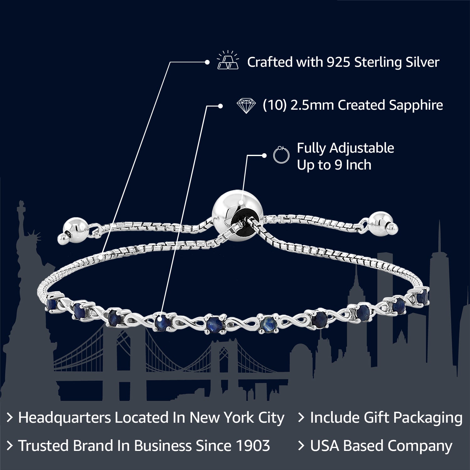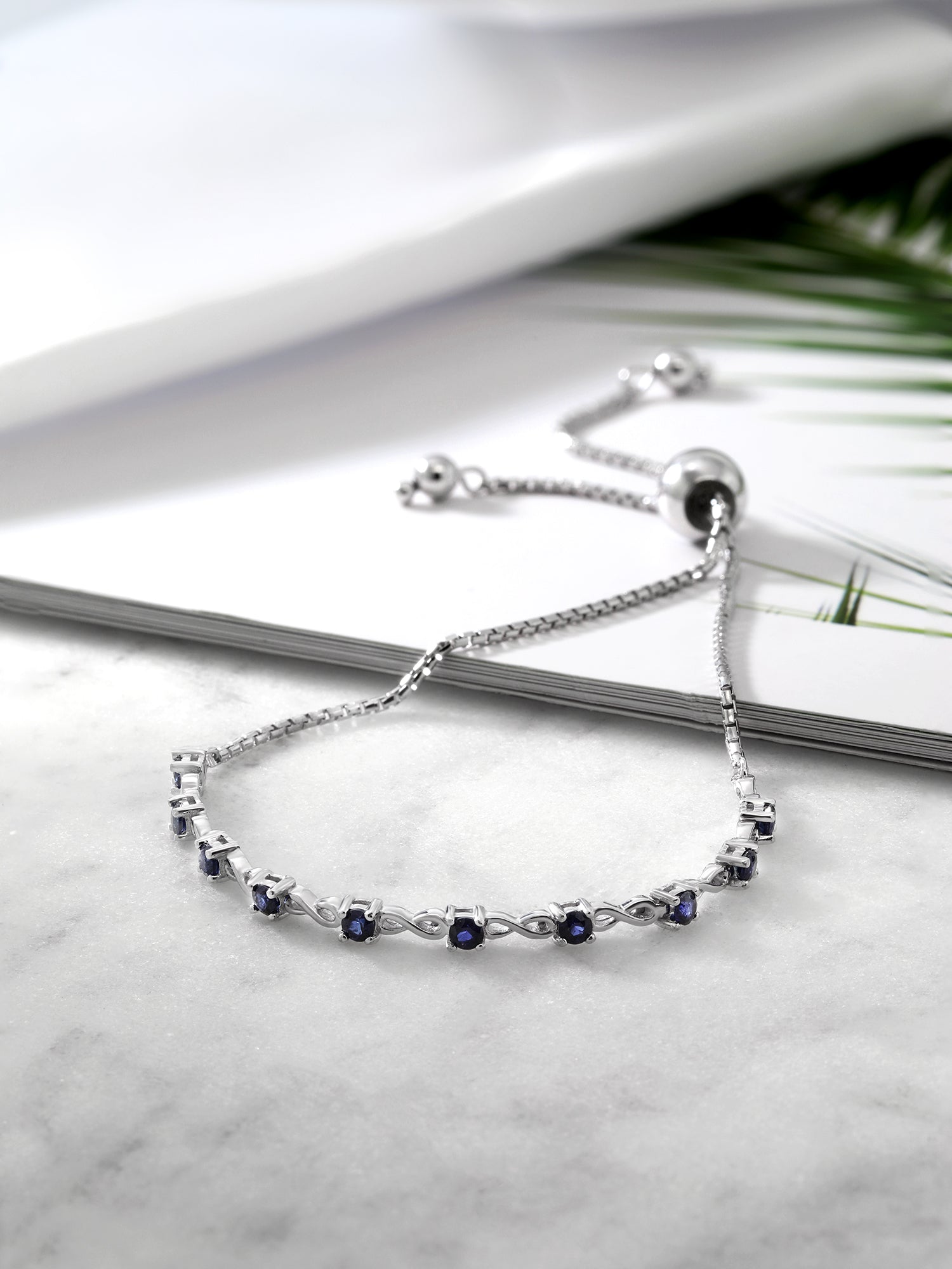 ADJUSTABLE COMFORT: With the ability to fit up to a 9-inch wrist, our bracelet ensures a comfortable fit for all. The combination of created blue sapphires and sterling silver makes this bracelet a versatile accessory for any occasion.