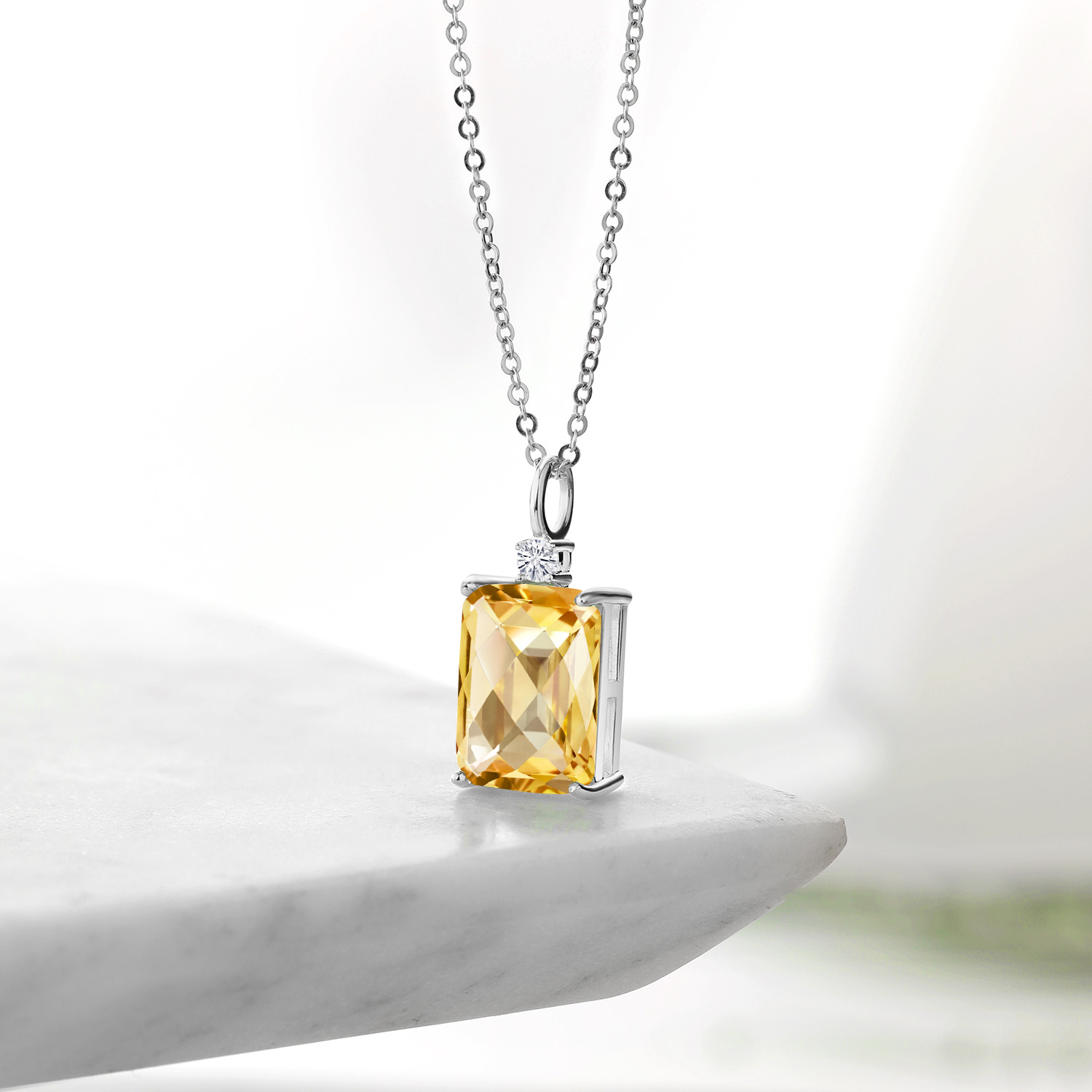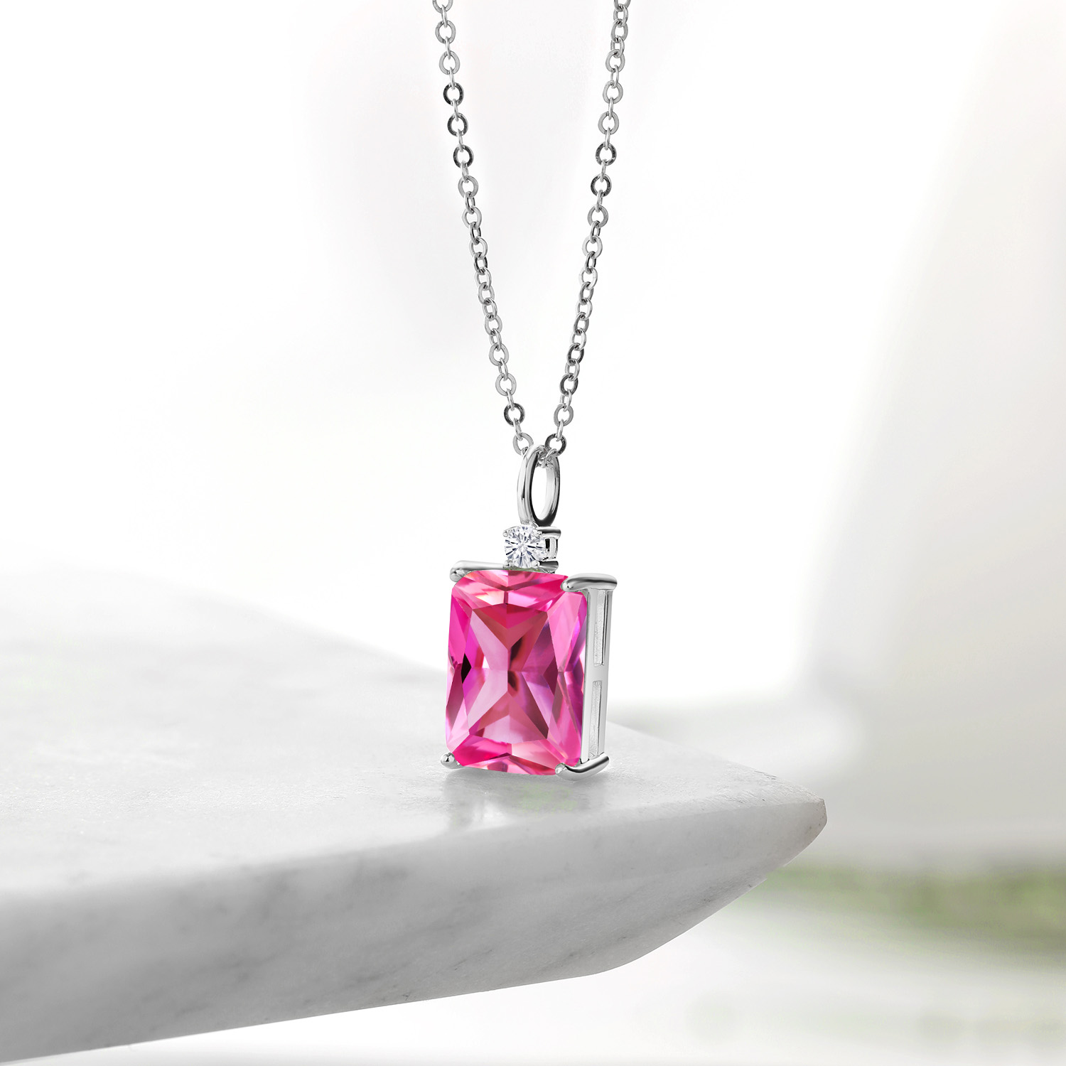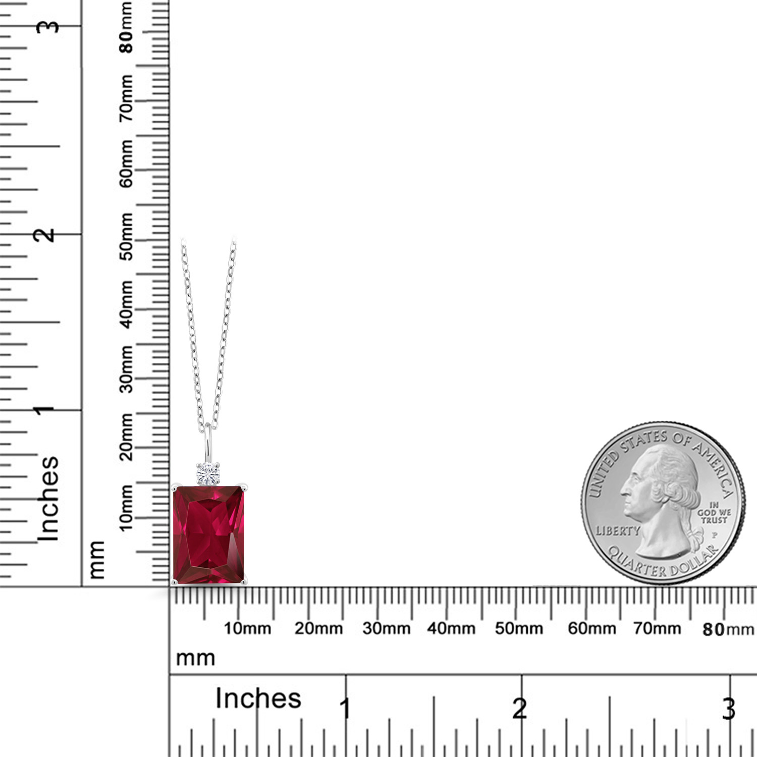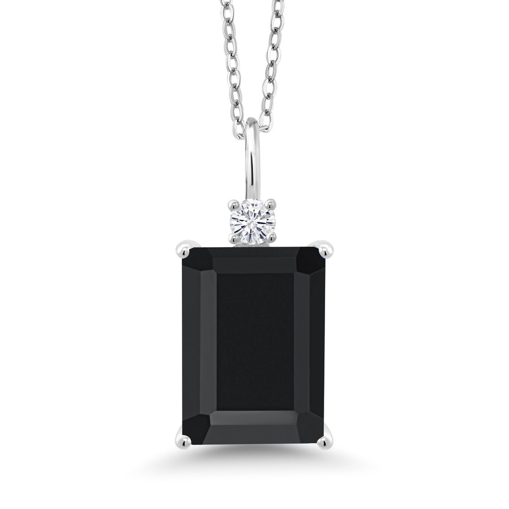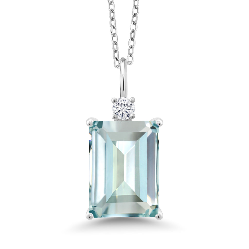 925 Sterling Silver Gemstone Birthstone and Moissanite Pendant Necklace for Women | Emerald Cut 14X10MM | 18 Inch Chain | Jewelry Gift for Her Mom Wife