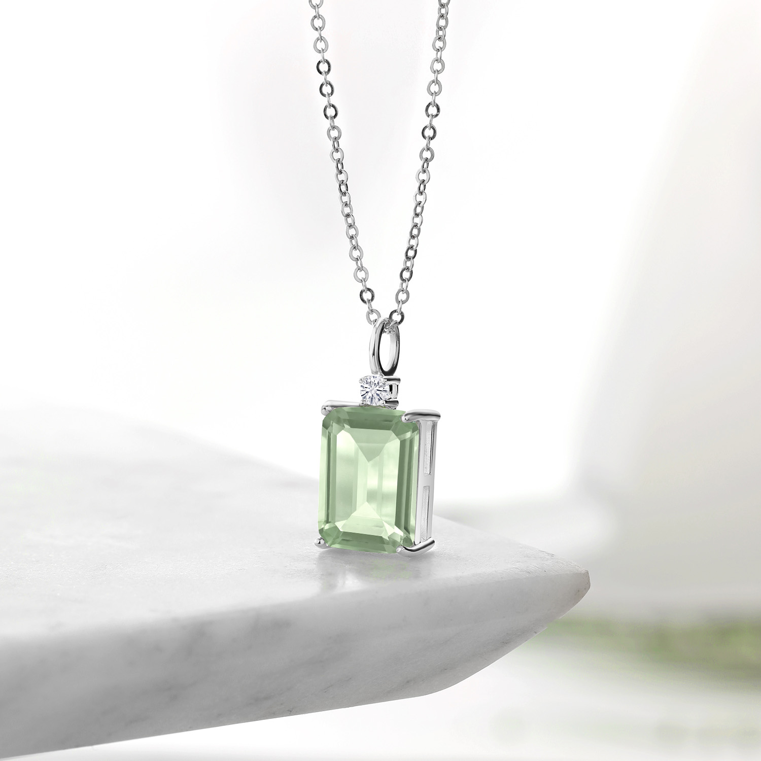 TIMELESS DESIGN BRILLIANCE: The pendant features a striking emerald-cut gemstone topped with a 3mm round moissanite accent. This harmonious pairing creates a captivating sparkle, while the sleek silver setting adds a touch of modern elegance to any outfit.