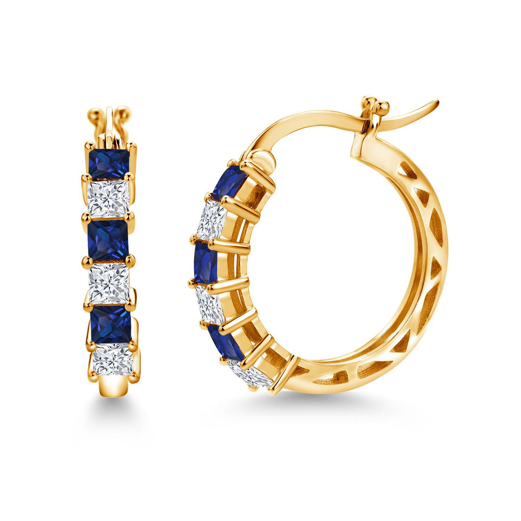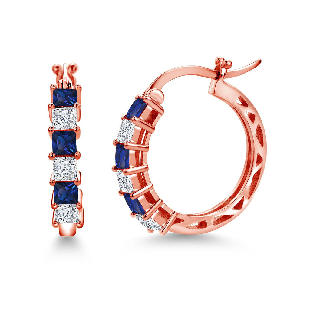 1.56 Cttw Blue Created Sapphire and White Moissanite Hoop Earrings for Women | 925 Sterling Silver | 3MM Princess Cut | 20MM | Fine Jewelry Gifts for Her Mom Women Wife