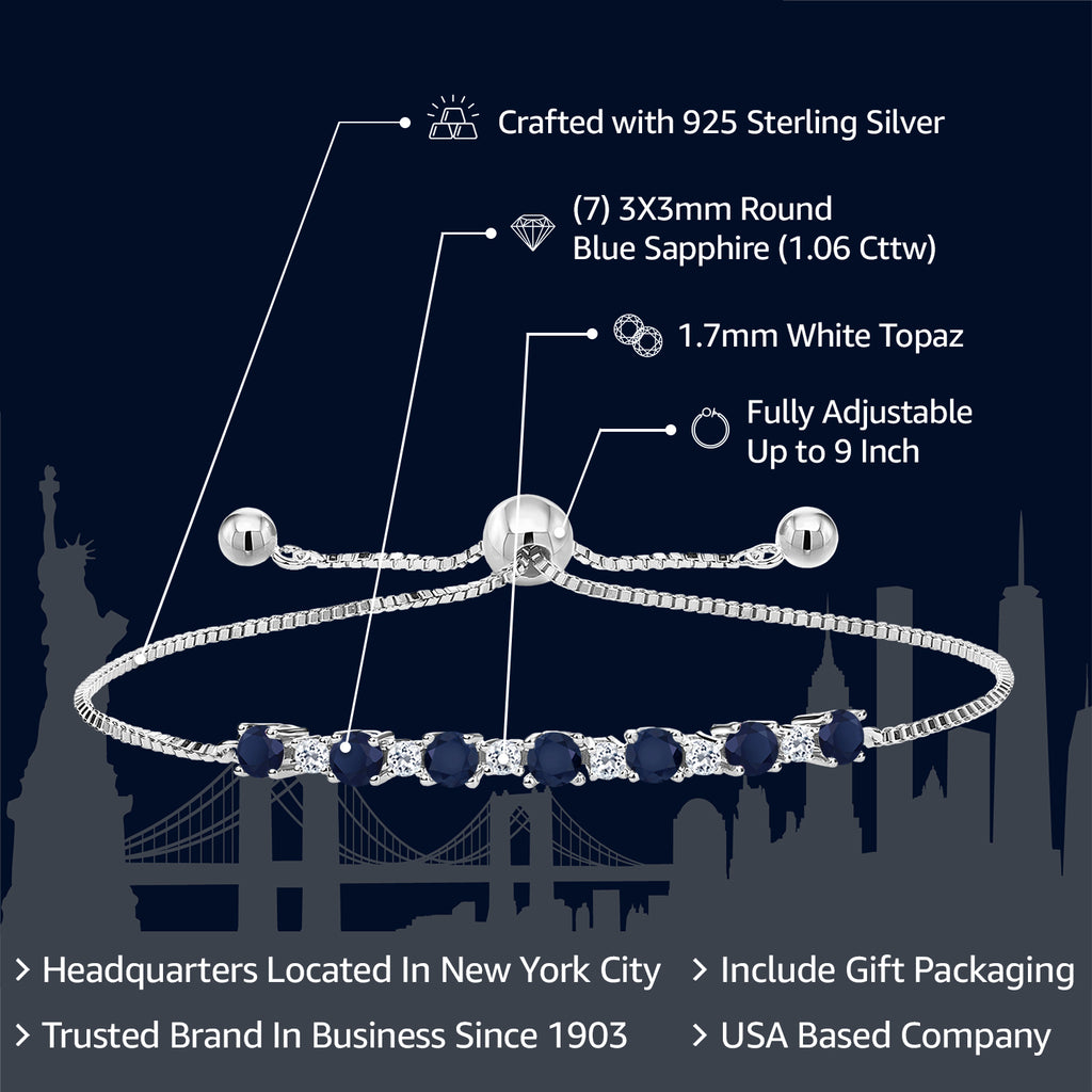 EXQUISITE SAPPHIRE AND TOPAZ BLEND: Elevate your elegance with our exquisite 925 Sterling Silver Blue Sapphire and White Topaz Tennis Bracelet. The captivating Blue Sapphire and White Topaz gemstones, totaling 1.06 Cttw, create a harmonious blend of colors that exudes sophistication and charm.