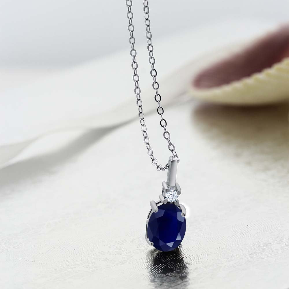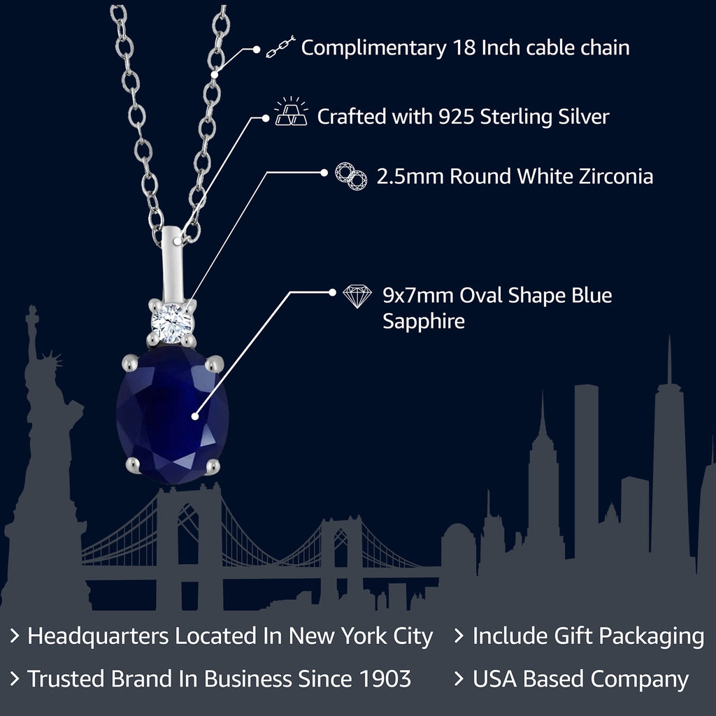 EXQUISITE BLUE SAPPHIRE GEMSTONE: This pendant necklace features a stunning oval-cut 9x7mm blue sapphire gemstone as its centerpiece. The deep blue hue of the sapphire creates a captivating and elegant look, symbolizing wisdom and nobility. Total Carat Weight is 2.55 cttw.