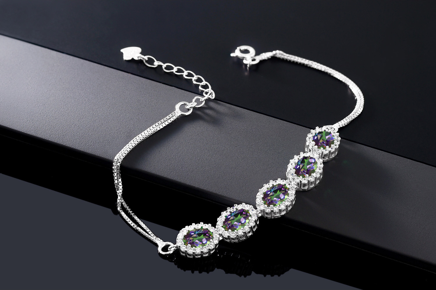 7X5MM Oval Cut Gemstone Birthstone Tennis Bracelet For Women In 925 Sterling Silver | 7 Inch with 1.5 Inch Extender | Fine Jewelry Gifts for Her Mom Women Wife