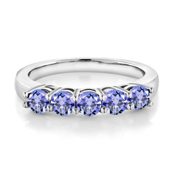 ELEGANT 5-STONE DESIGN: Elevate your wedding or anniversary with this exquisite 5-stone band ring featuring a total of 0.90 Cttw of round 3.5MM blue tanzanite gemstones. The five-stone design symbolizes the enduring love and commitment in your relationship.