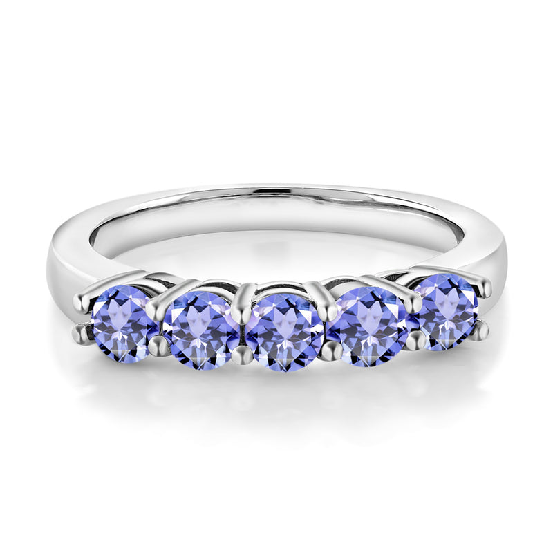 Gem Stone King 0.90 Cttw Blue Tanzanite 5-Stone Wedding Anniversary Band Ring For Women | 925 Sterling Silver | Gemstone December Birthstone | Wedding Engagement Anniversary Promise Ring | Size 6