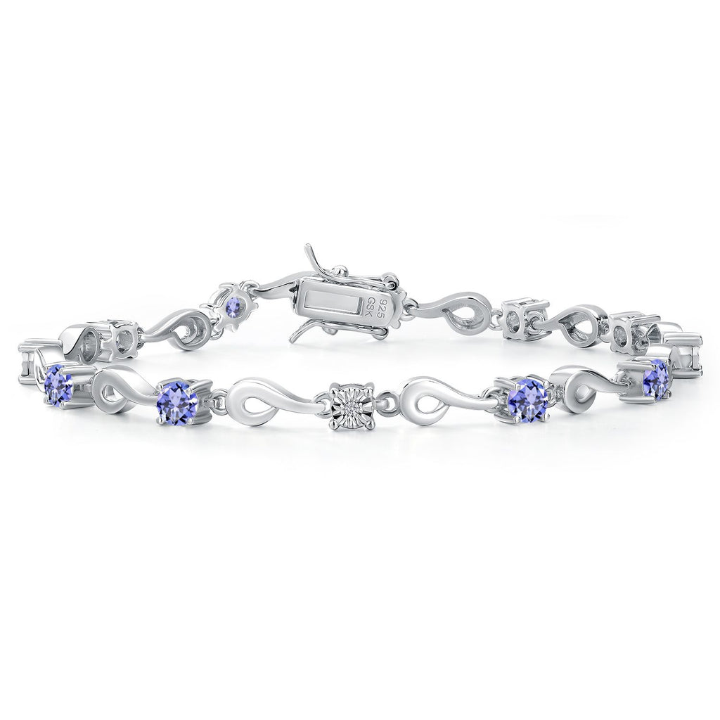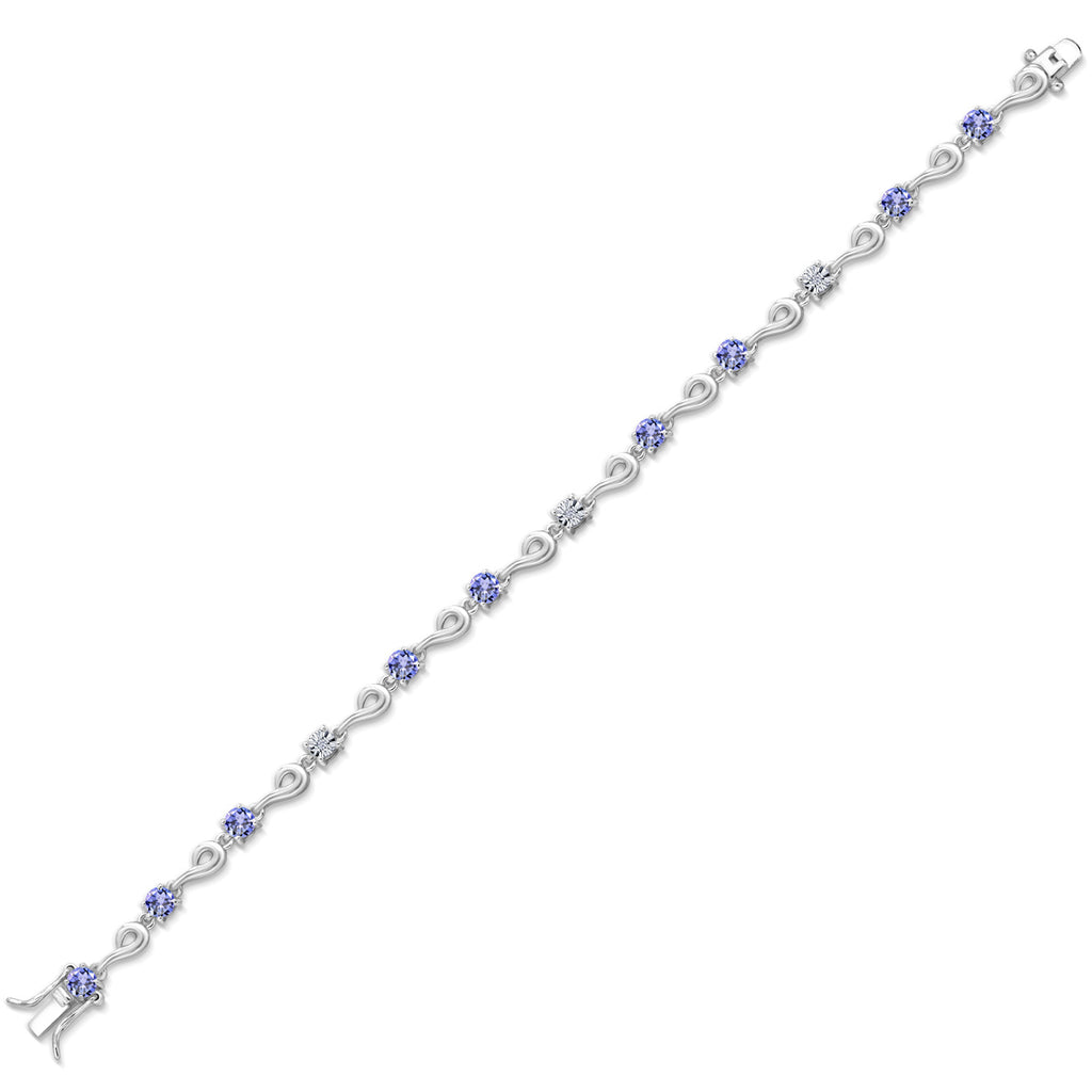 925 Sterling Silver Blue Tanzanite and White Lab Grown Diamond Bracelet For Women (2.72 Cttw, Gemstone December Birthstone, Round 4MM, 6.5, 7, 7.5 Inches)