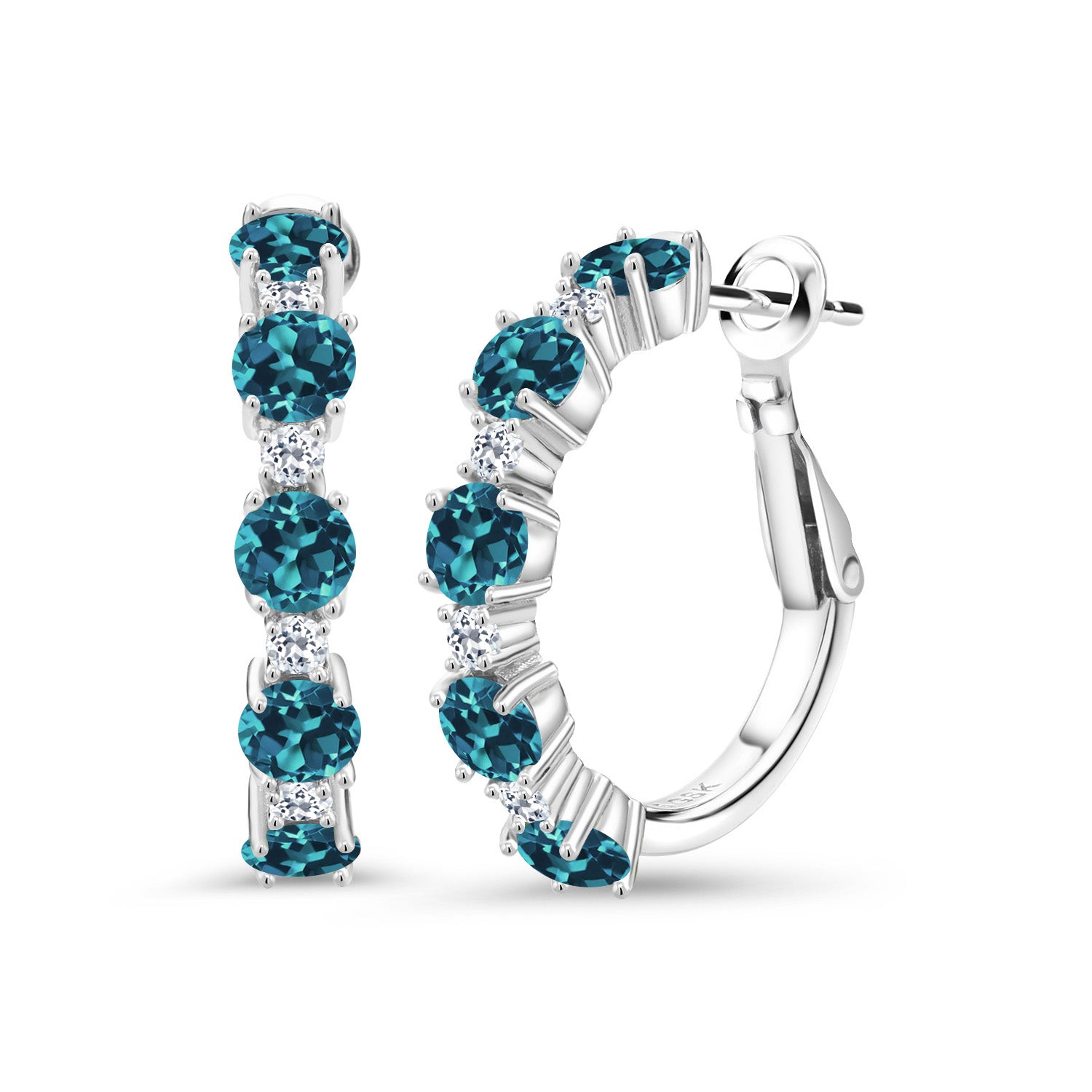 SOPHISTICATED HOOP DESIGN & WHITE TOPAZ DETAIL: The classic 1-inch diameter hoops offer a versatile canvas for gleaming white topaz accents, each 1.9MM in size, enhancing the main gemstone's splendor while adding a layer of refined complexity. Expertly crafted, these earrings feature meticulous attention to detail, ensuring a flawless finish alongside superior comfort, promising effortless elegance from morning meetings to moonlit soirees, seamlessly enhancing any attire.
