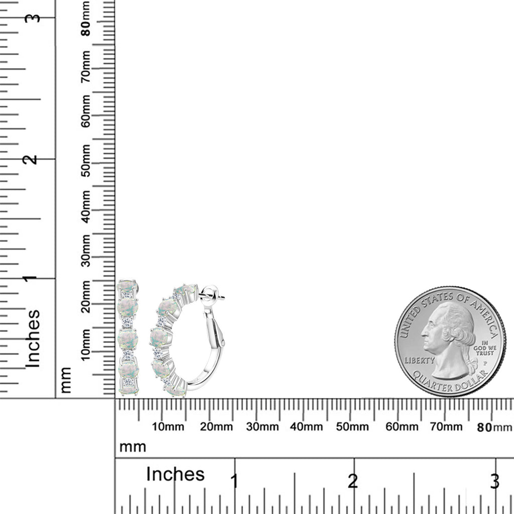 Alternating Hoop Earrings for Women | 925 Sterling Silver | Gemstone Birthstone and White Topaz | Round 4MM and 1.9MM Stones | 1 Inch Diameter Hoops | Fine Jewelry for Her Mom Wife Women
