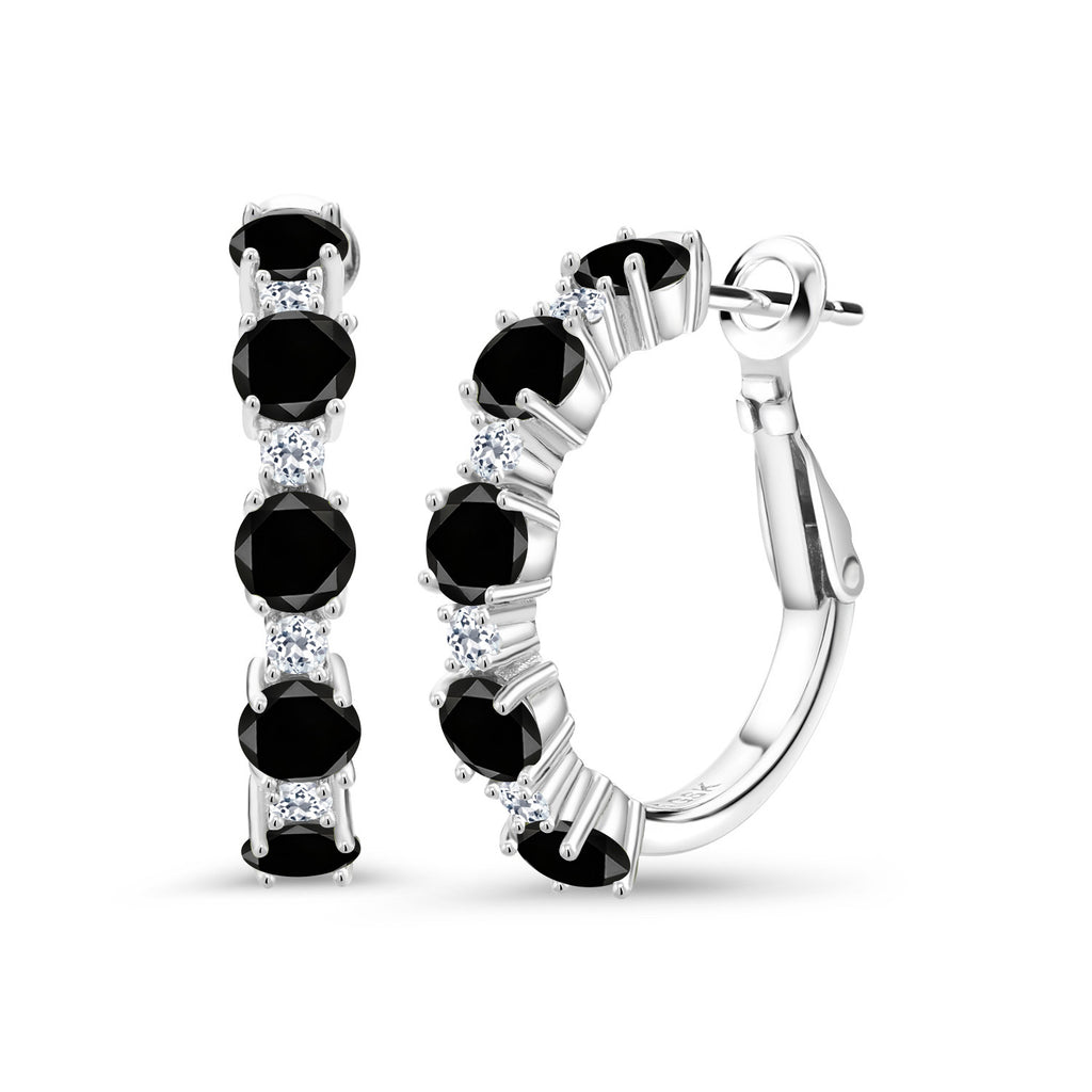 SOPHISTICATED HOOP DESIGN & WHITE TOPAZ DETAIL: The classic 1-inch diameter hoops offer a versatile canvas for gleaming white topaz accents, each 1.9MM in size, enhancing the main gemstone's splendor while adding a layer of refined complexity. Expertly crafted, these earrings feature meticulous attention to detail, ensuring a flawless finish alongside superior comfort, promising effortless elegance from morning meetings to moonlit soirees, seamlessly enhancing any attire.