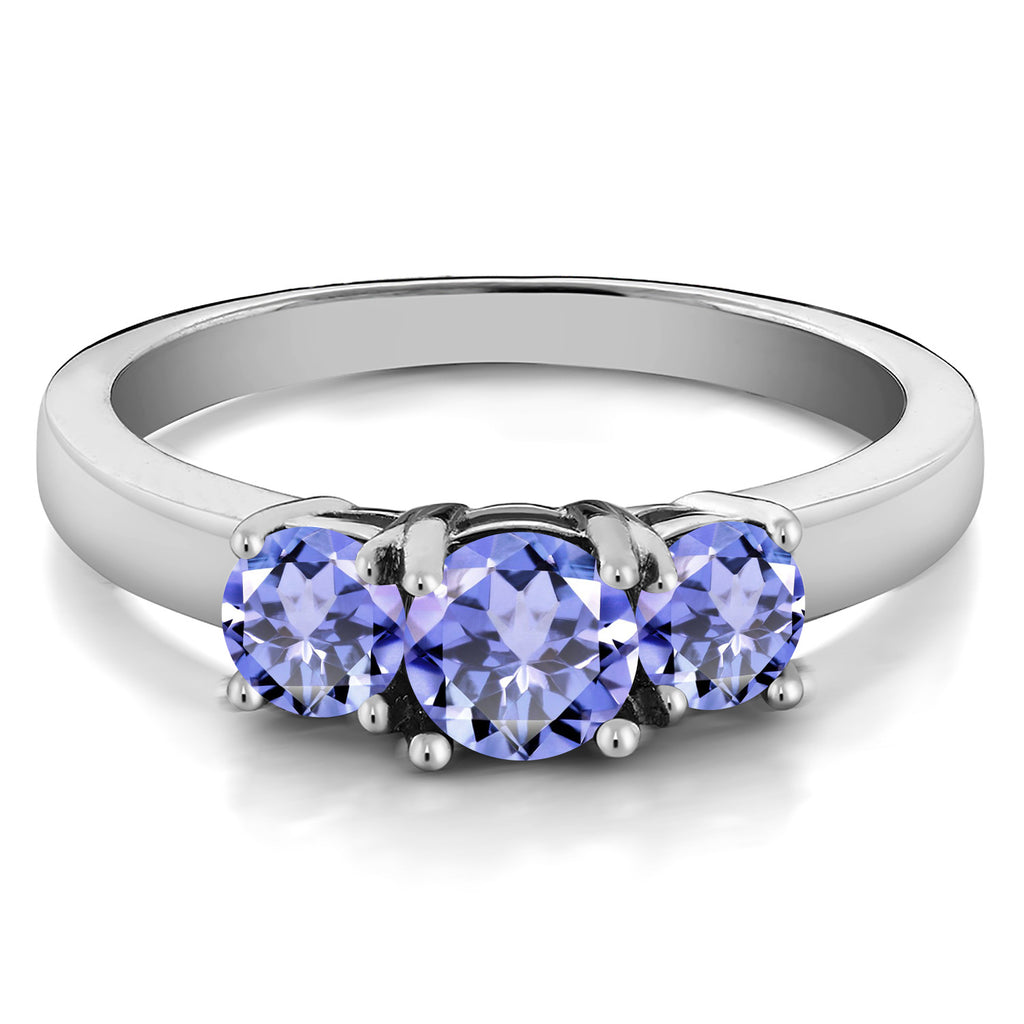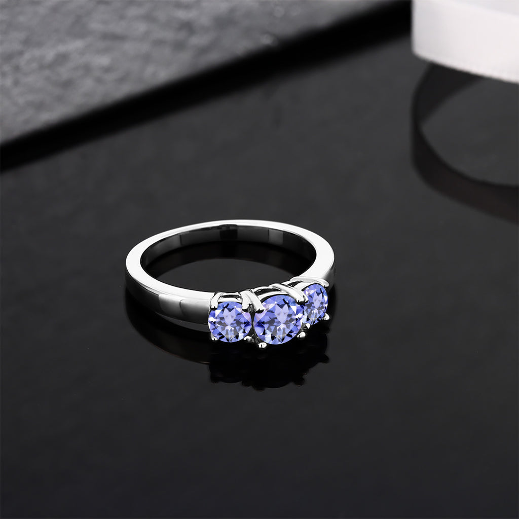 925 Sterling Silver Blue Tanzanite Engagement Ring | 1.06 Cttw | Round 5MM and 4MM | Gemstone Birthstone | Three Stone Wedding Engagement Anniversary Promise Ring For Women