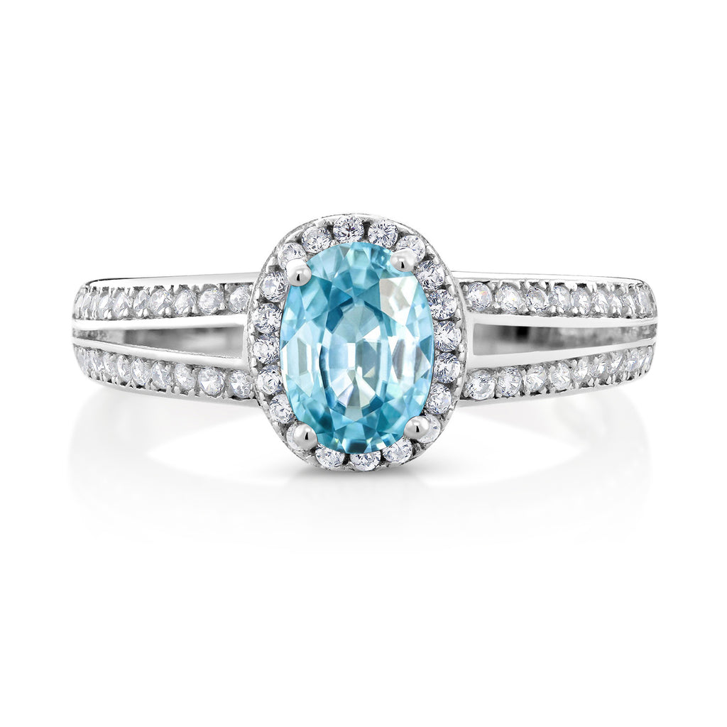 MEASUREMENTS: 7x5mm Oval Heat-Treated Blue Zircon, 1x1mm Round White Zirconia. Total Carat Weight is 1.85 cttw