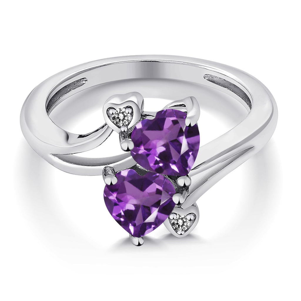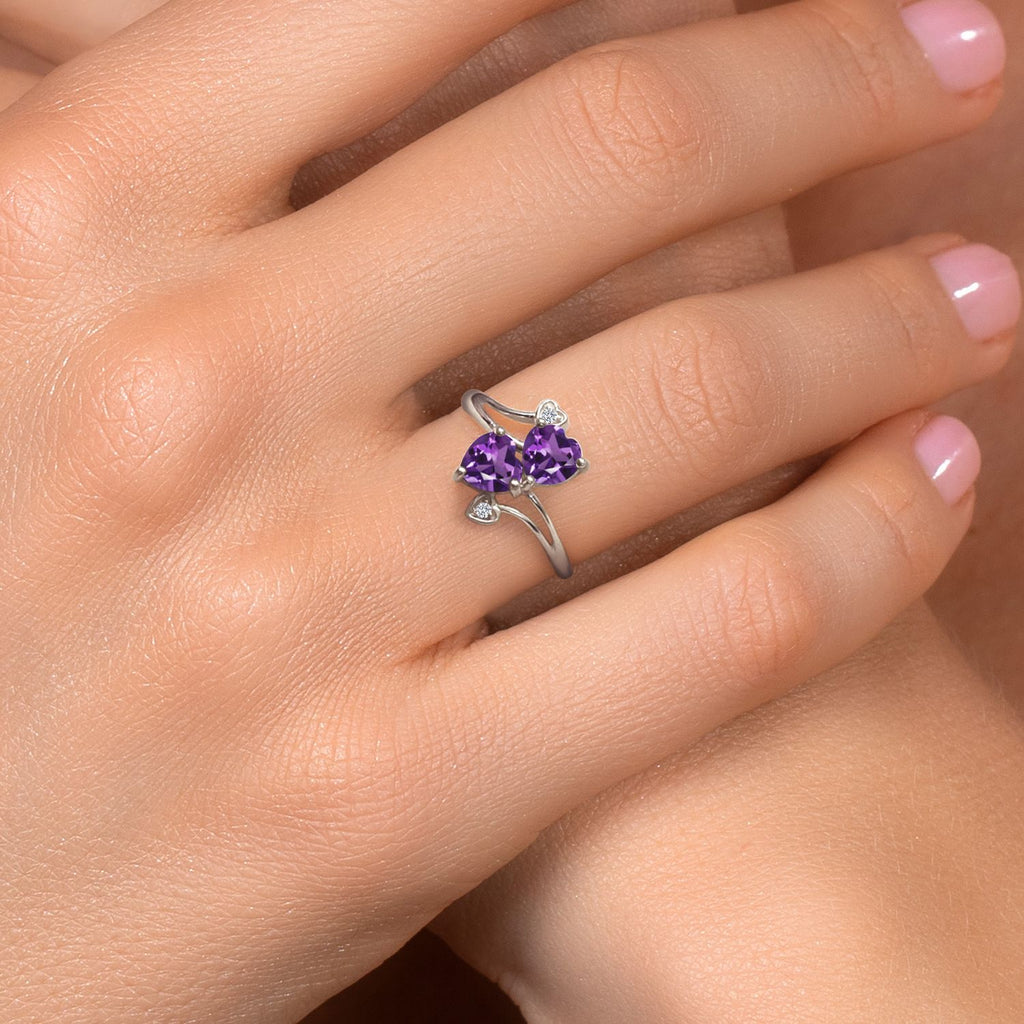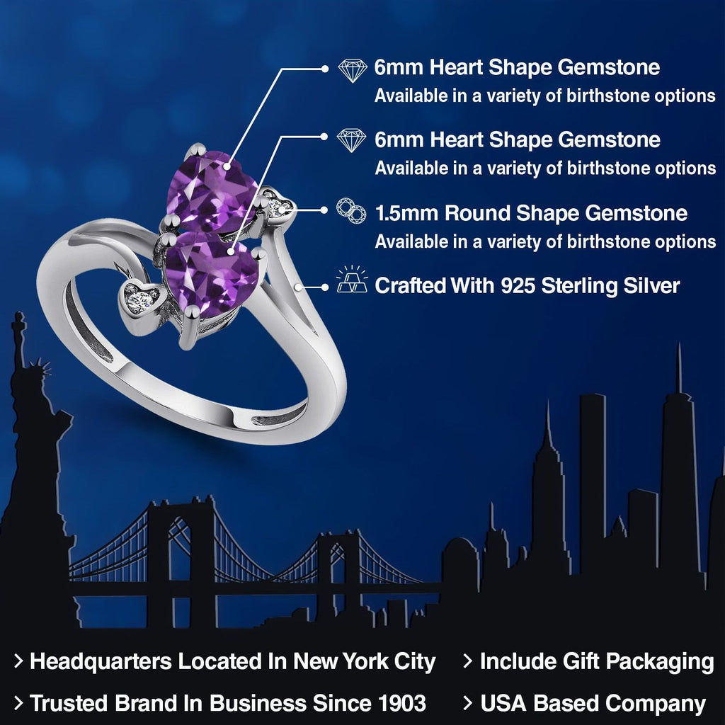 925 Sterling Silver Double Heart Promise Ring for Women | 6MM Gemstone Birthstone with 1.5MM White Diamond Accents | 2-Stone Fine Jewelry for Engagement Wedding Anniversary | Size 5-9