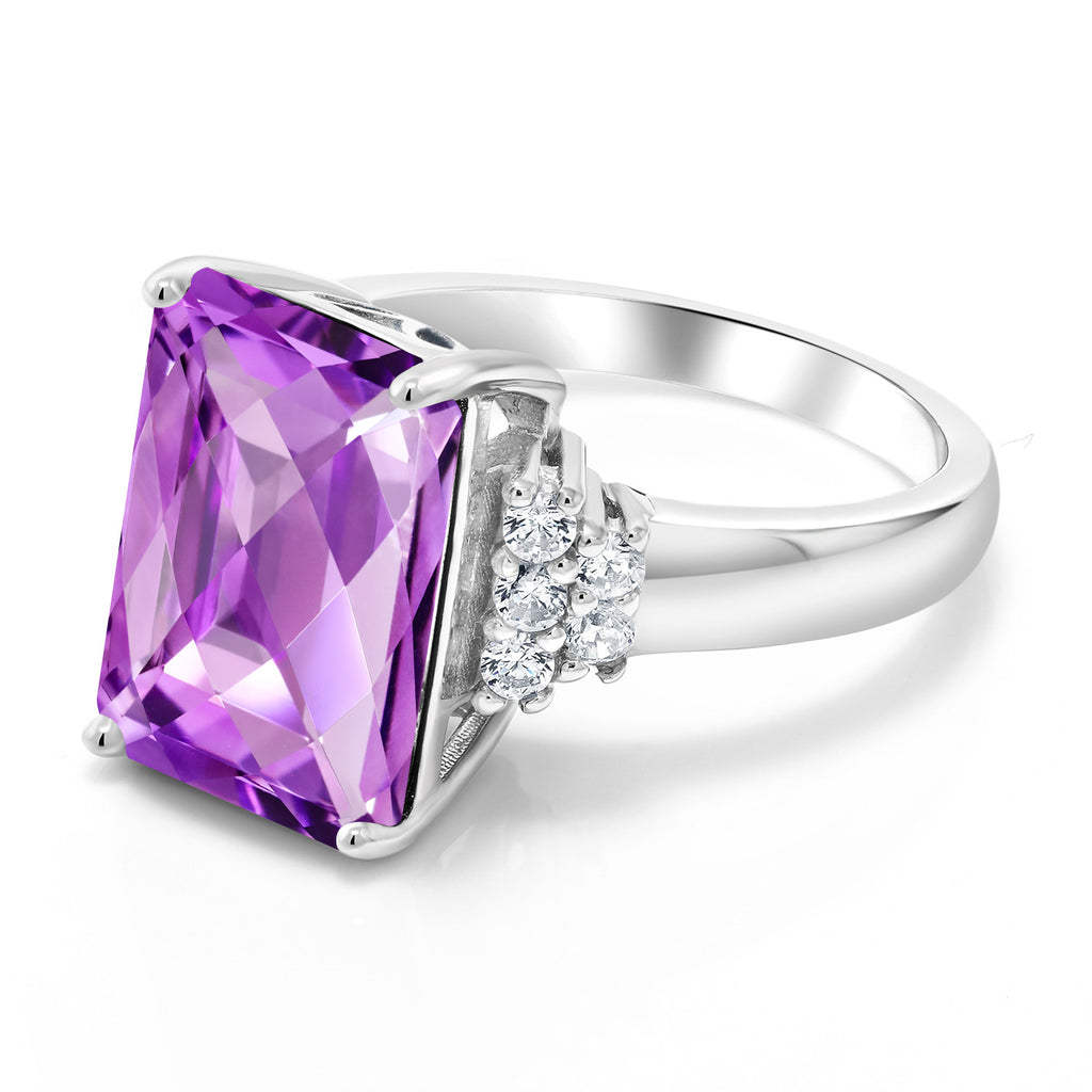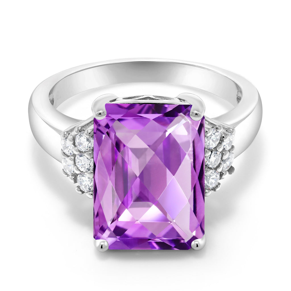5-10 Cttw Gemstone Birthstone Engagement Ring For Women | 14X10MM Emerald Cut | 925 Sterling Silver | Wedding Anniversary Promise Ring | Available In Size 5, 6, 7, 8, 9