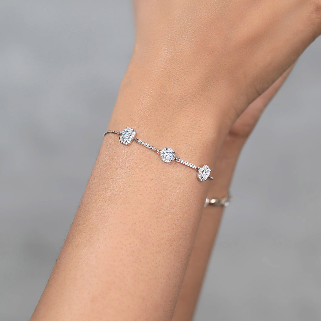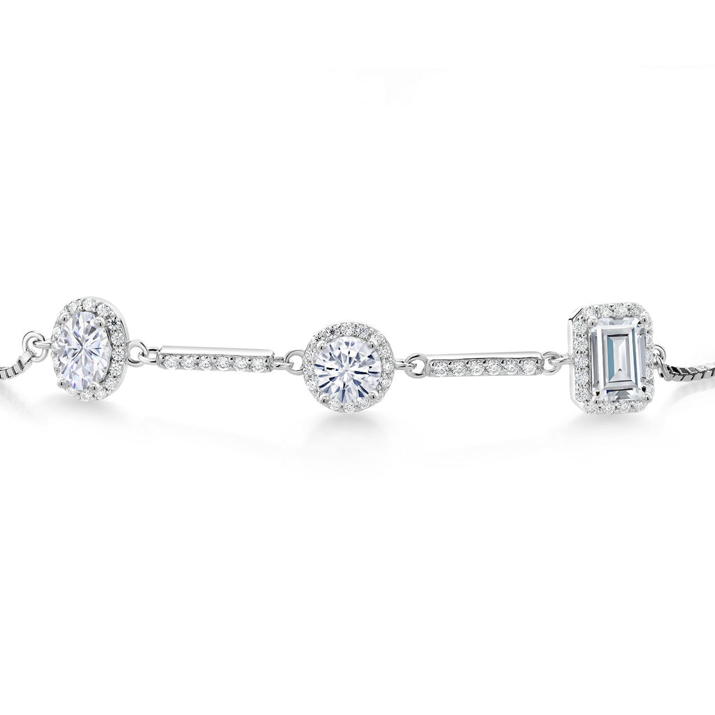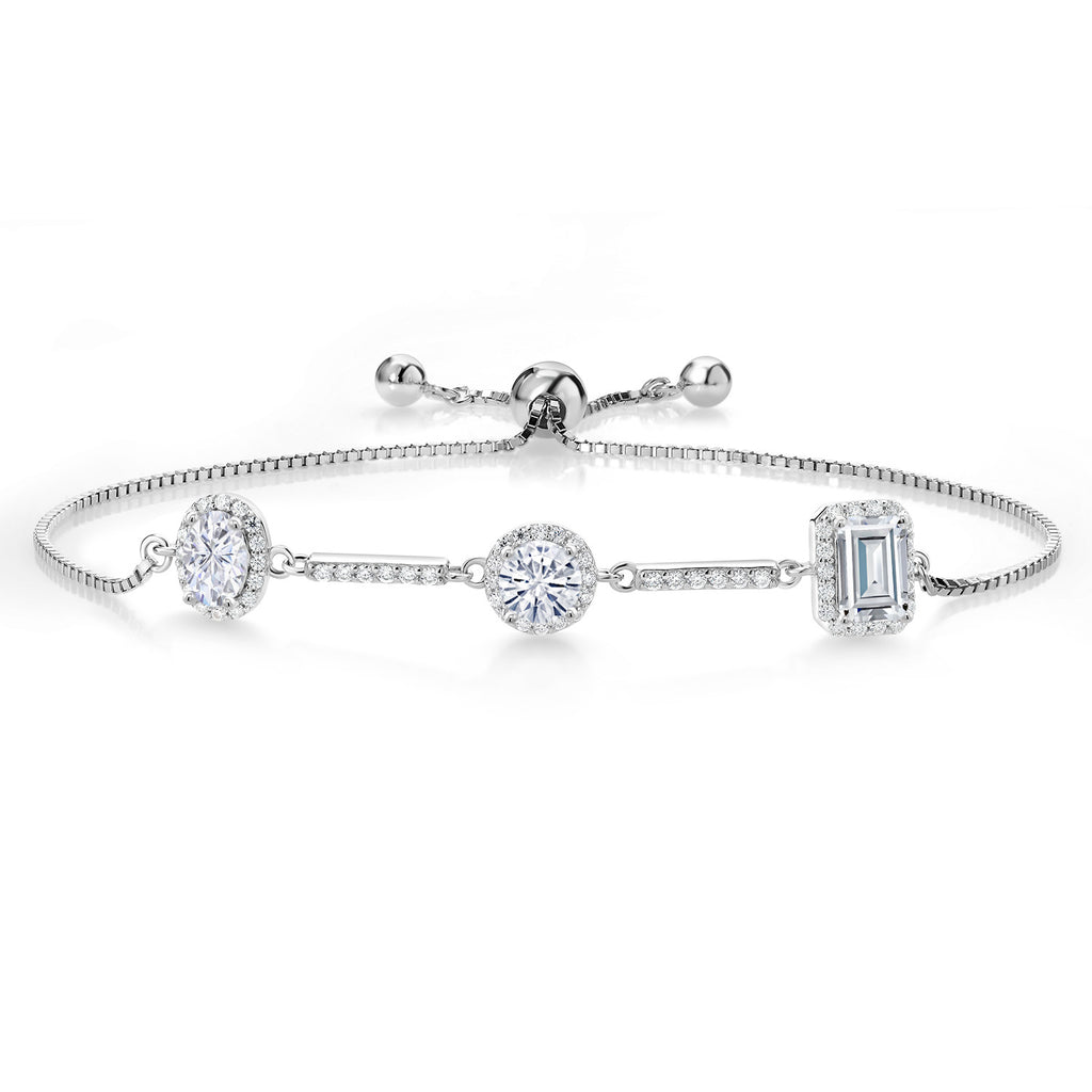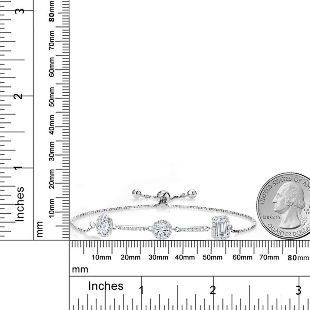 925 Sterling Silver Emerald Round and Oval White Moissanite 3 Stone Tennis Bracelet For Women By Keren Hanan | 1.90 Cttw | Fully Adjustable Up to 9 Inch