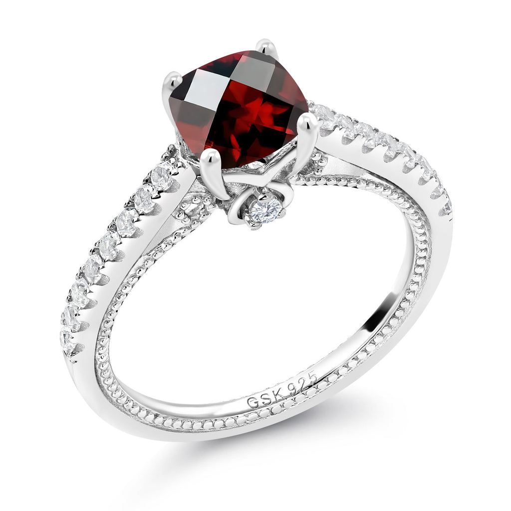 ELEGANT & TIMELESS DESIGN: This stunning ring features a 6MM cushion-cut gemstone birthstone complemented by sparkling accent created sapphires, all set in durable 925 sterling silver for a classic and sophisticated look.