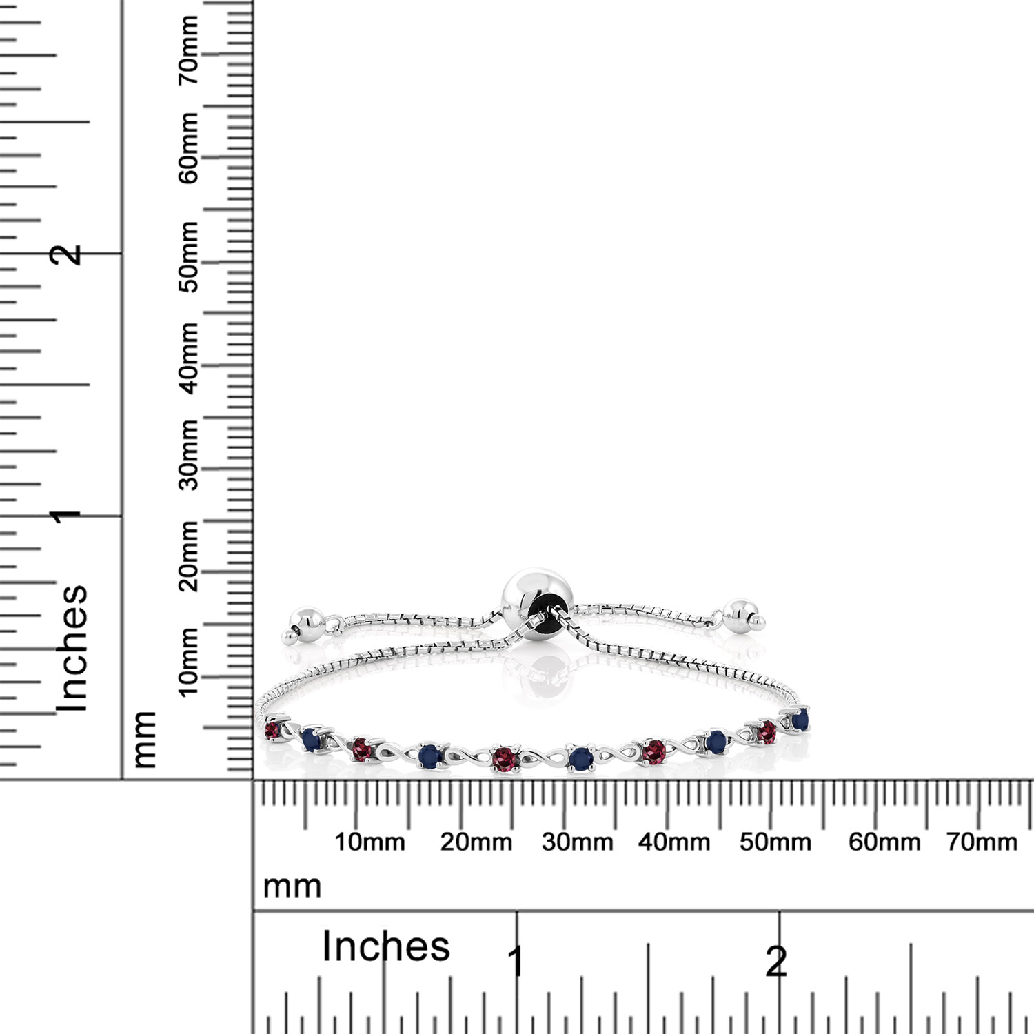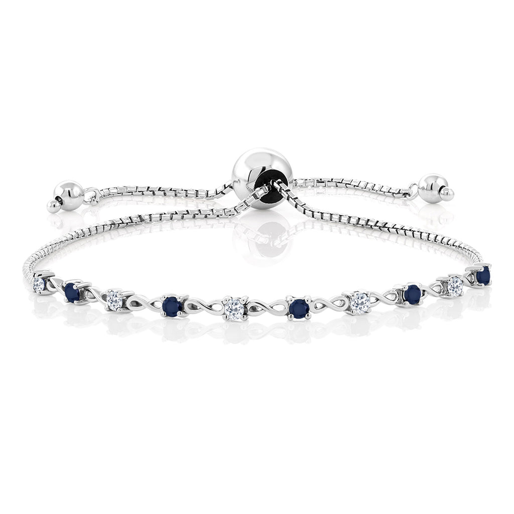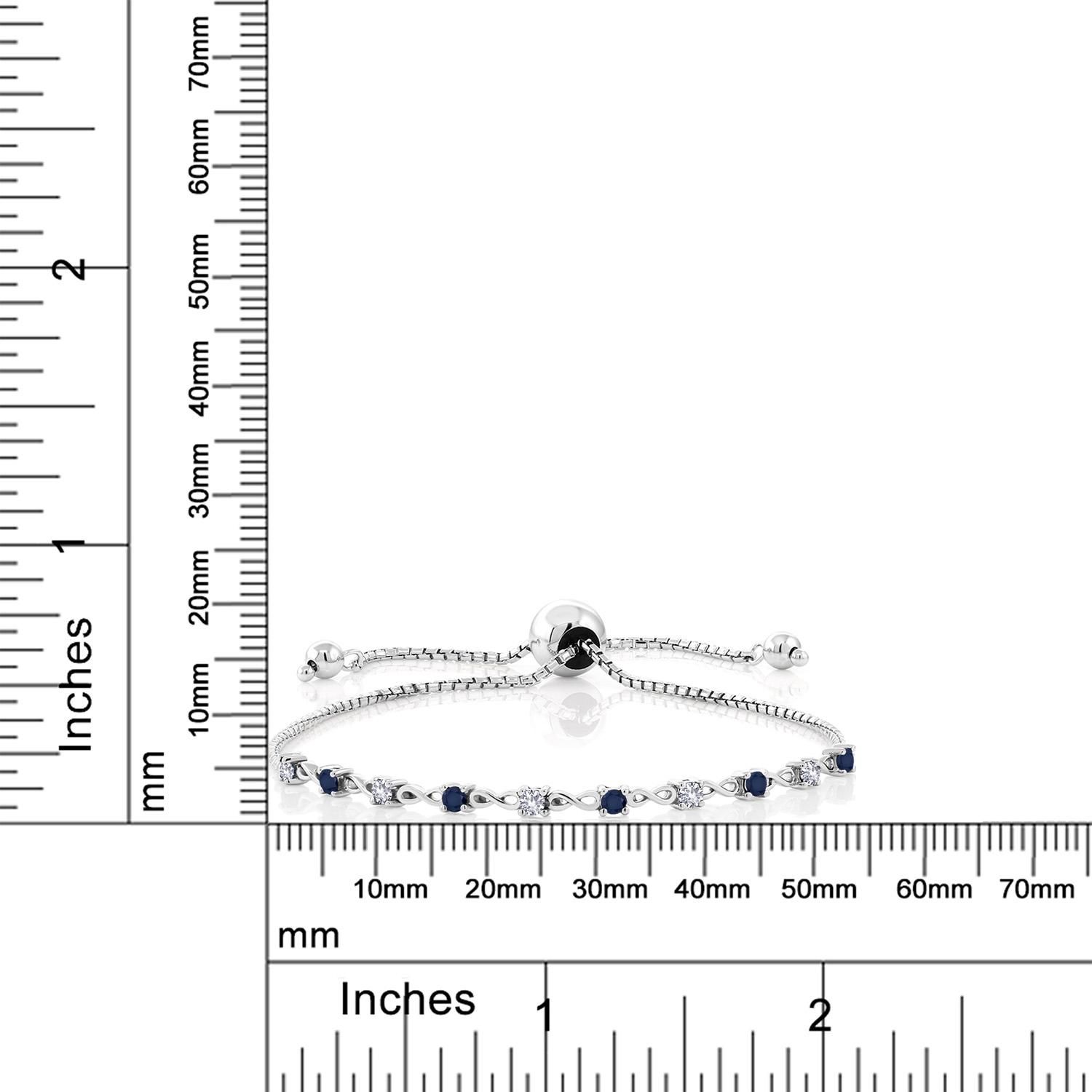 925 Sterling Silver Gemstone Birthstone and Blue Sapphire Infinity Tennis Bracelet For Women | Round 2.5MM | Adjustable Bolo Bracelet Up to 9 Inch | Easy-On Easy-Off
