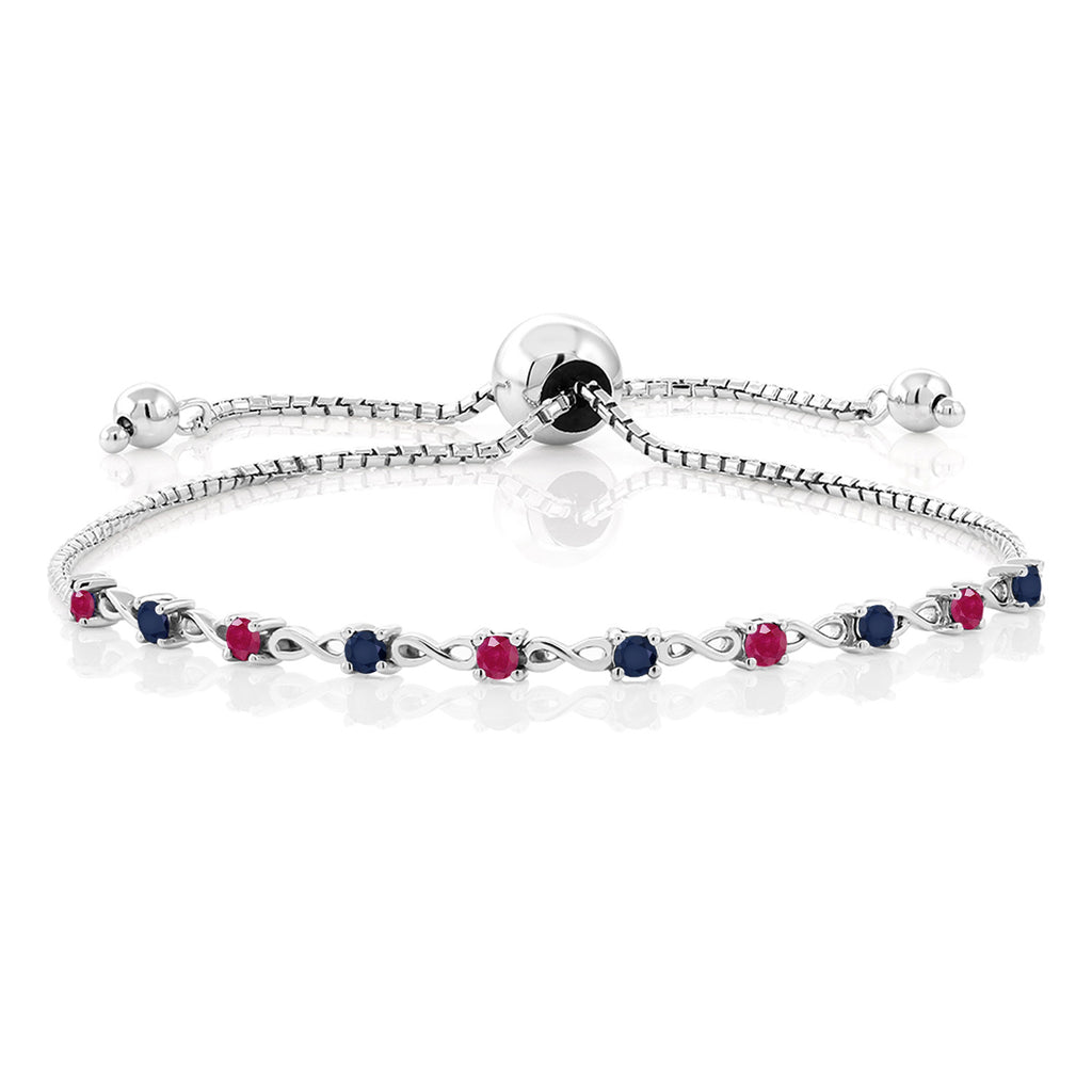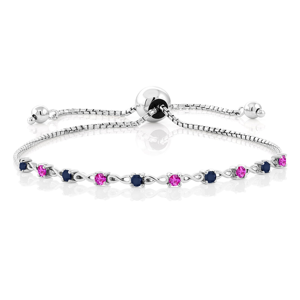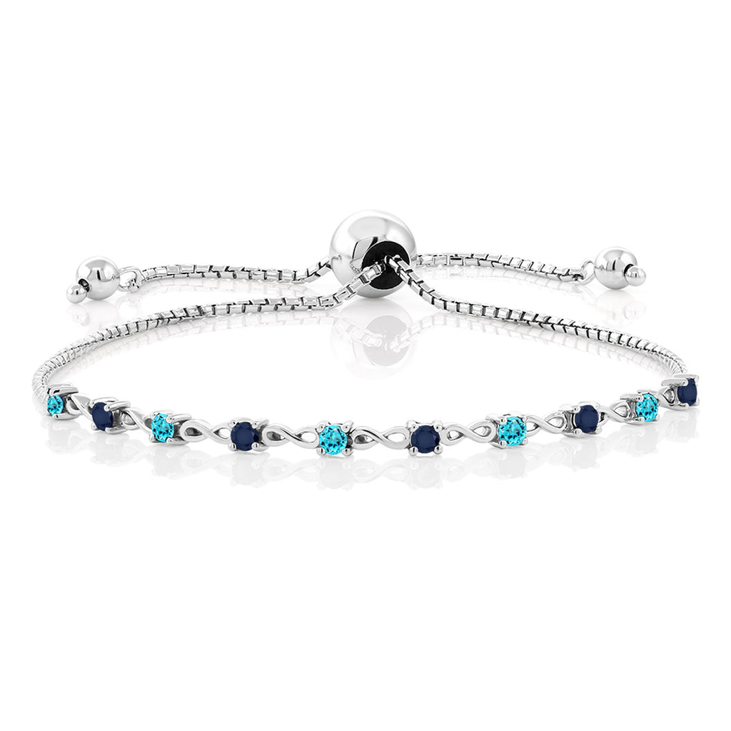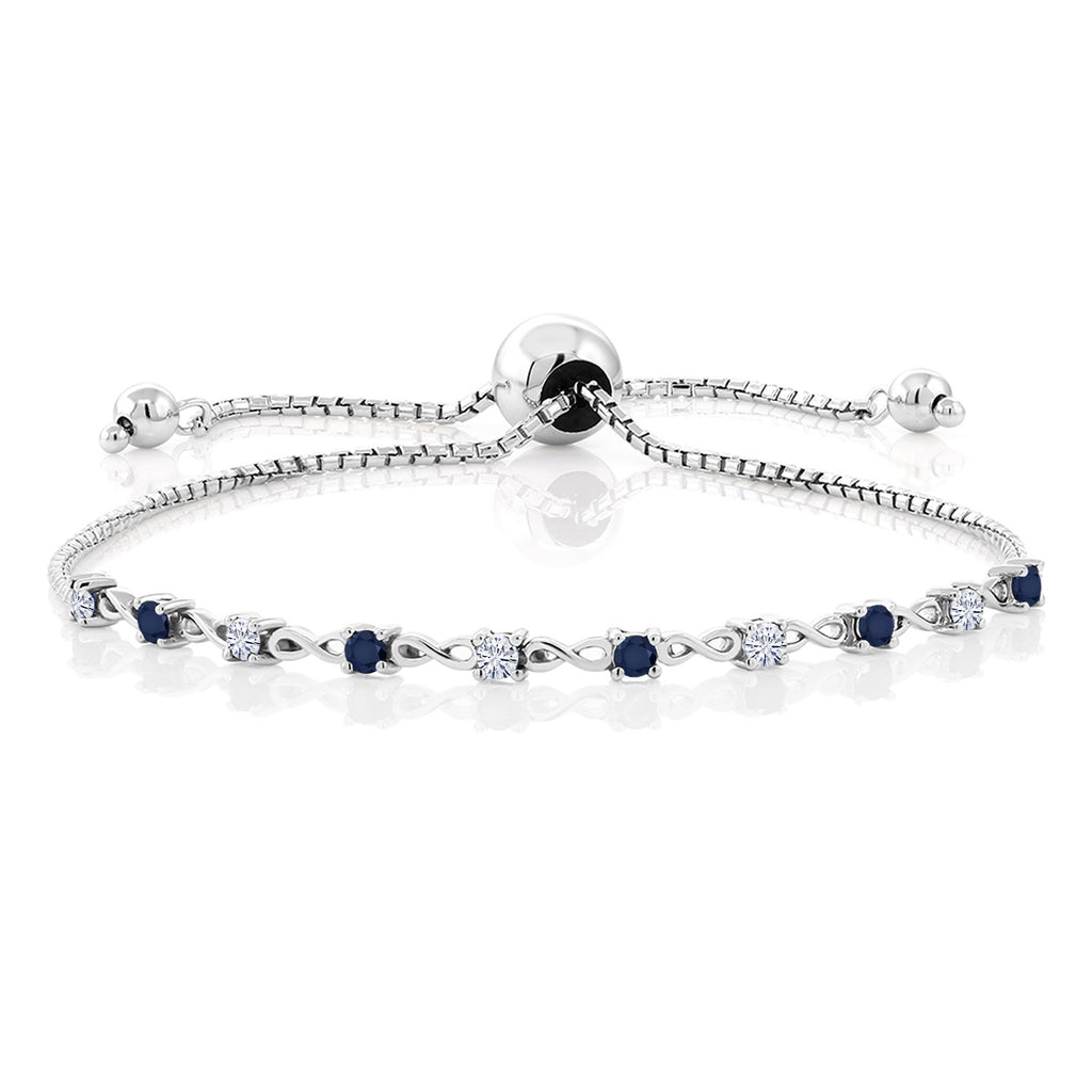 925 Sterling Silver Gemstone Birthstone and Blue Sapphire Infinity Tennis Bracelet For Women | Round 2.5MM | Adjustable Bolo Bracelet Up to 9 Inch | Easy-On Easy-Off