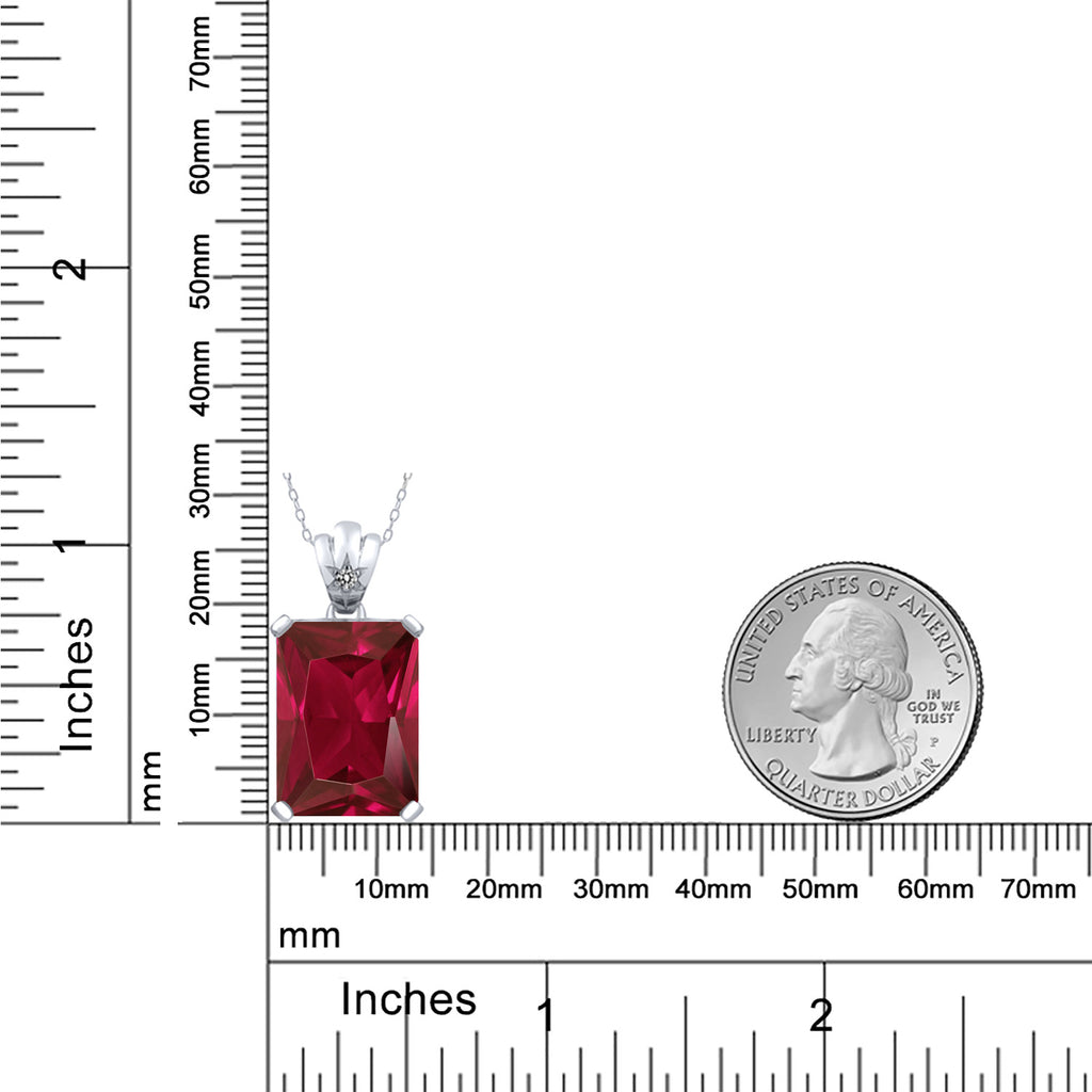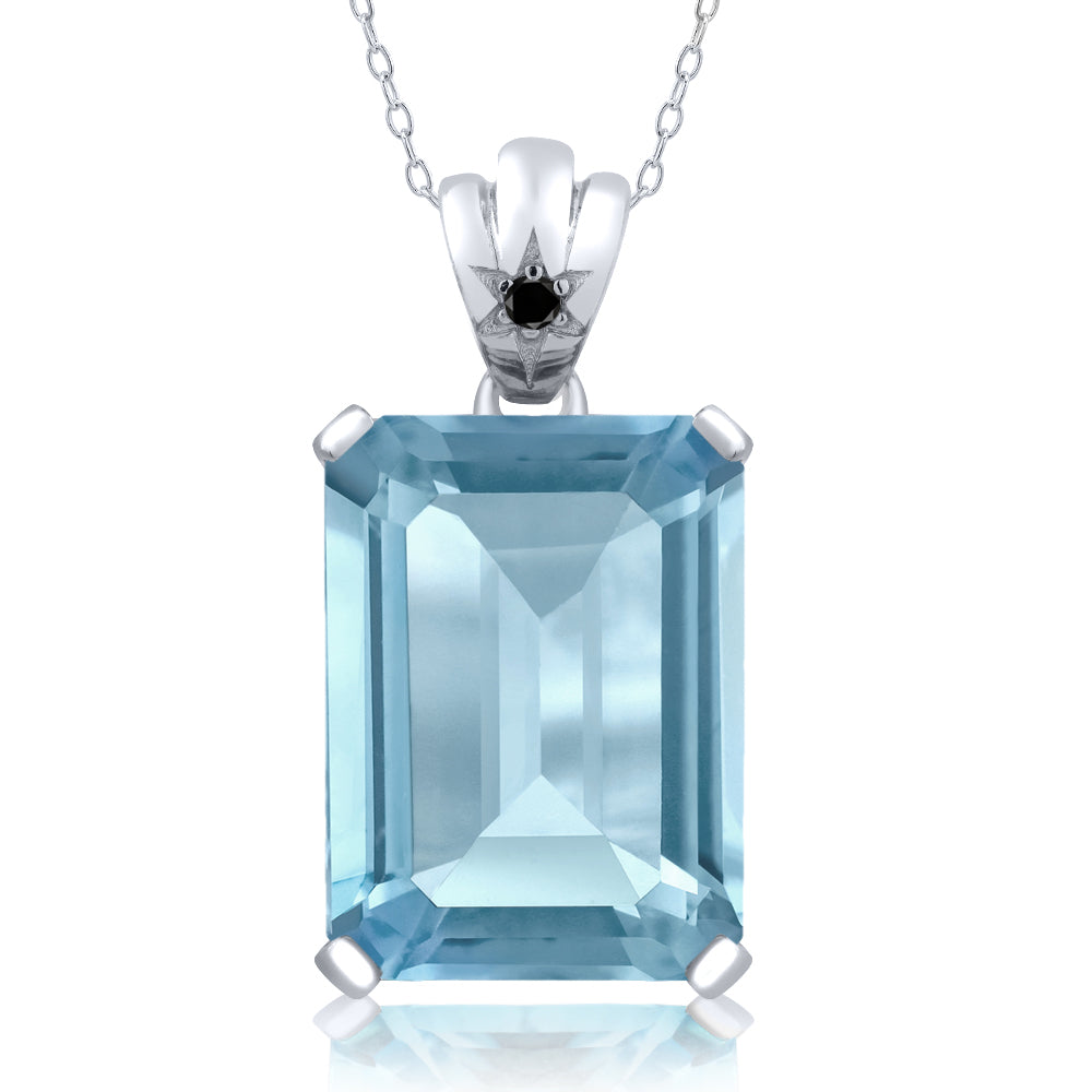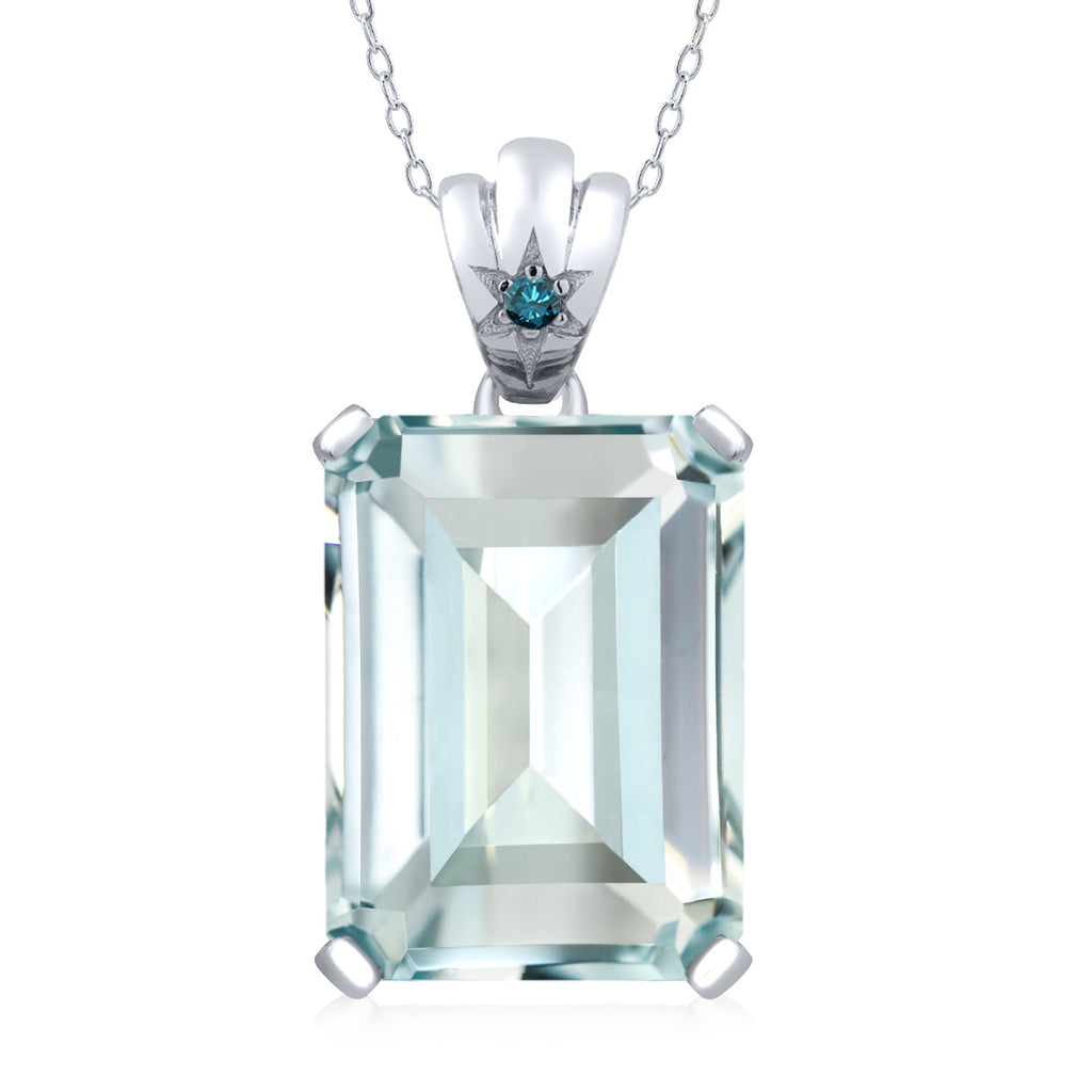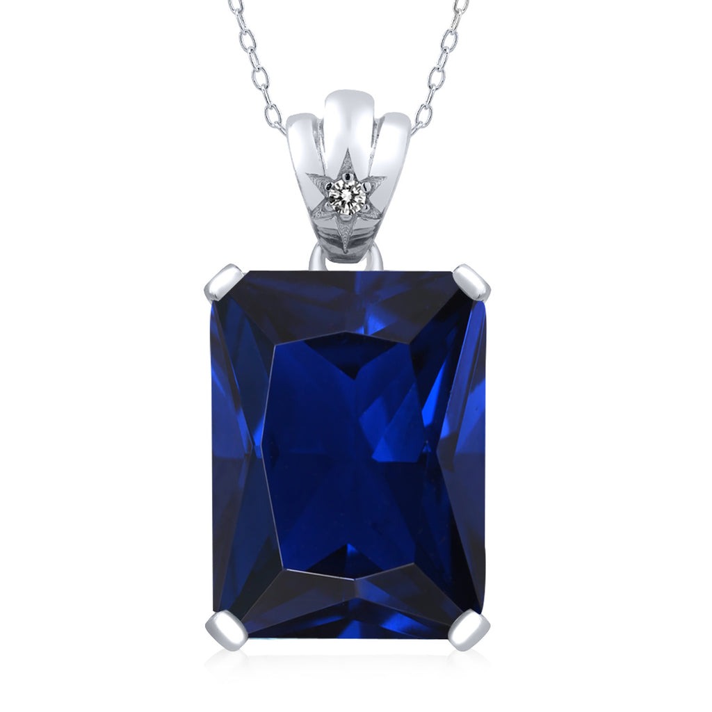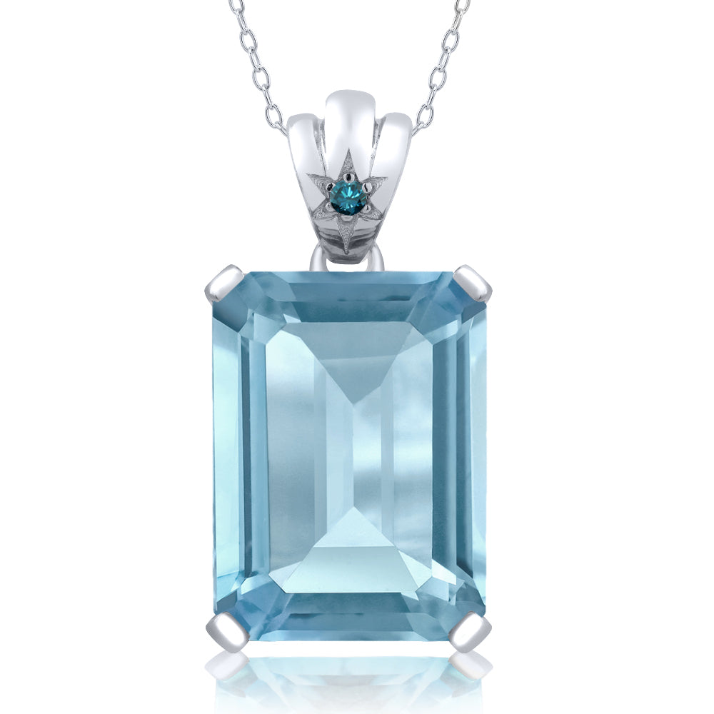 925 Sterling Silver Gemstone Birthstone and Diamond Pendant Necklace | Emerald Cut 18X13MM Center Stone & Round 1.8MM Accent | Fine Jewelry Gifts for Her Mom Women Wife | With 18 Inch Chain