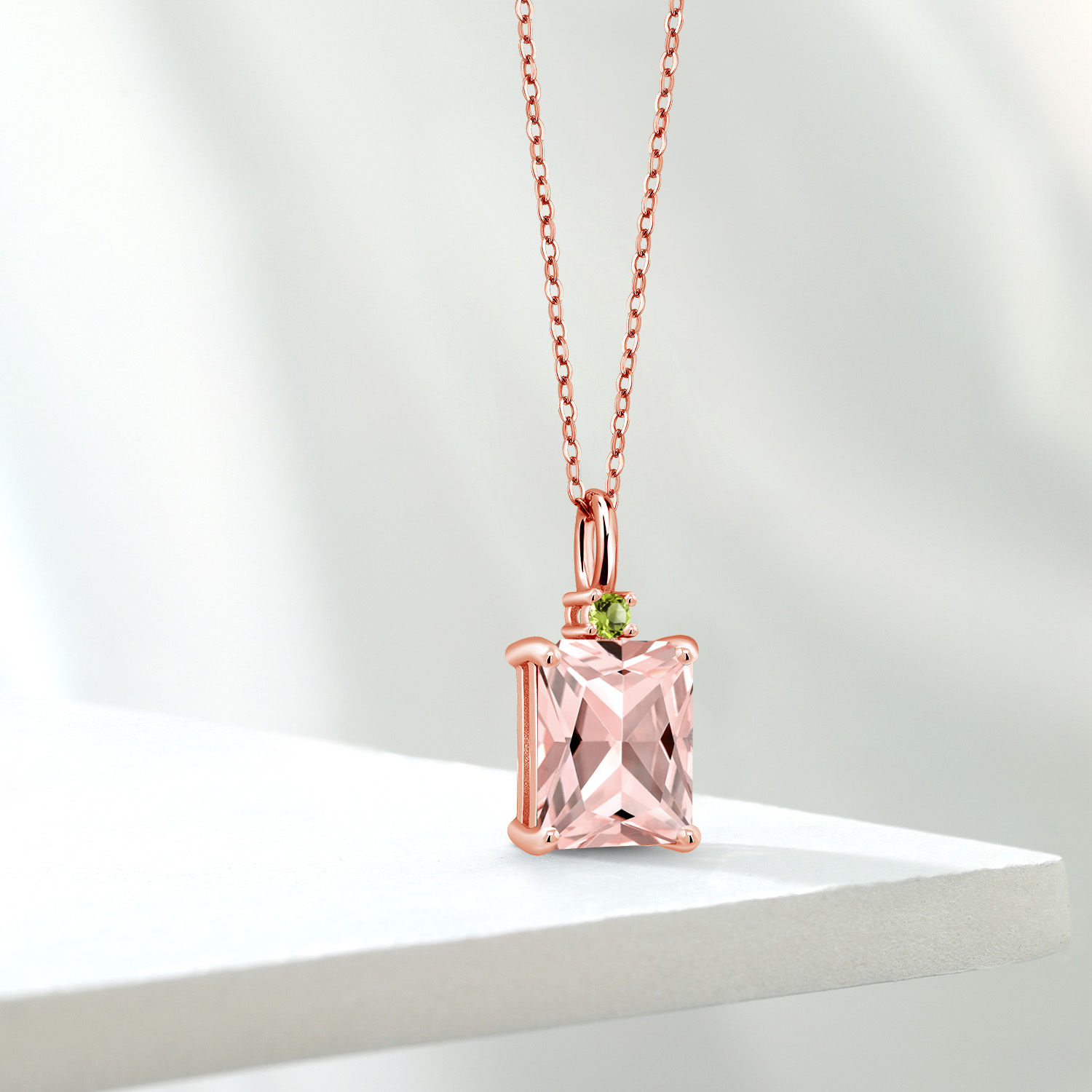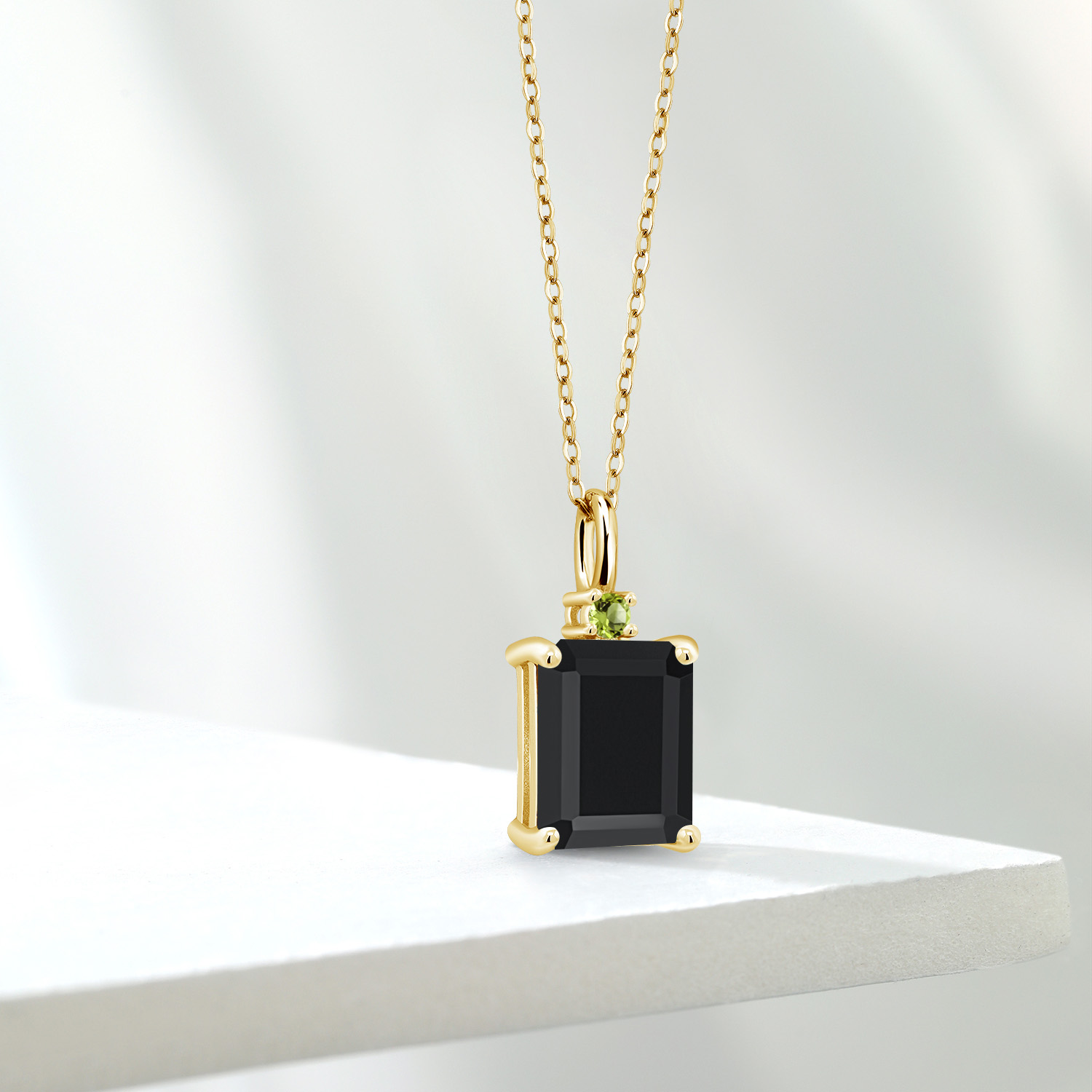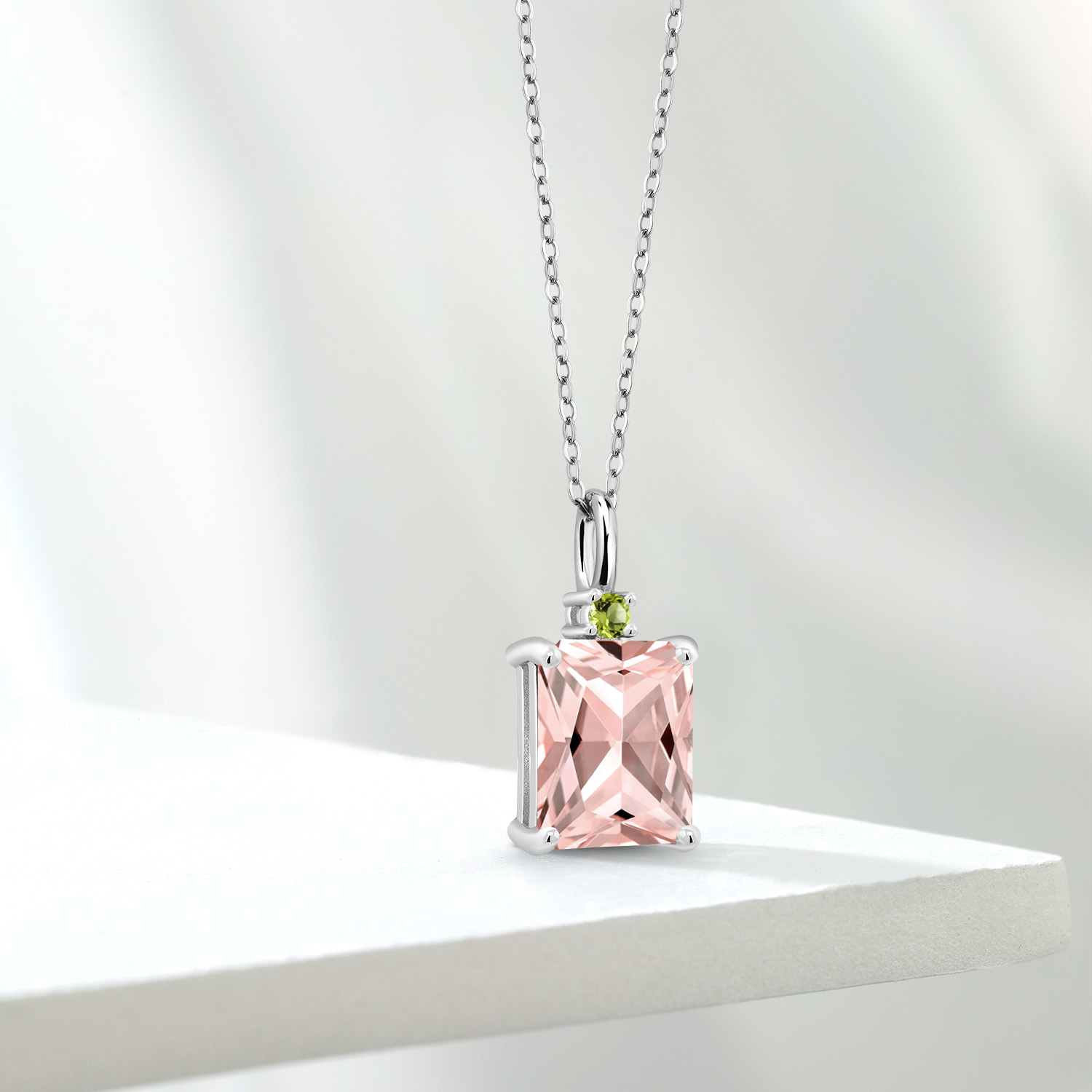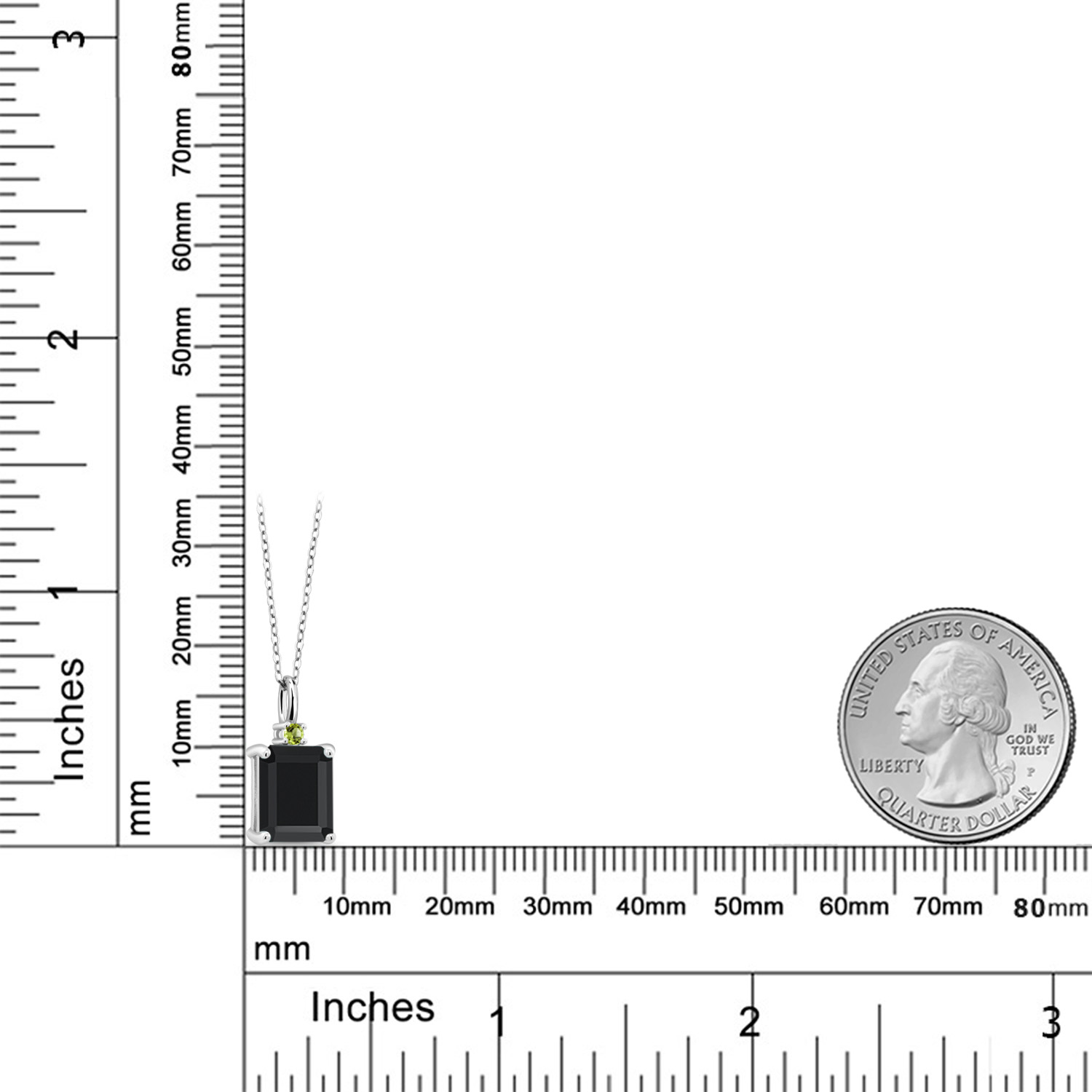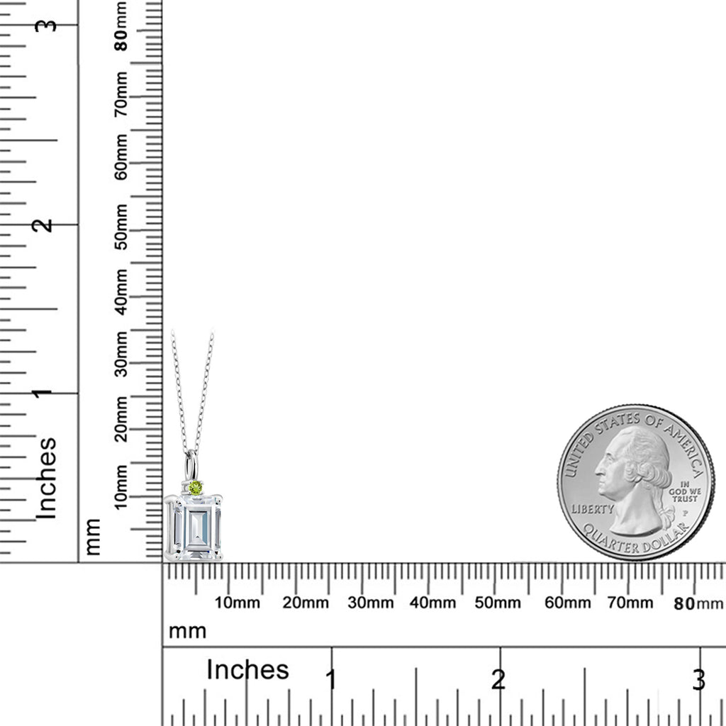 925 Sterling Silver Gemstone Birthstone and Peridot Pendant Necklace for Women | Emerald Cut 10X8MM and Round 2MM | With 18 Inch Chain | Fine Jewelry for Her Mom Wife