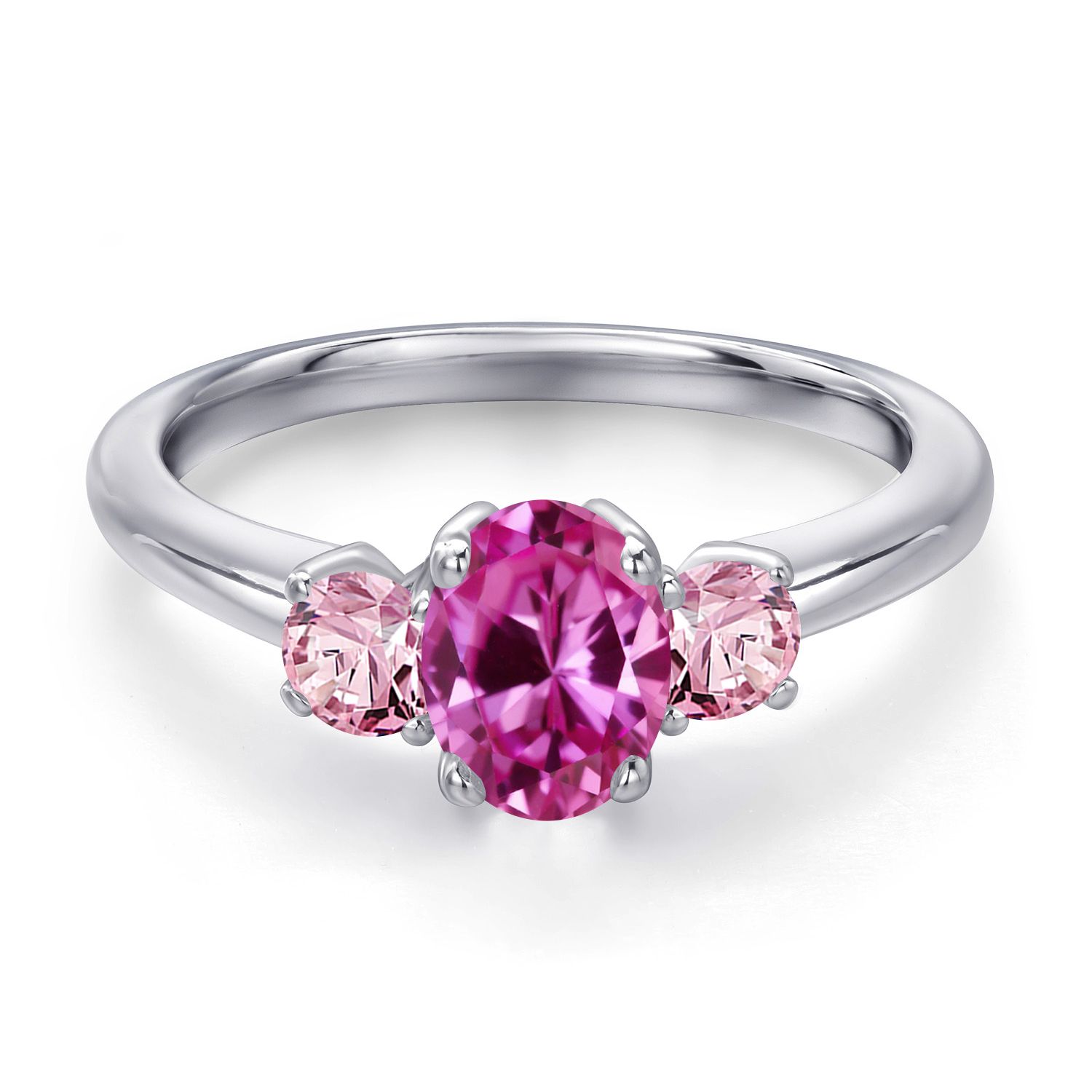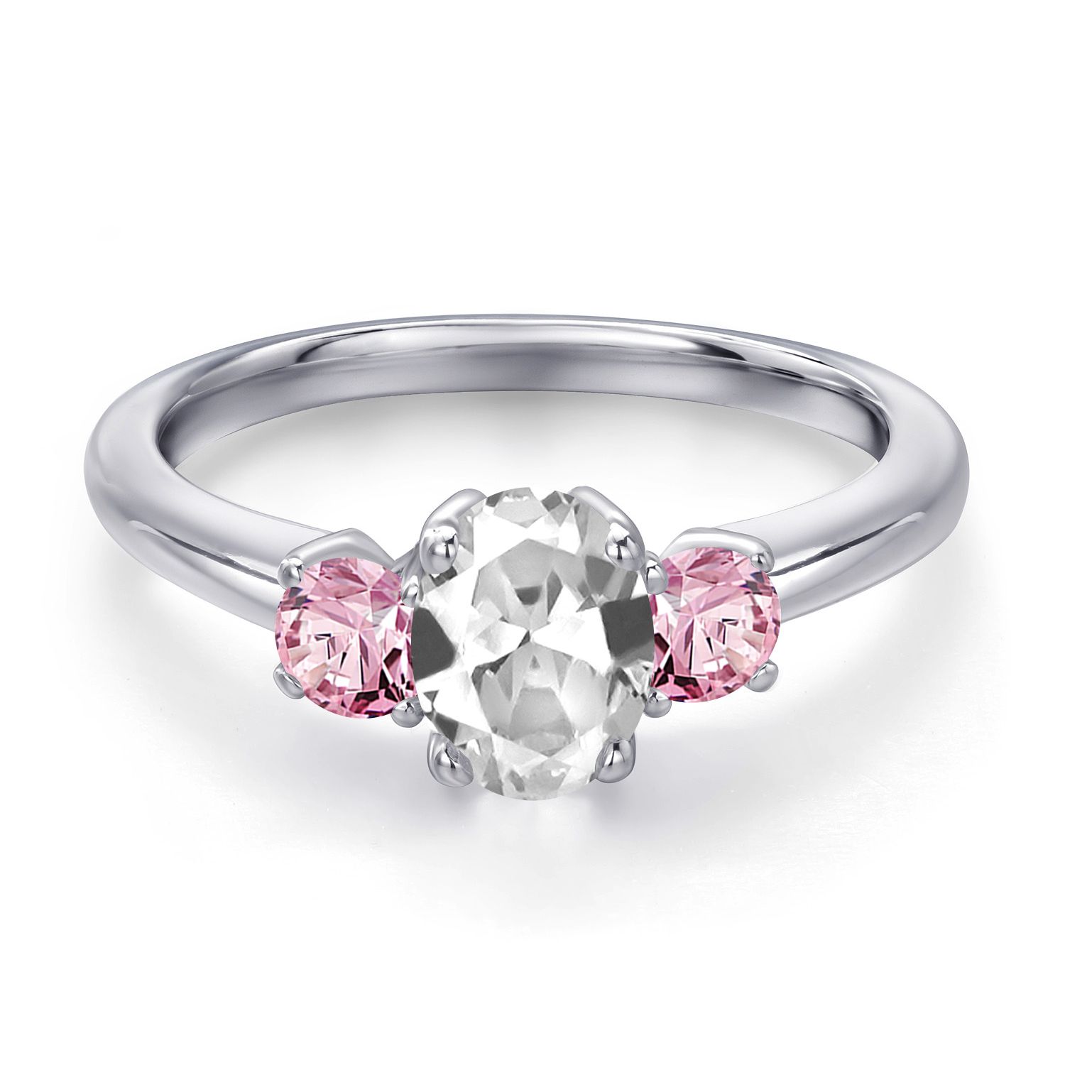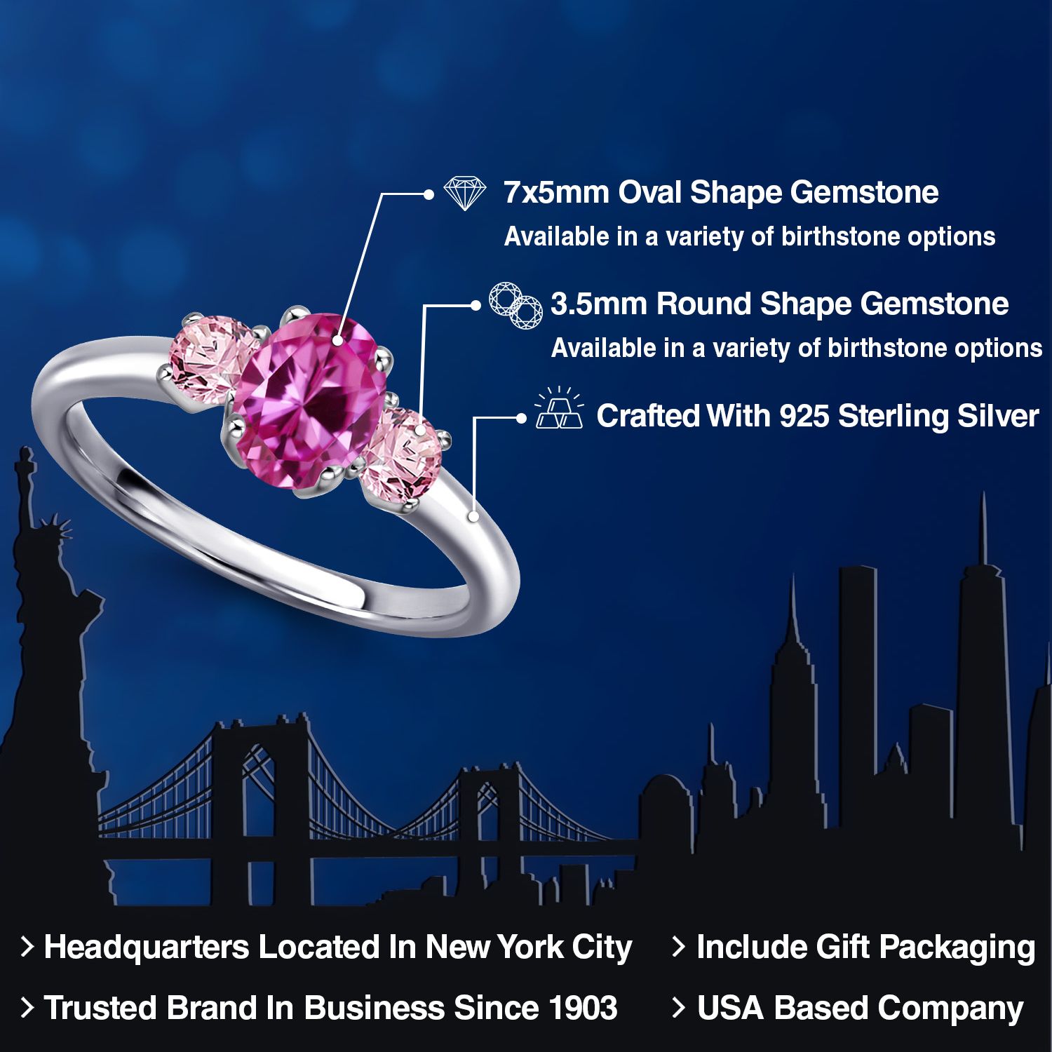 INTRICATE THREE-STONE DESIGN: The ring's sophisticated three-stone setting features two round 3MM lab-grown pink diamonds flanking the central gemstone, adding a touch of modern elegance. Each stone is carefully set to maximize brilliance and sparkle, showcasing expert craftsmanship that highlights the intricate detailing. This design symbolizes the past, present, and future, making it a meaningful choice for life's special milestones.