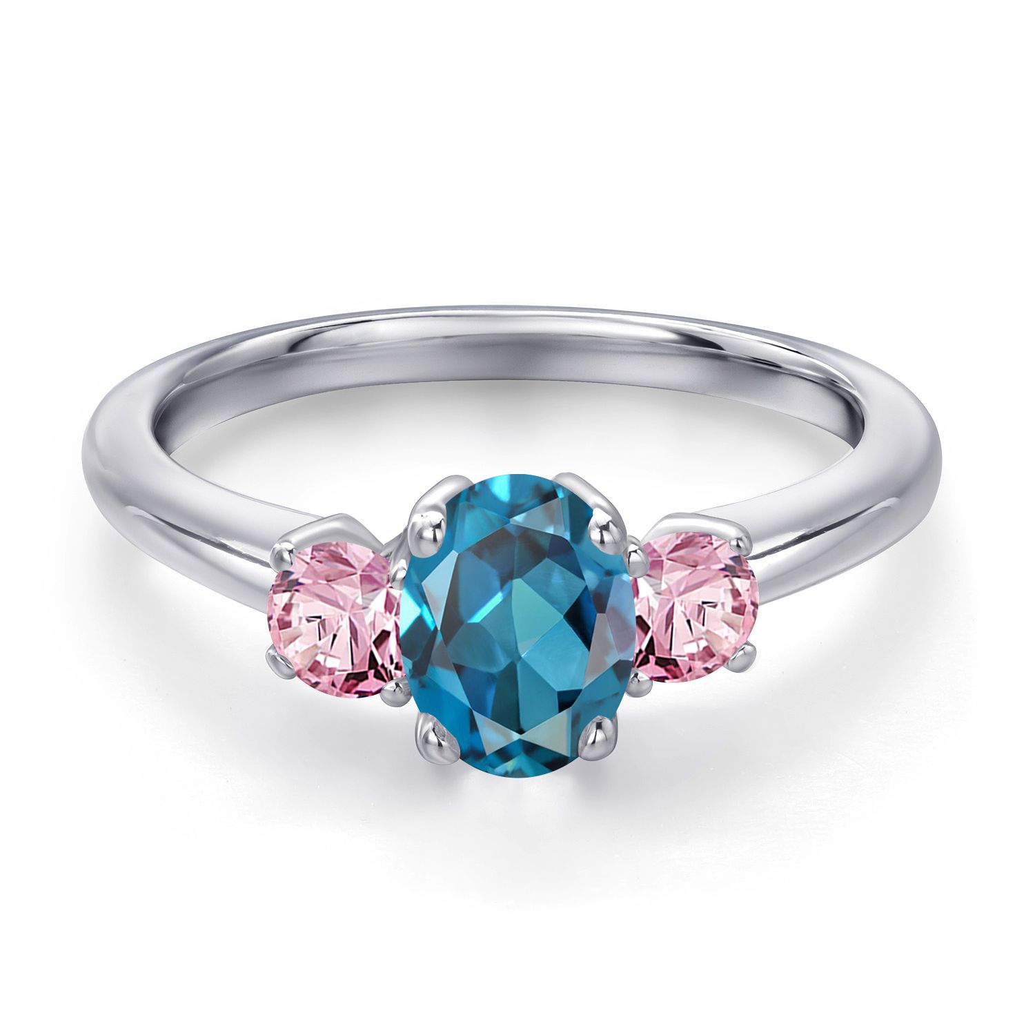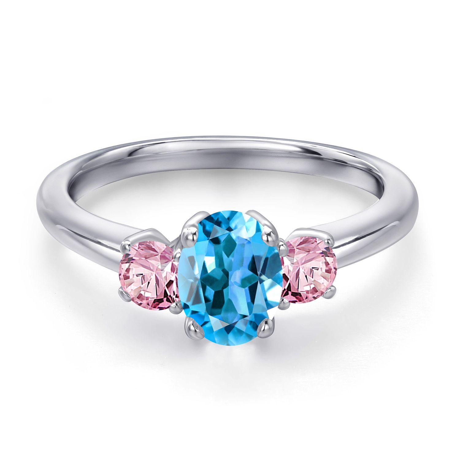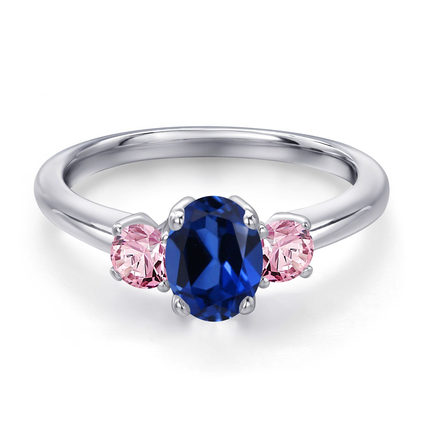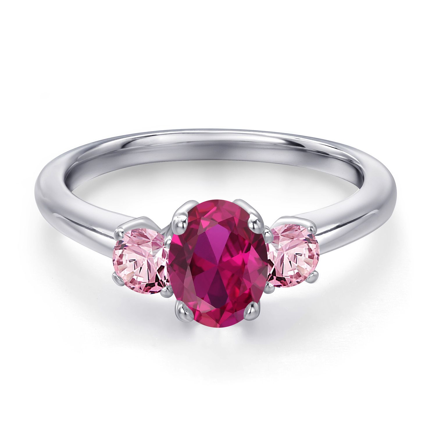 INTRICATE THREE-STONE DESIGN: The ring's sophisticated three-stone setting features two round 3MM lab-grown pink diamonds flanking the central gemstone, adding a touch of modern elegance. Each stone is carefully set to maximize brilliance and sparkle, showcasing expert craftsmanship that highlights the intricate detailing. This design symbolizes the past, present, and future, making it a meaningful choice for life's special milestones.