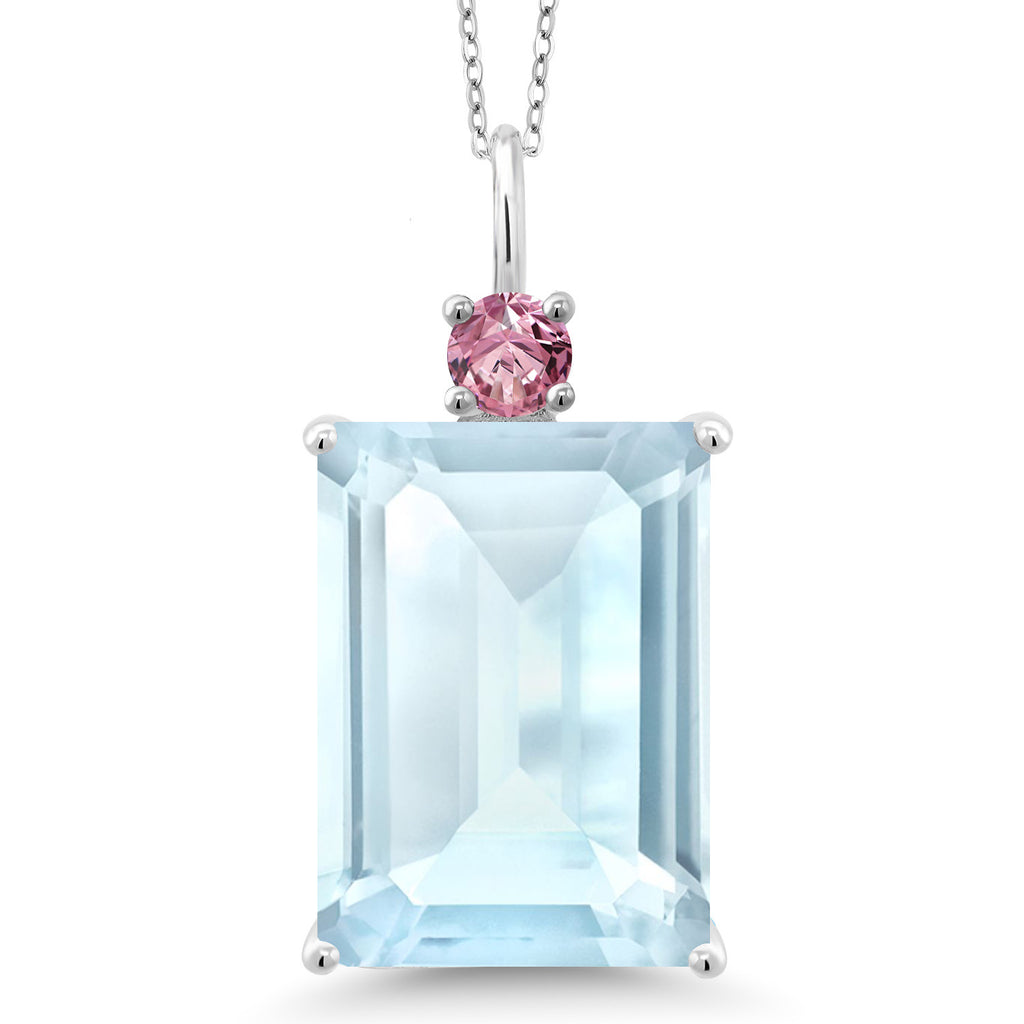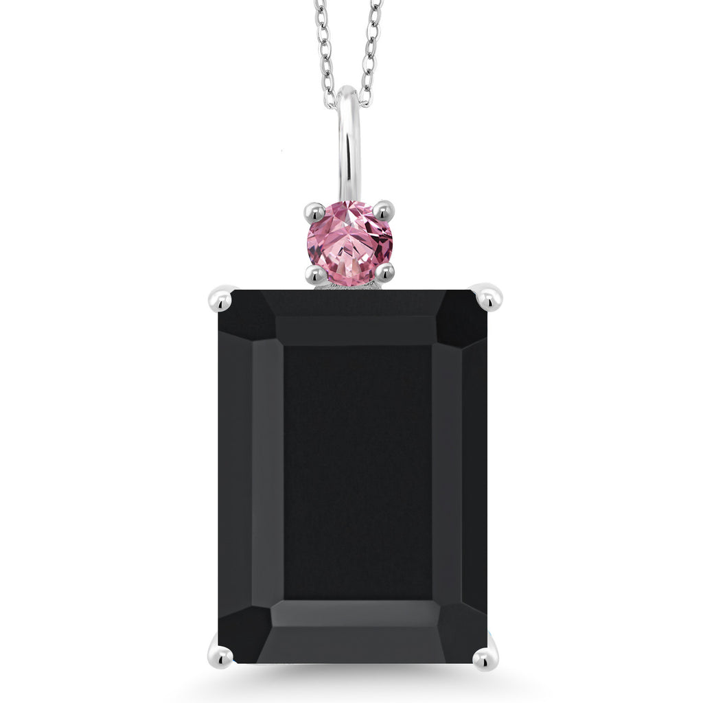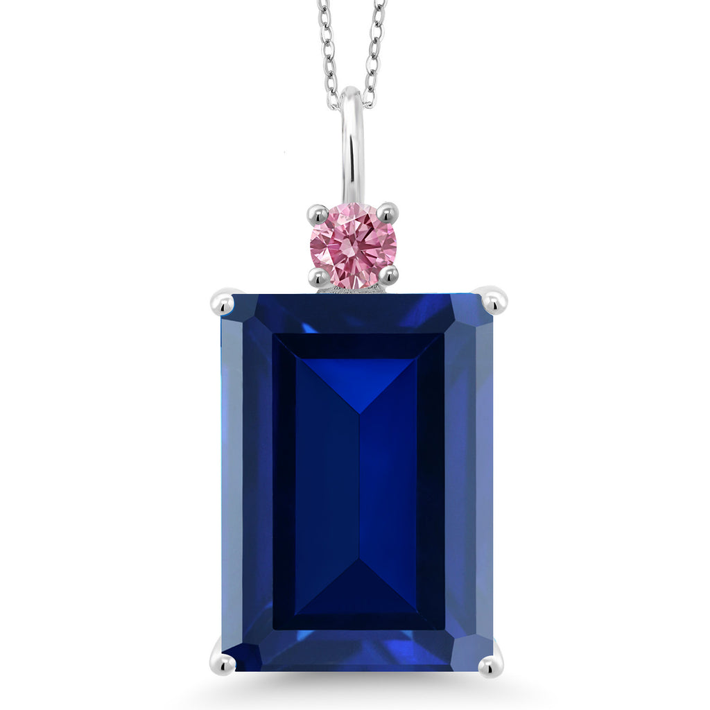 925 Sterling Silver Gemstone Birthstone and Pink Lab Grown Diamond Pendant Necklace for Women | Emerald Cut 18X13MM and Round 4MM | With 18 Inch Chain | Fine Jewelry for Her Mom Wife