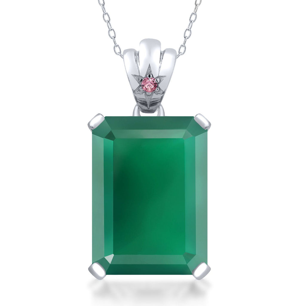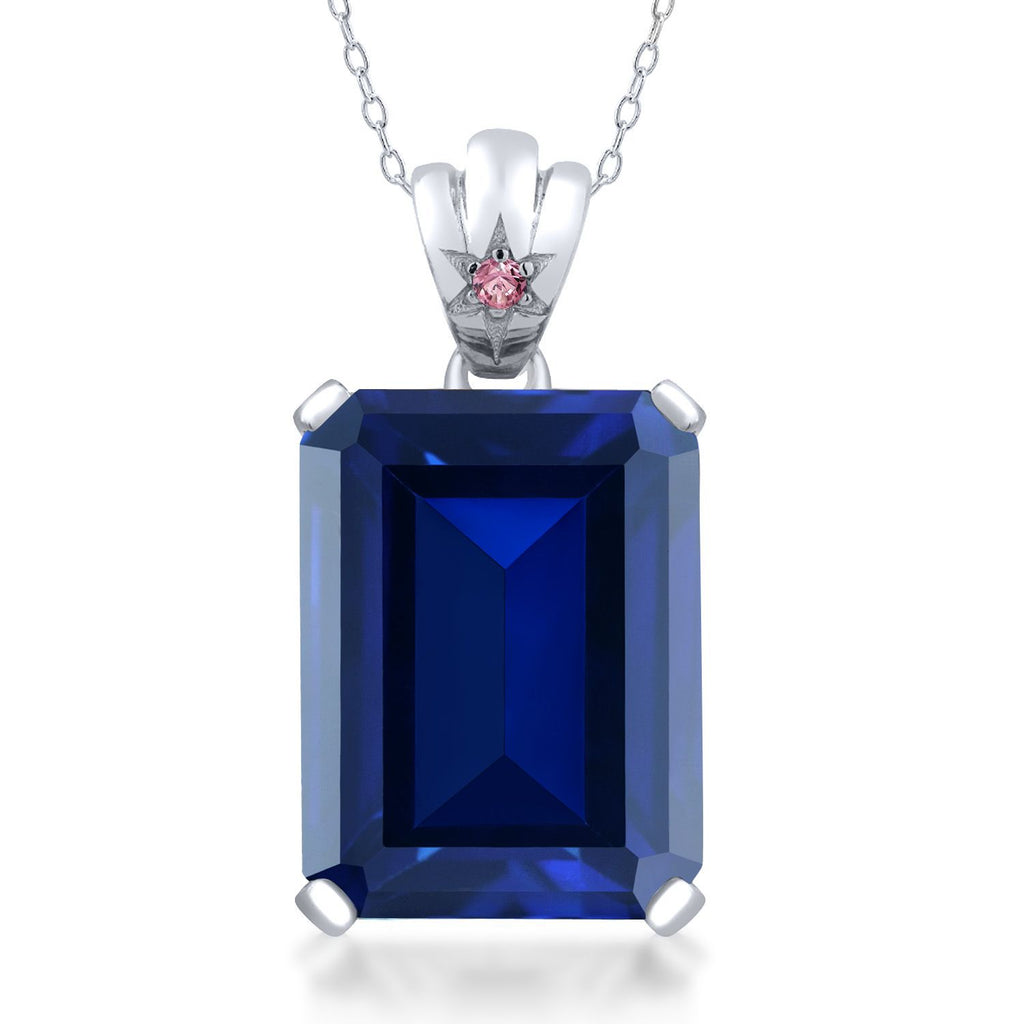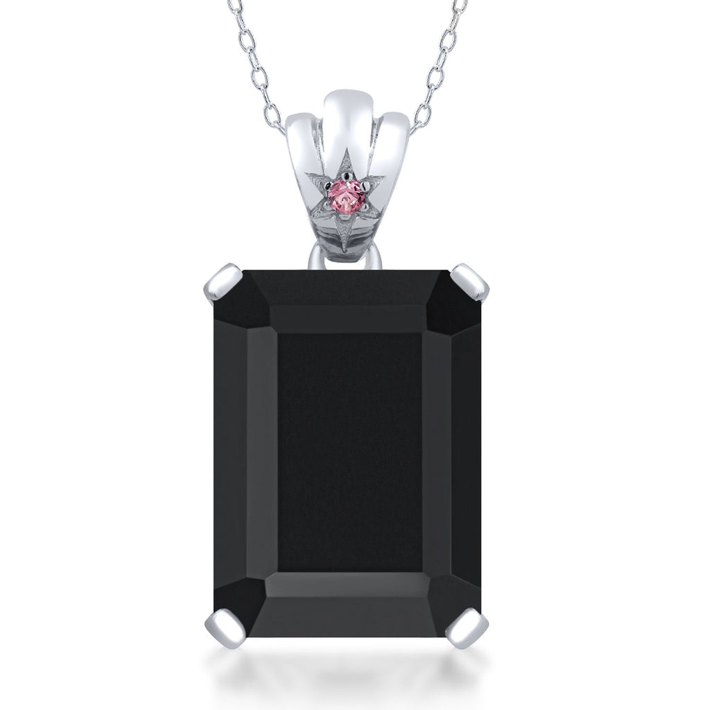 925 Sterling Silver Gemstone Birthstone and Pink Lab Grown Diamond Pendant Necklace for Women | Emerald Cut 18X13MM with 1.8MM Accent in Star-Set Bail | 18 Inch Chain | Fine Jewelry for Her Mom Wife