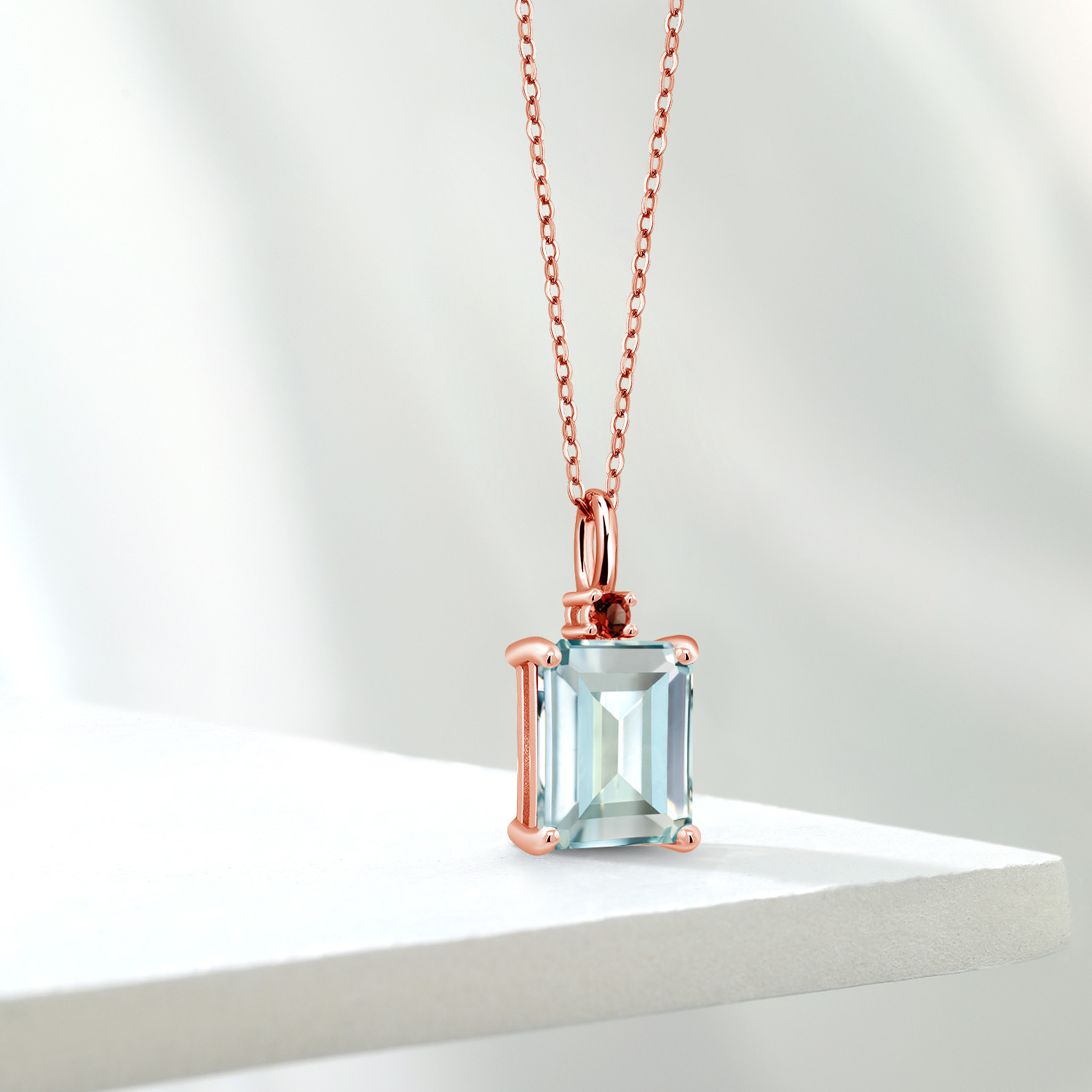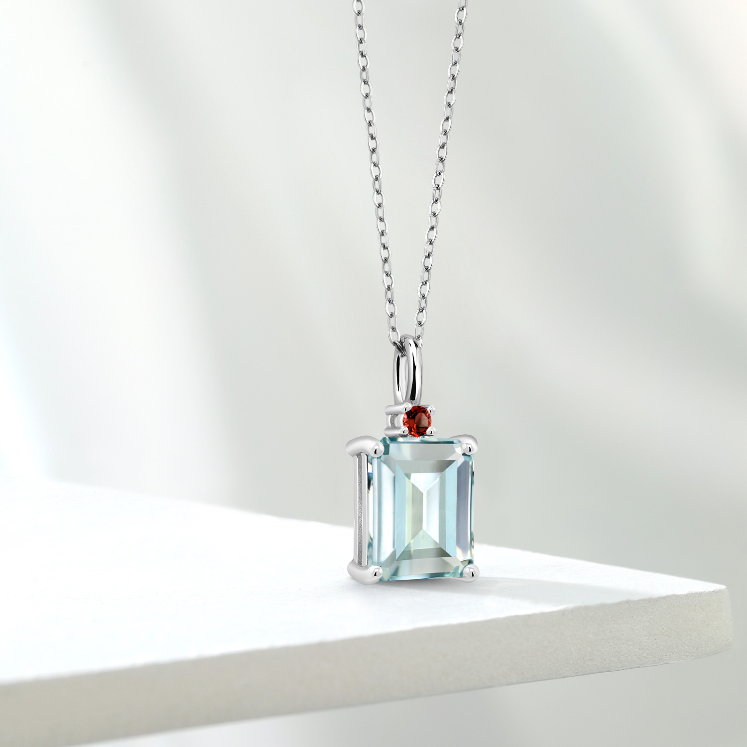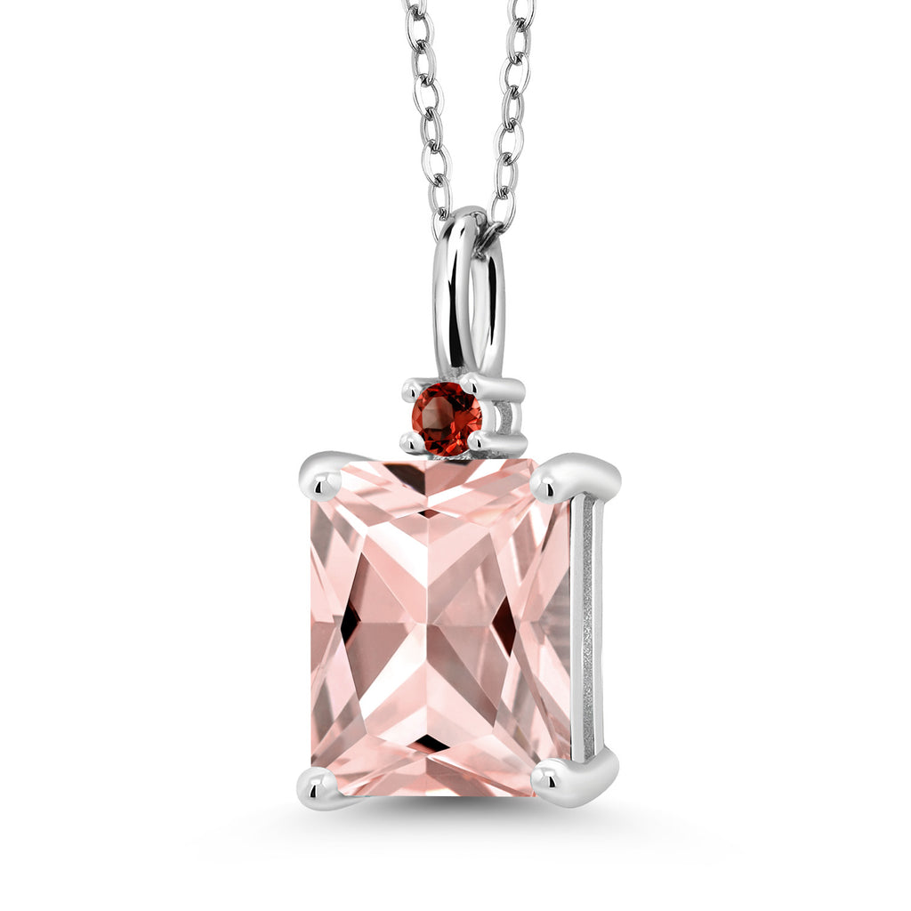 925 Sterling Silver Gemstone Birthstone and Red Garnet Pendant Necklace for Women | Emerald Cut 10X8MM and Round 2MM | With 18 Inch Chain | Fine Jewelry for Her Mom Wife