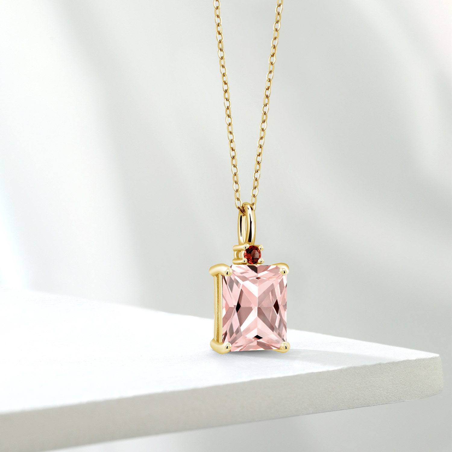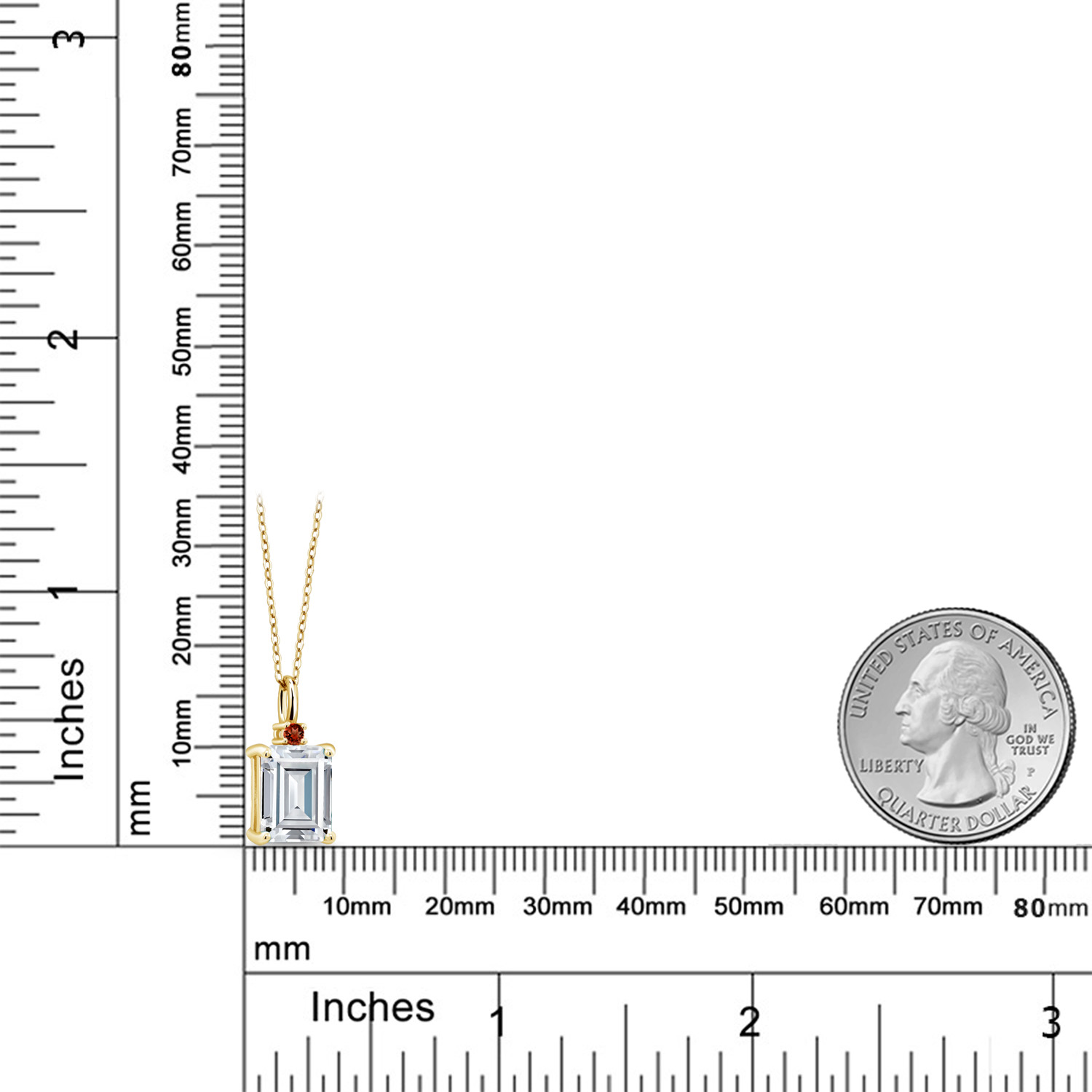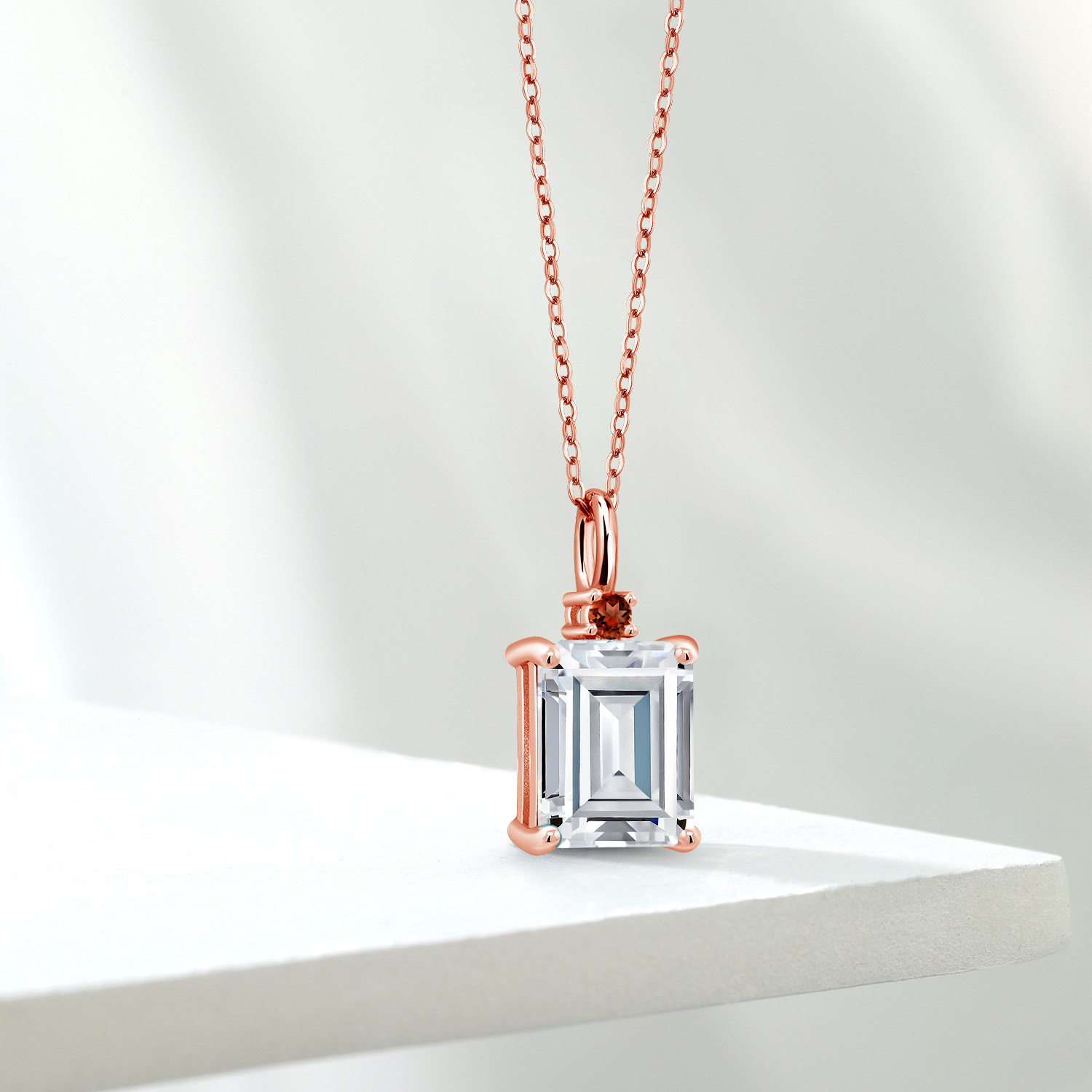 925 Sterling Silver Gemstone Birthstone and Red Garnet Pendant Necklace for Women | Emerald Cut 10X8MM and Round 2MM | With 18 Inch Chain | Fine Jewelry for Her Mom Wife