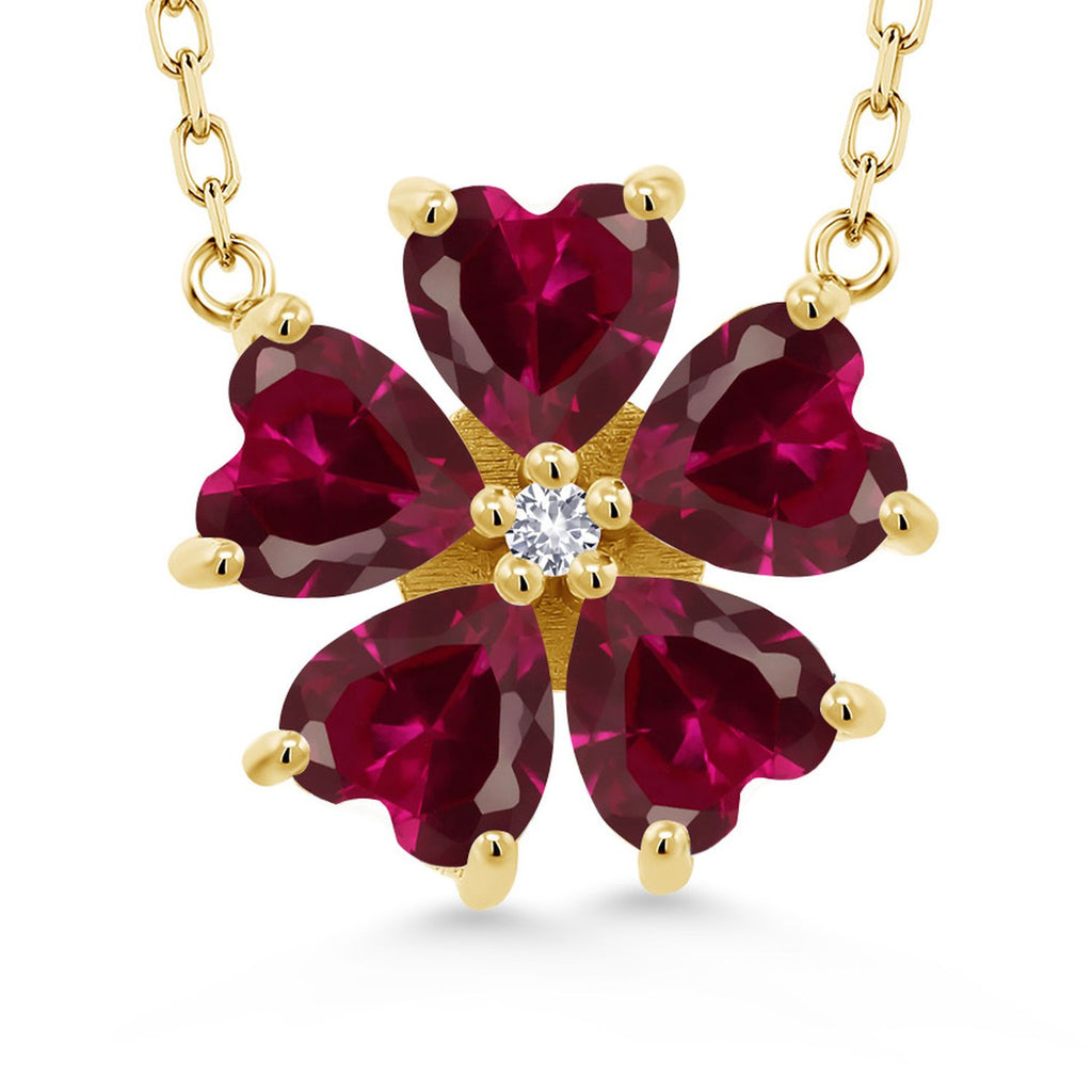 Gem Stone King 18K Yellow Gold Plated Silver Red Created Ruby and White Created Sapphire Pendant Necklace For Women (4.85 Cttw, Heart Shape 6MM, with 18 Inch Chain)