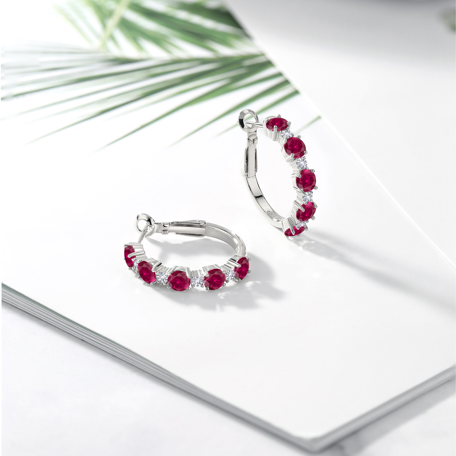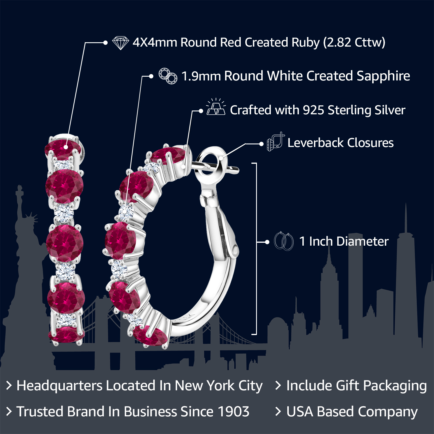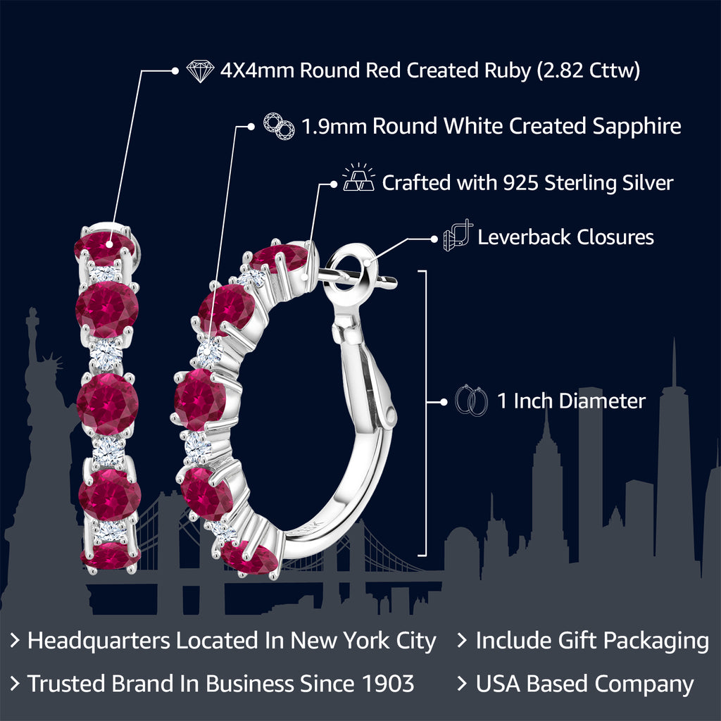 ELEGANT HOOP DESIGN WITH WHITE CREATED SAPPHIRE ACCENTS: Adorned with 1.9MM white created sapphire embellishments, these hoops reflect meticulous artistry and intricate detailing. Each stone is hand-set to accentuate the main gemstone's beauty, delivering a sparkling display of brilliance. The seamless blend of stones enhances the overall allure, transforming every occasion into an extraordinary experience.